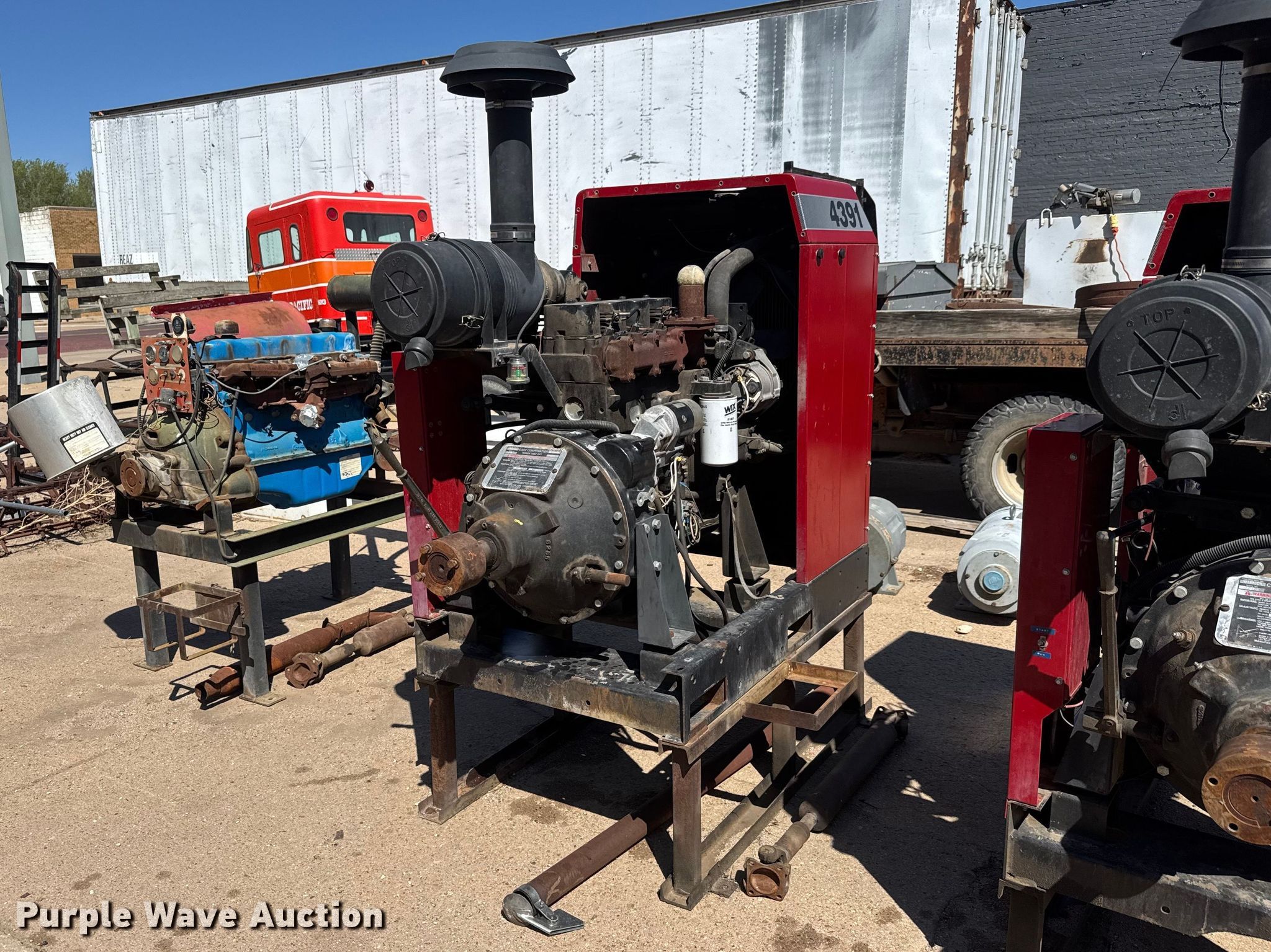 Case 4391 irrigation power unit. Hours: 8,453 on meter, Serial: DJA0012361. Engine Displacement: 3.9L, Cylinders: 4, Fuel type: Diesel. Features PTO Twin Disc, Radiator, Engine stand. Notes Battery not included, Fuel container not included. View repairs. Lyons, KS 67554