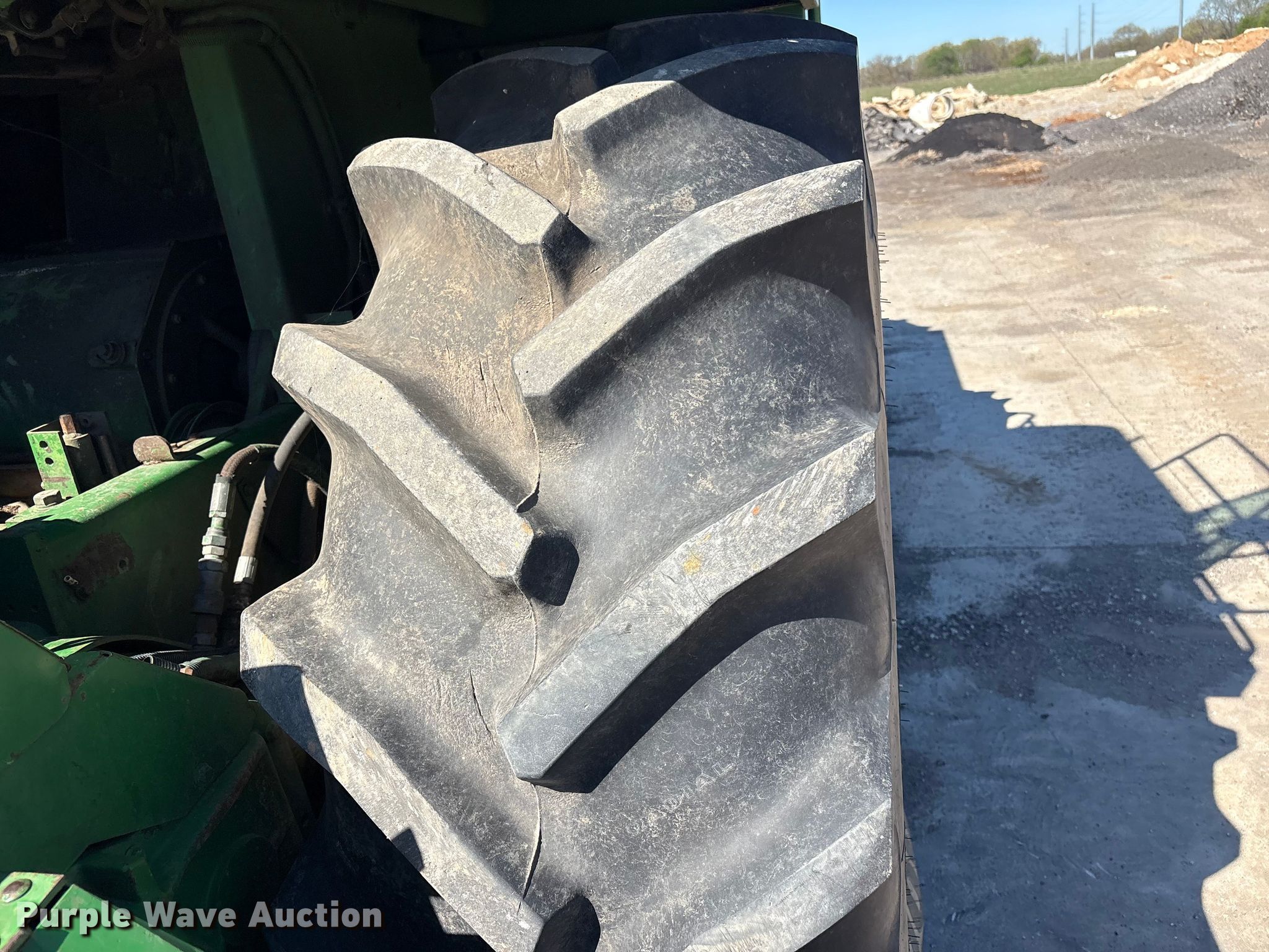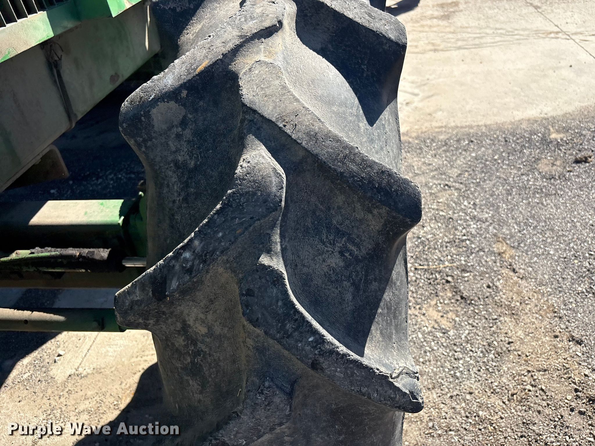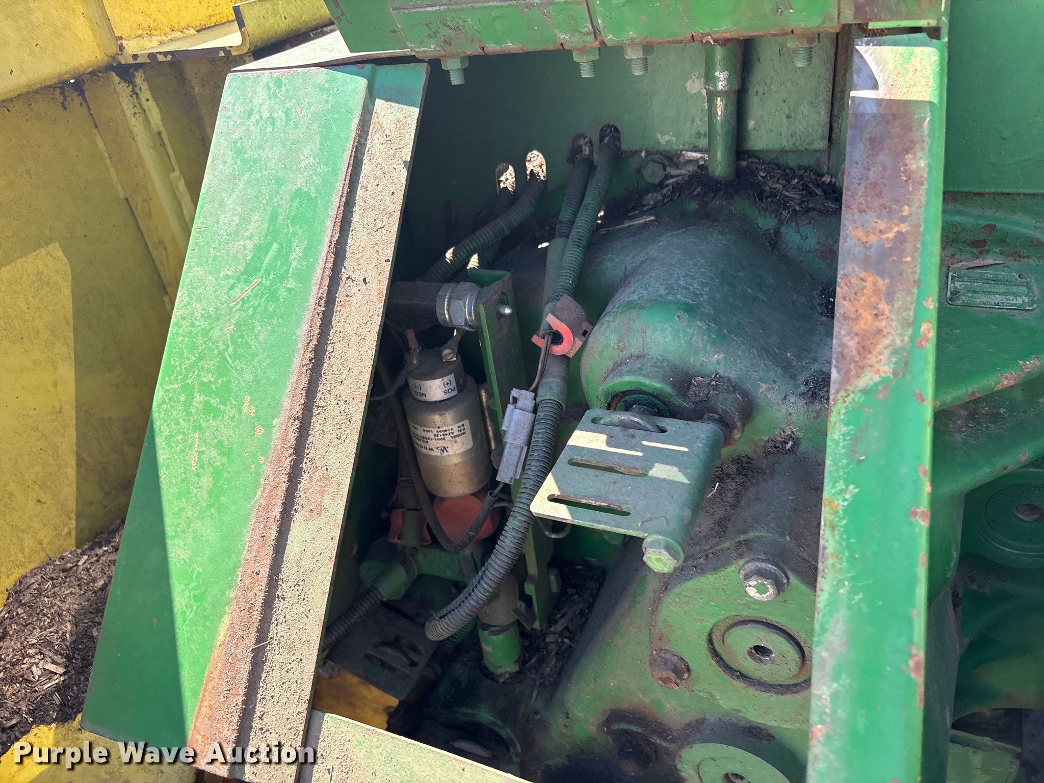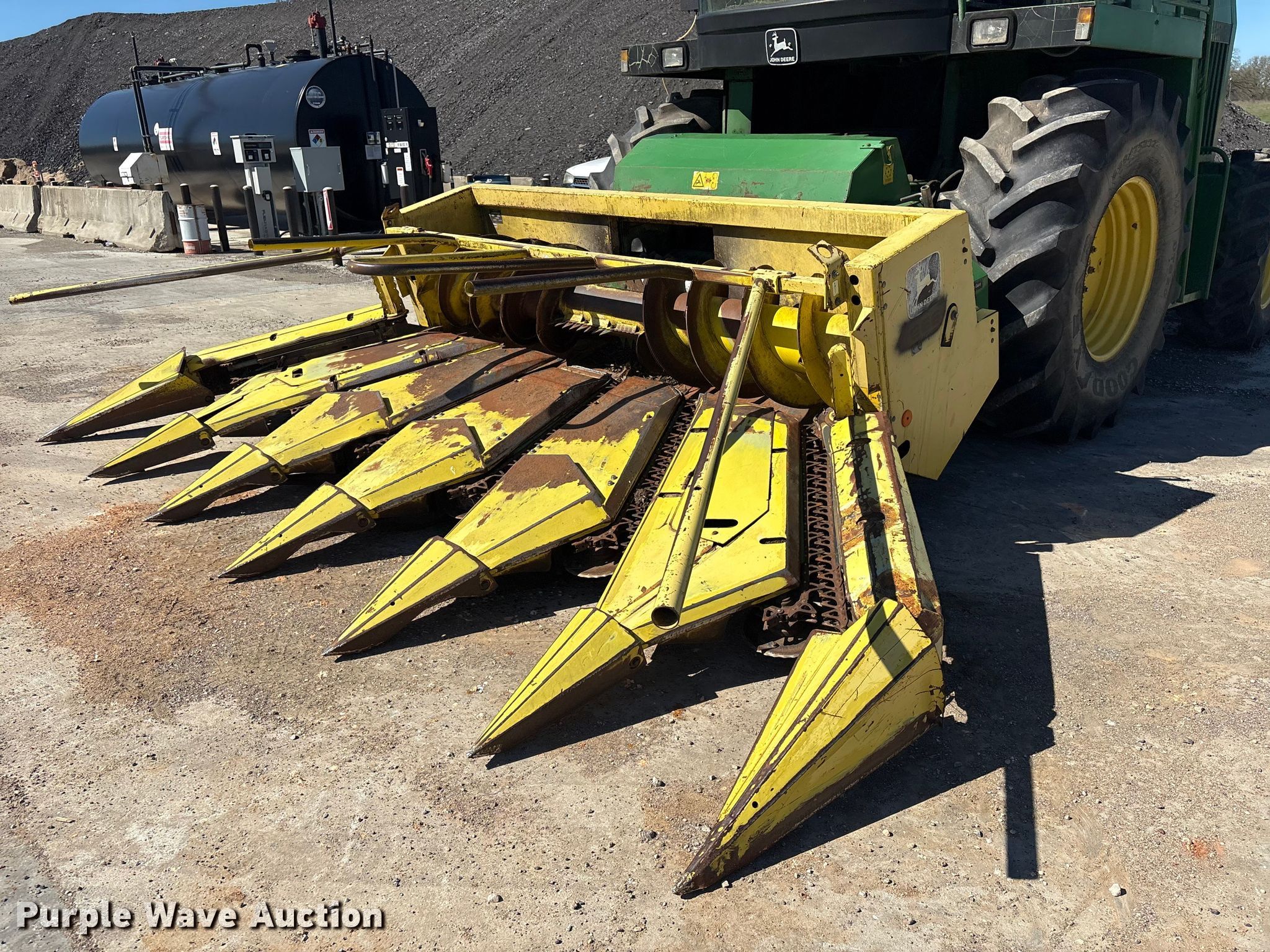 1992 John Deere 6710 forage harvester. Hours: Unknown, Serial: Z06710X500079. Engine John Deere. Transmission Hydrostatic, Differential lock. Operators station AC, Heat. Features Silage additive spray system, Spout: High arch, Hydraulic adjust, Rear hitch, Head drive: Single, Head 1997 John Deere 666, Serial: 200666100 8121, Corn, Width: 14', Rows: 6, Row spacing: 24". Tires Front: 650/75R32, Rear: 16.9-26. Garman Trucking LLC. Watts, OK 74964