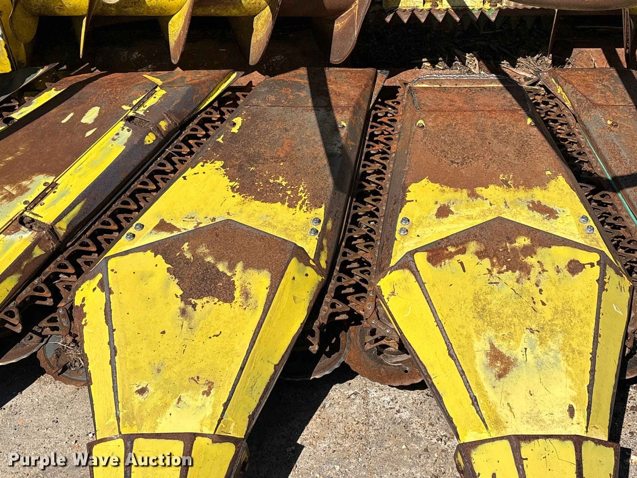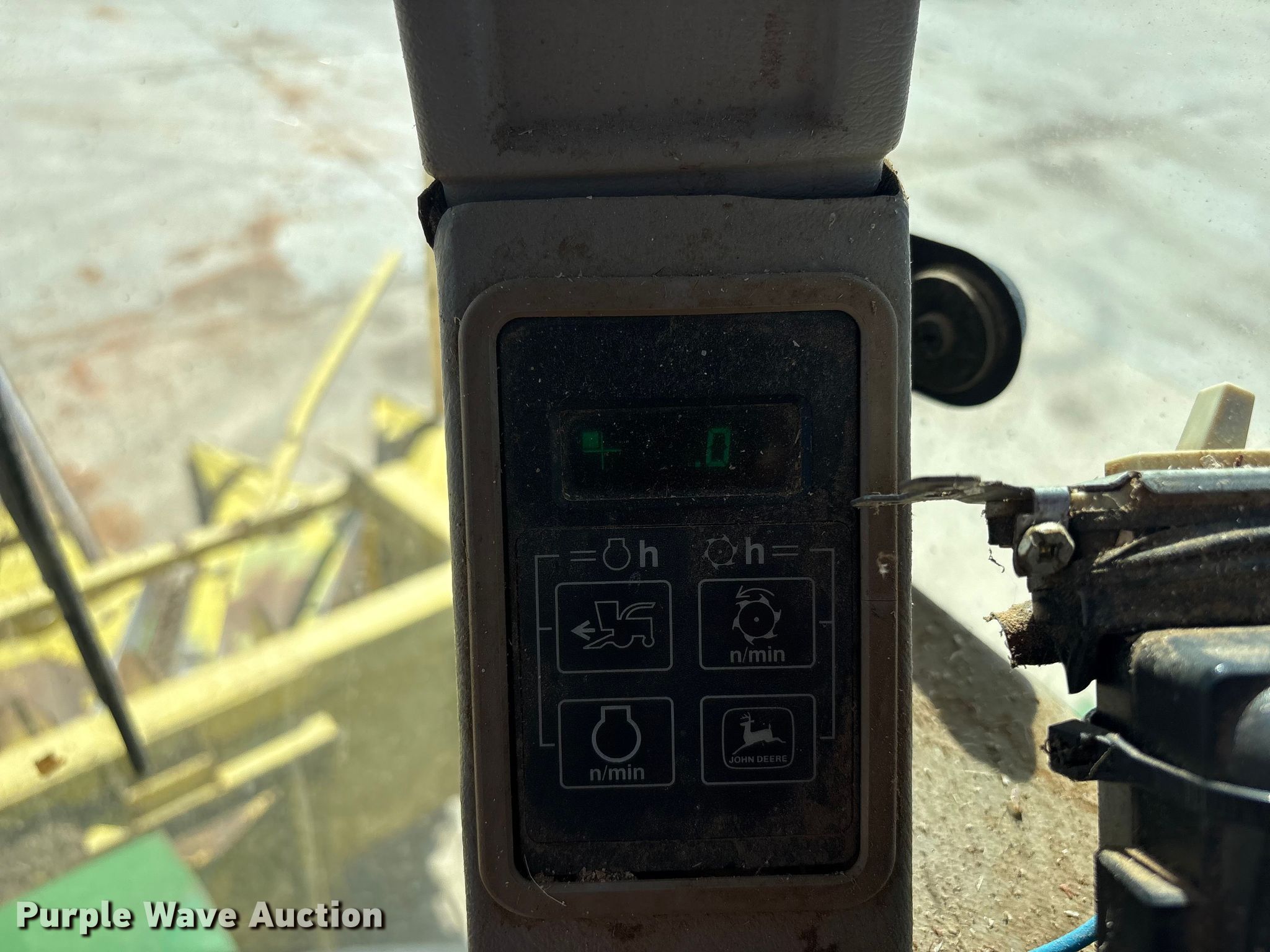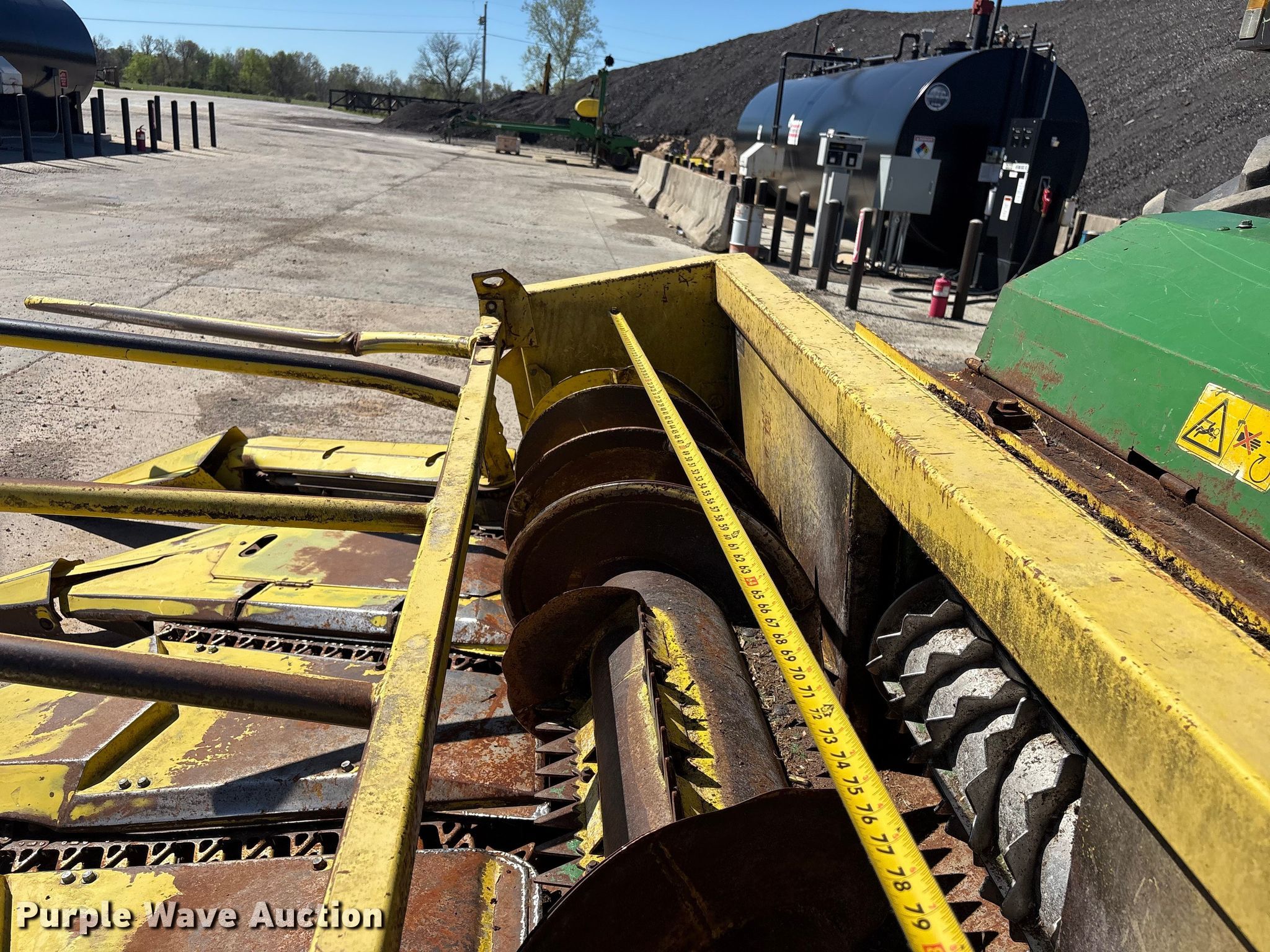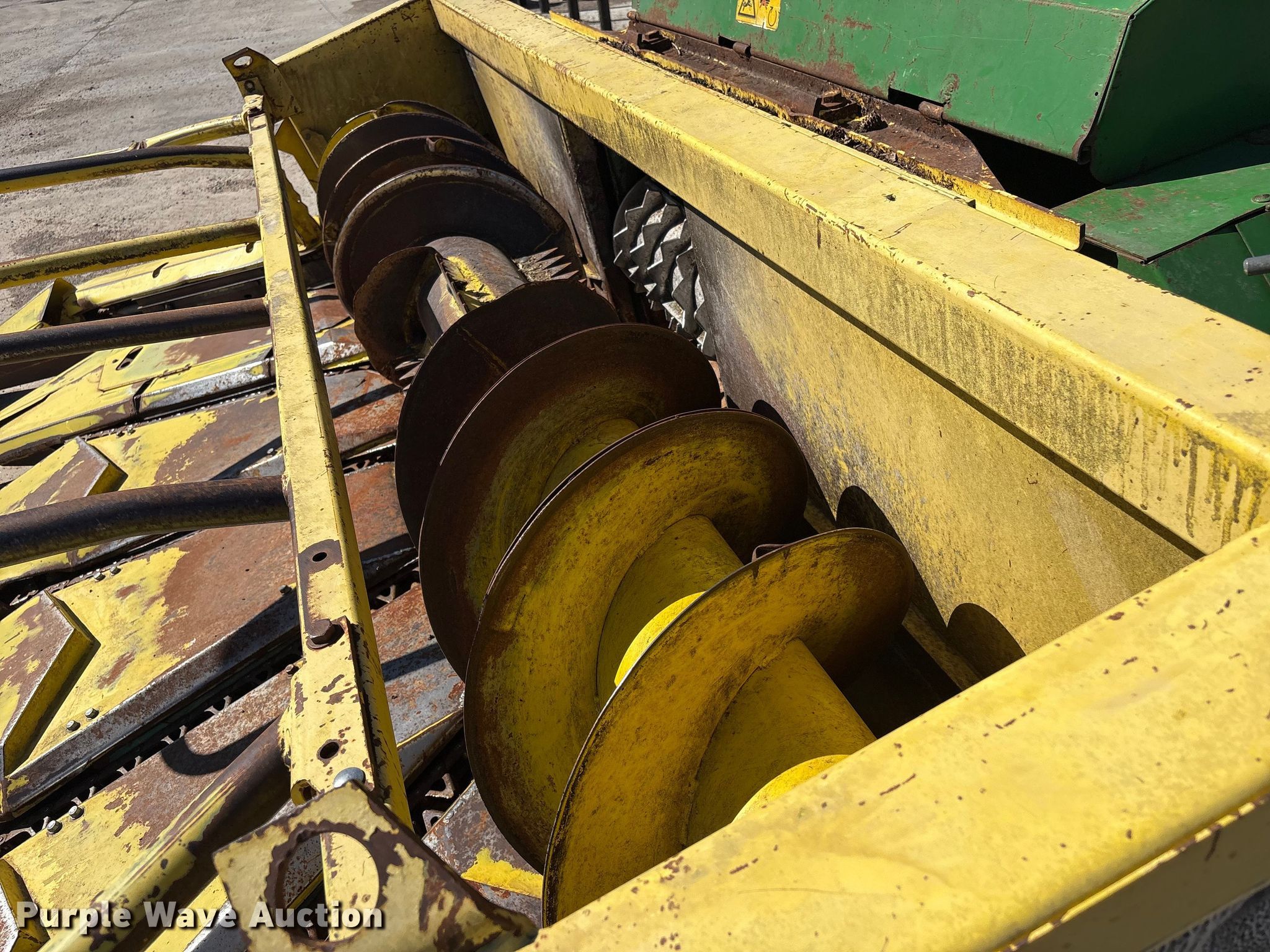 1992 John Deere 6710 forage harvester. Hours: Unknown, Serial: Z06710X500079. Engine John Deere. Transmission Hydrostatic, Differential lock. Operators station AC, Heat. Features Silage additive spray system, Spout: High arch, Hydraulic adjust, Rear hitch, Head drive: Single, Head 1997 John Deere 666, Serial: 200666100 8121, Corn, Width: 14', Rows: 6, Row spacing: 24". Tires Front: 650/75R32, Rear: 16.9-26. Garman Trucking LLC. Watts, OK 74964