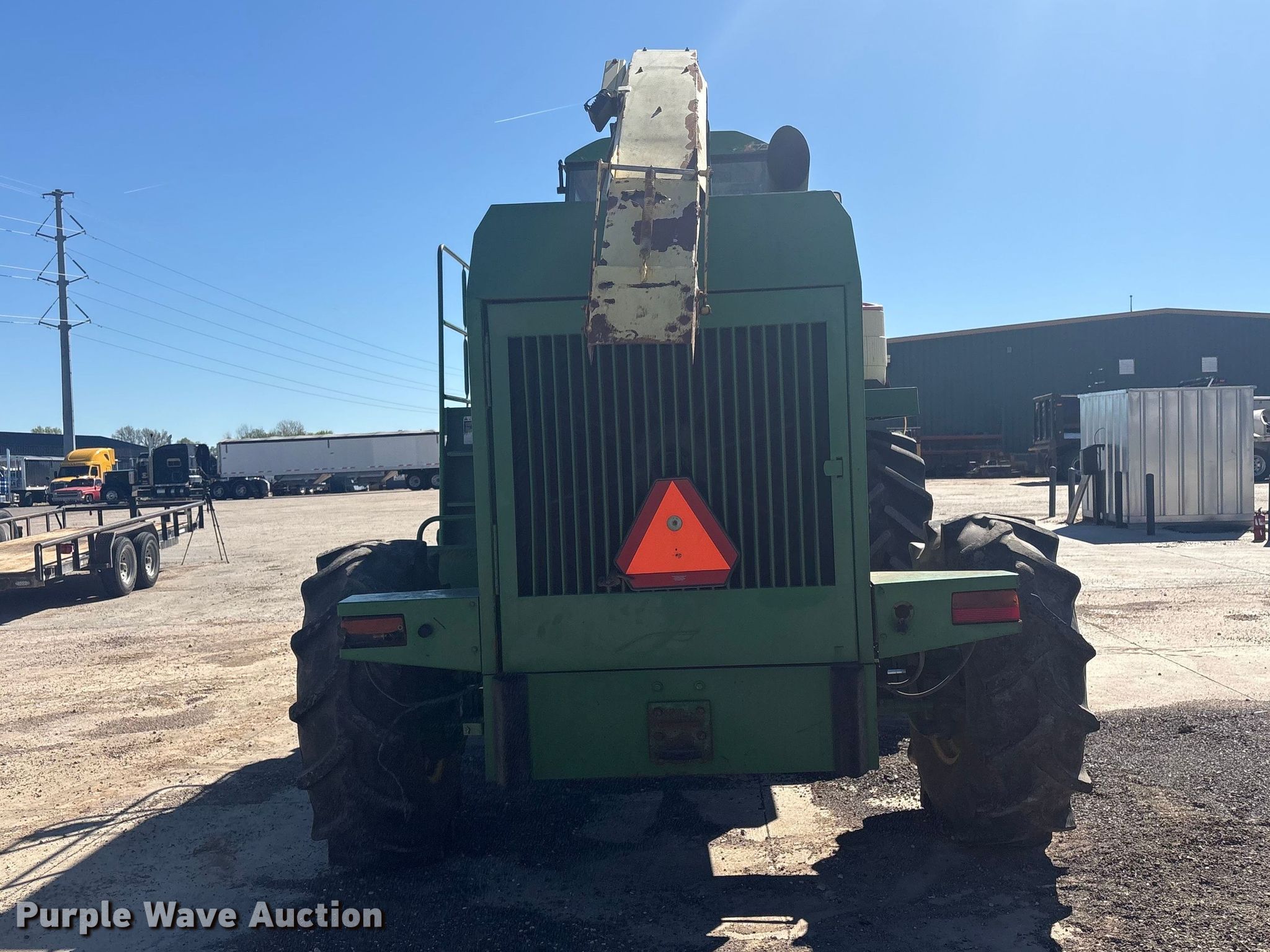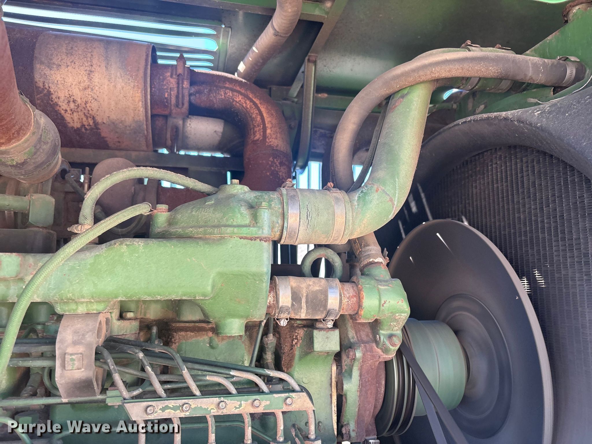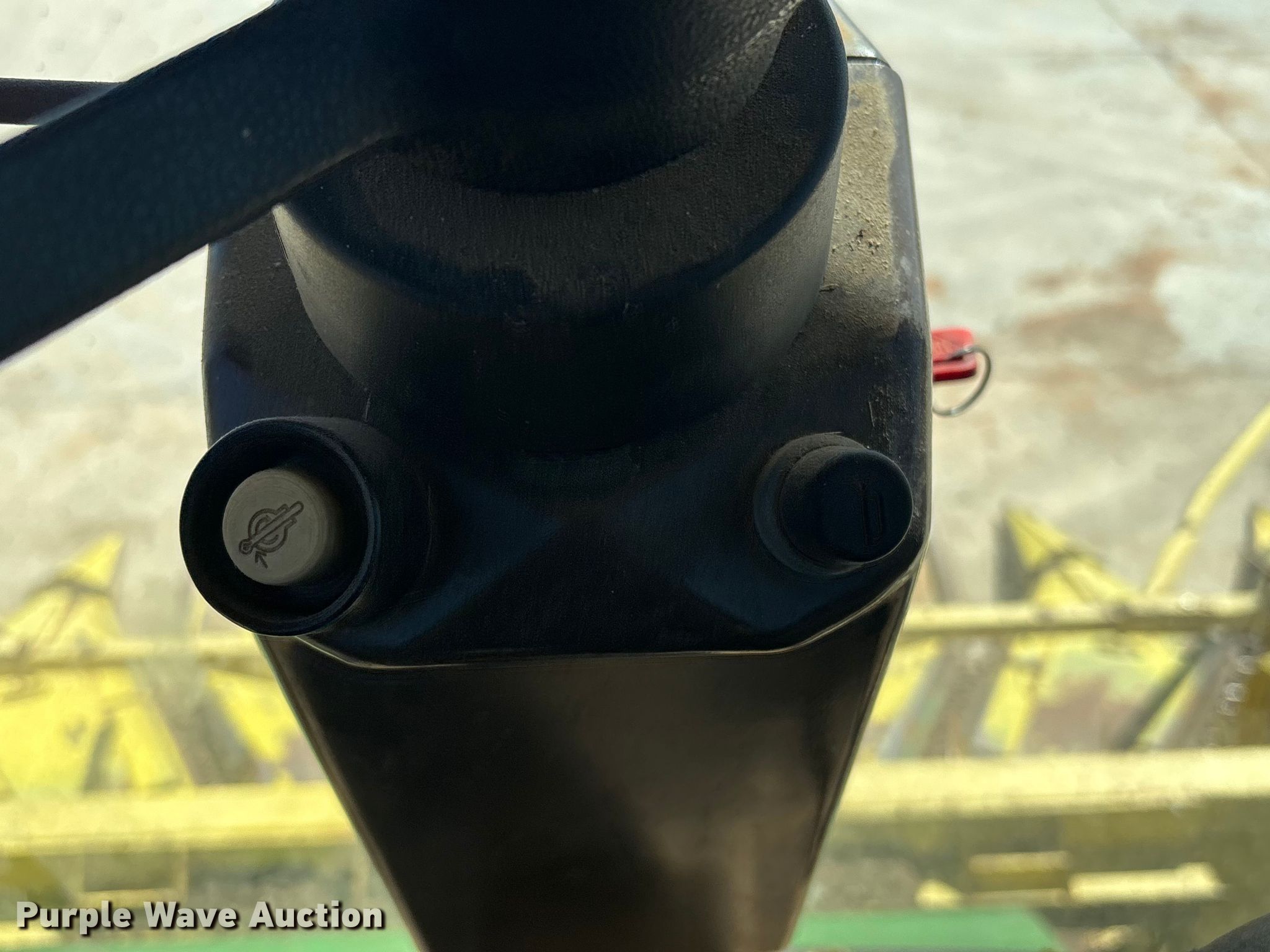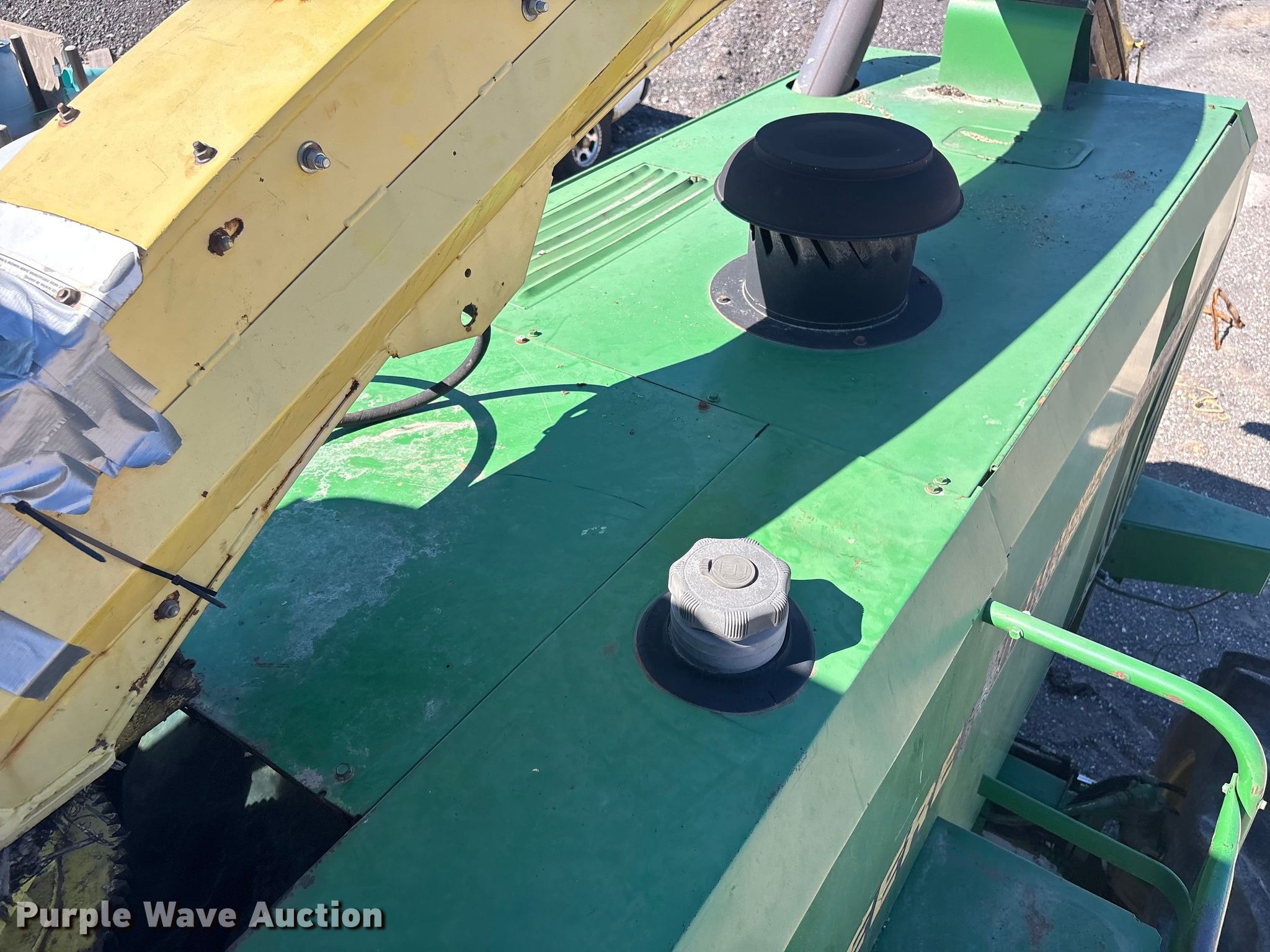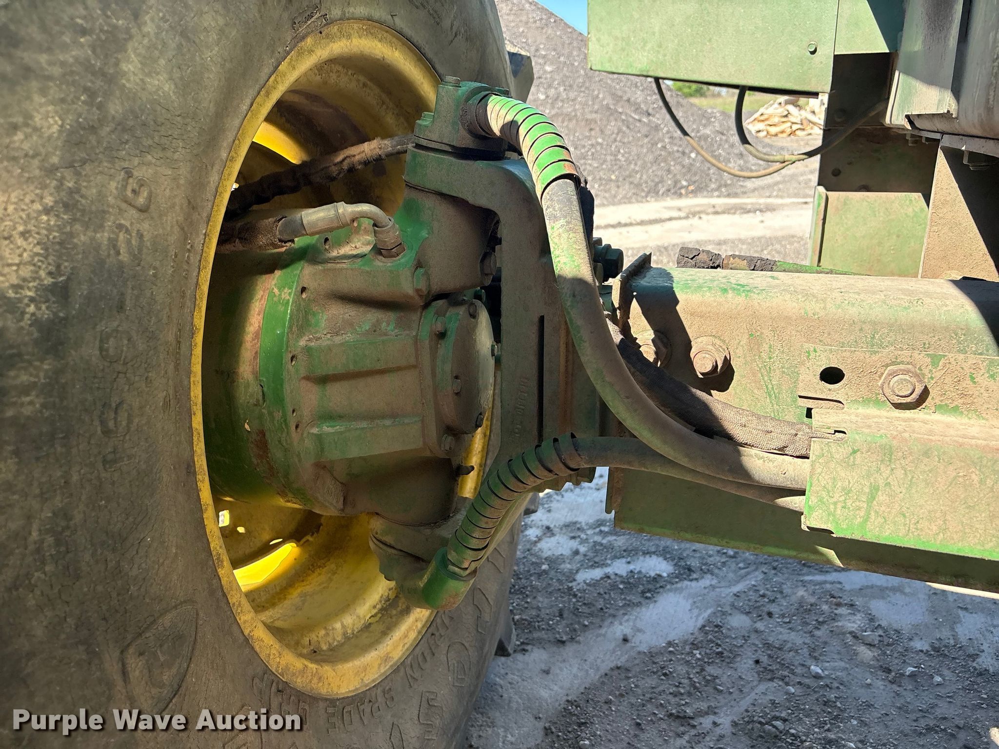 1992 John Deere 6710 forage harvester. Hours: Unknown, Serial: Z06710X500079. Engine John Deere. Transmission Hydrostatic, Differential lock. Operators station AC, Heat. Features Silage additive spray system, Spout: High arch, Hydraulic adjust, Rear hitch, Head drive: Single, Head 1997 John Deere 666, Serial: 200666100 8121, Corn, Width: 14', Rows: 6, Row spacing: 24". Tires Front: 650/75R32, Rear: 16.9-26. Garman Trucking LLC. Watts, OK 74964
