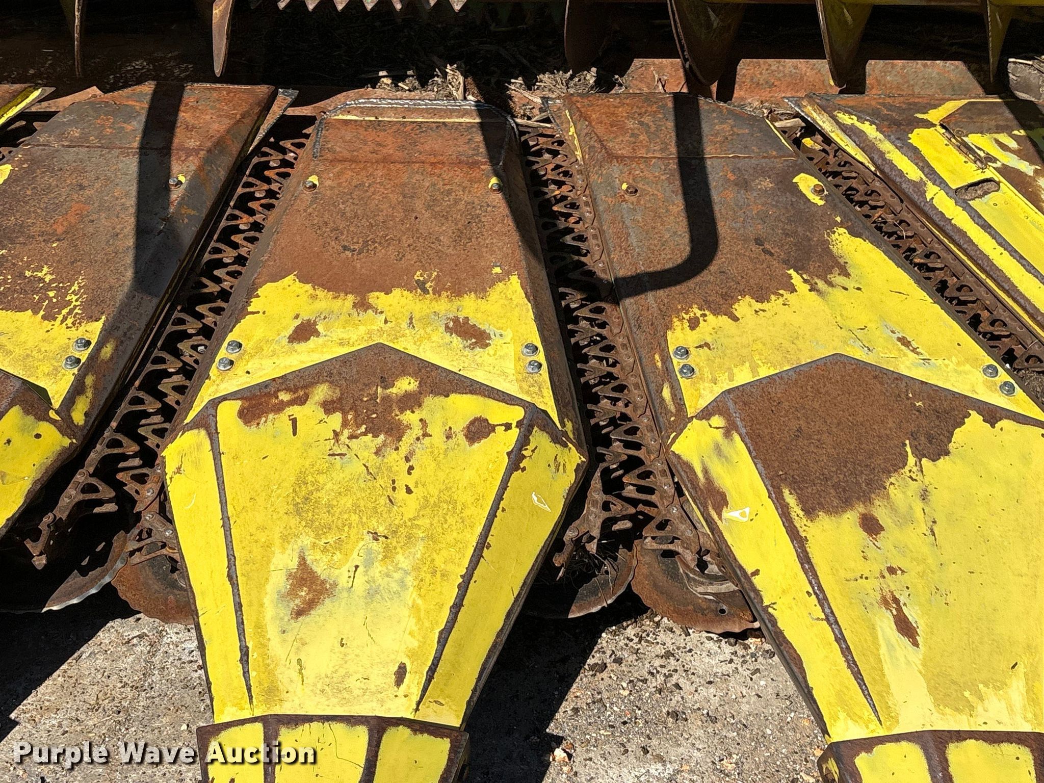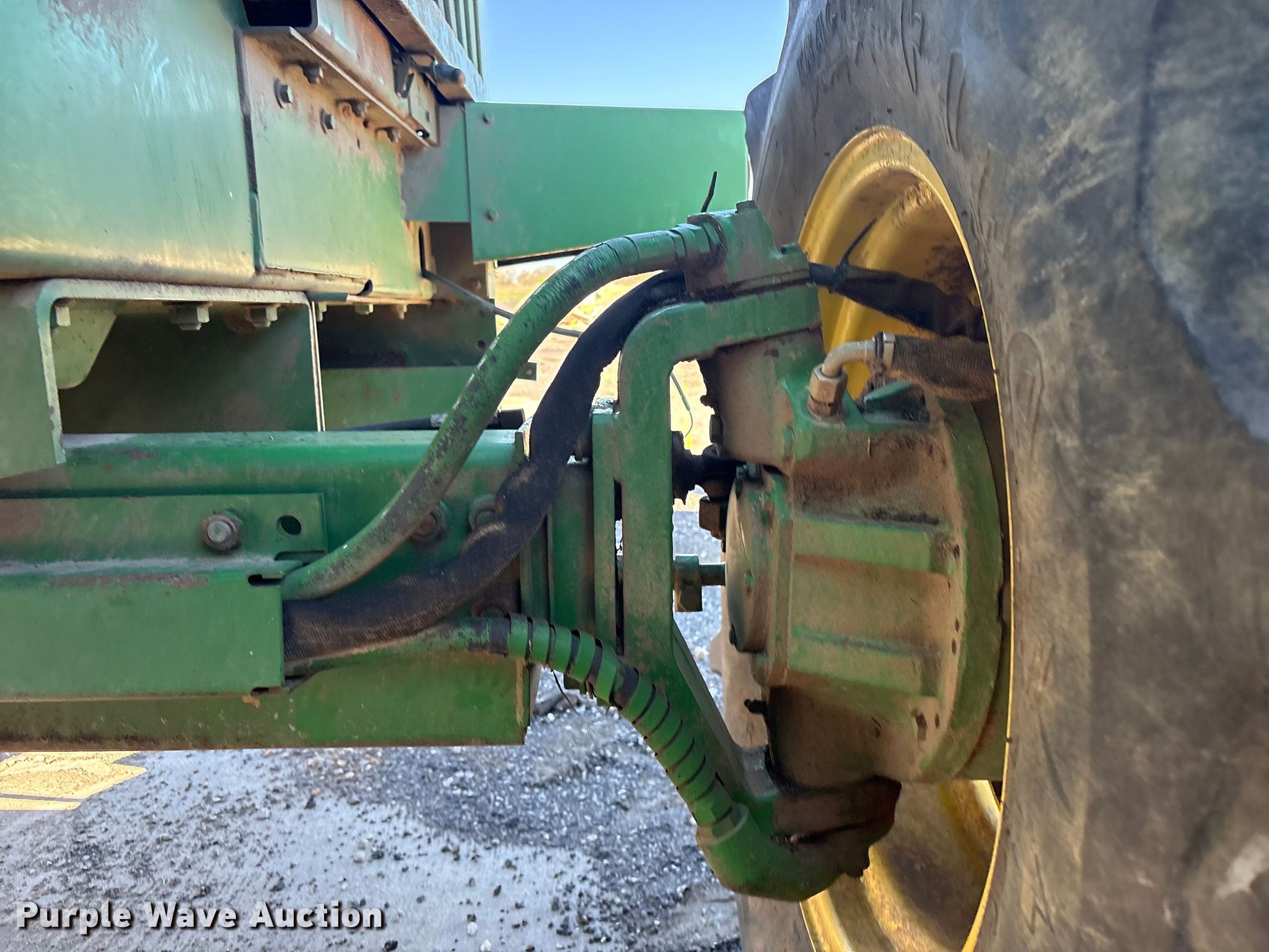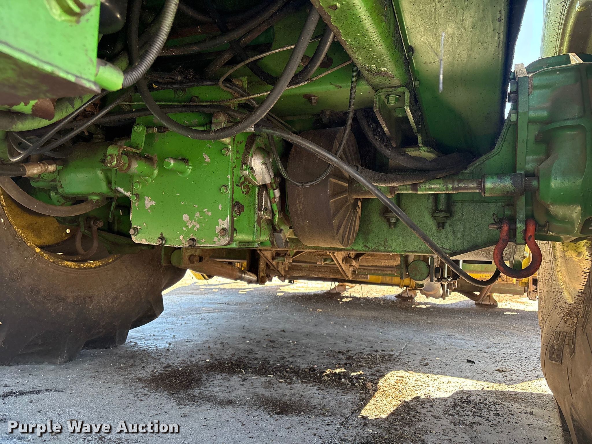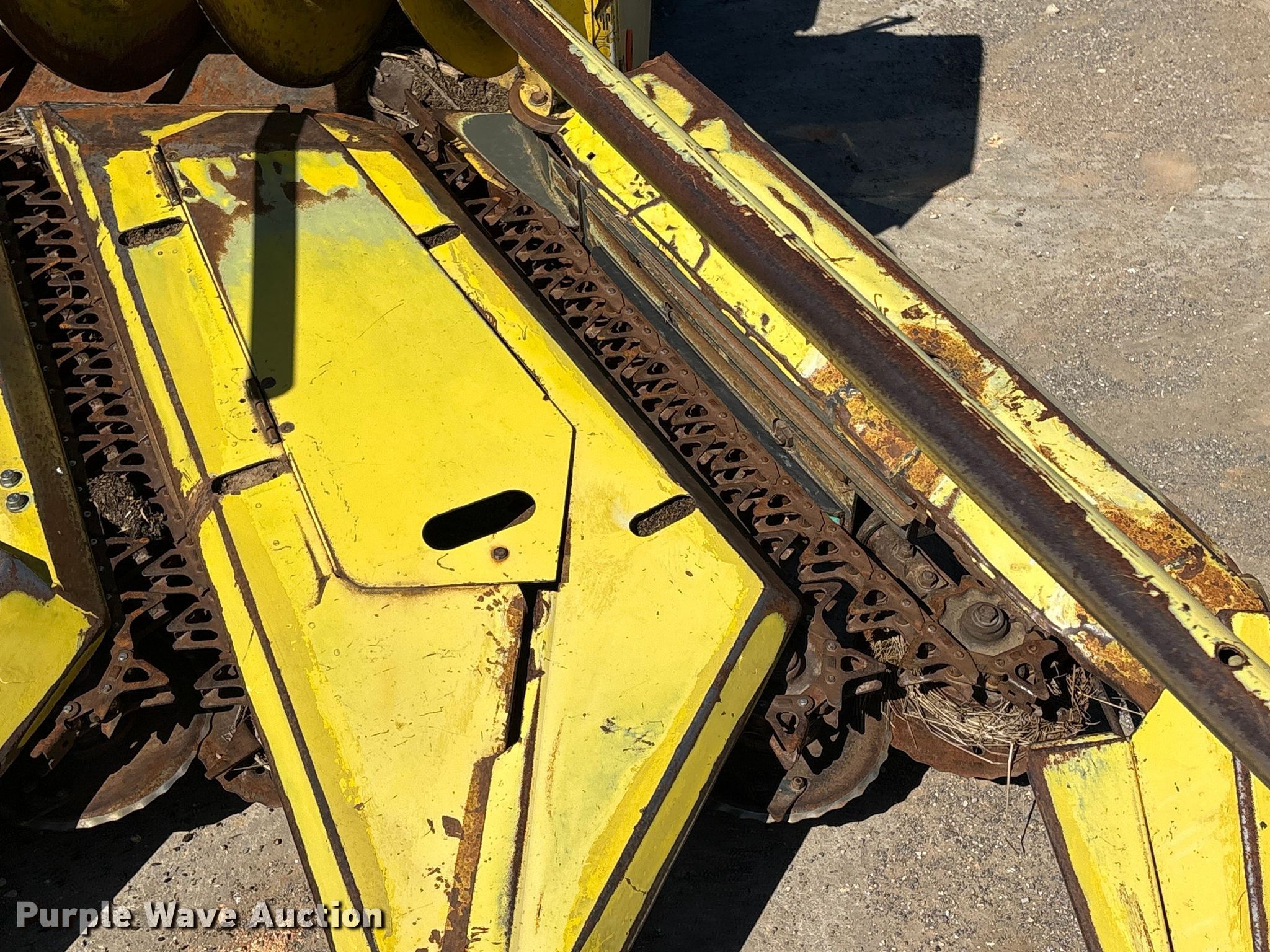 1992 John Deere 6710 forage harvester. Hours: Unknown, Serial: Z06710X500079. Engine John Deere. Transmission Hydrostatic, Differential lock. Operators station AC, Heat. Features Silage additive spray system, Spout: High arch, Hydraulic adjust, Rear hitch, Head drive: Single, Head 1997 John Deere 666, Serial: 200666100 8121, Corn, Width: 14', Rows: 6, Row spacing: 24". Tires Front: 650/75R32, Rear: 16.9-26. Garman Trucking LLC. Watts, OK 74964