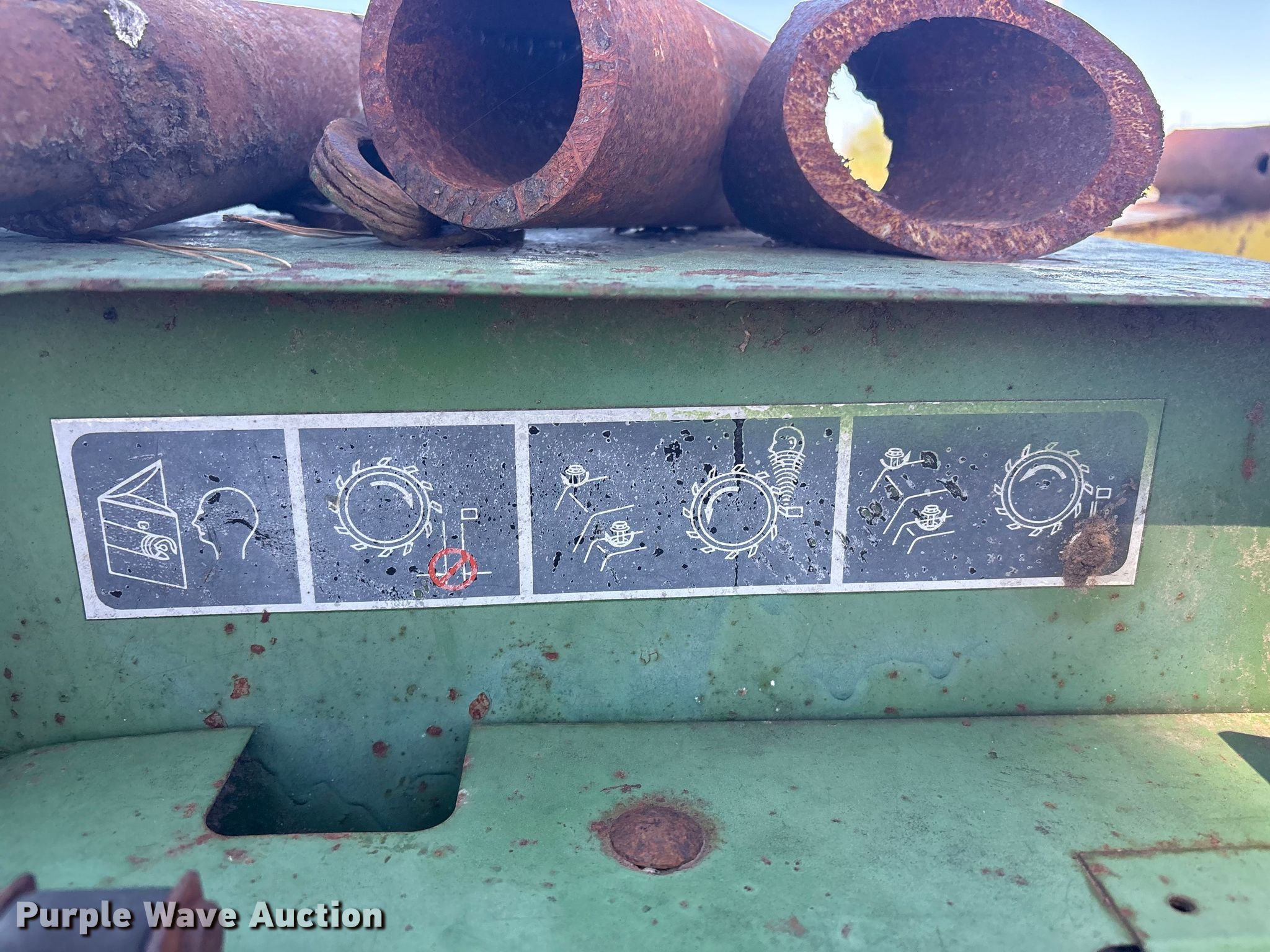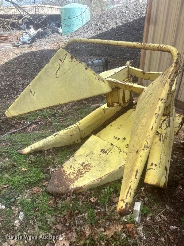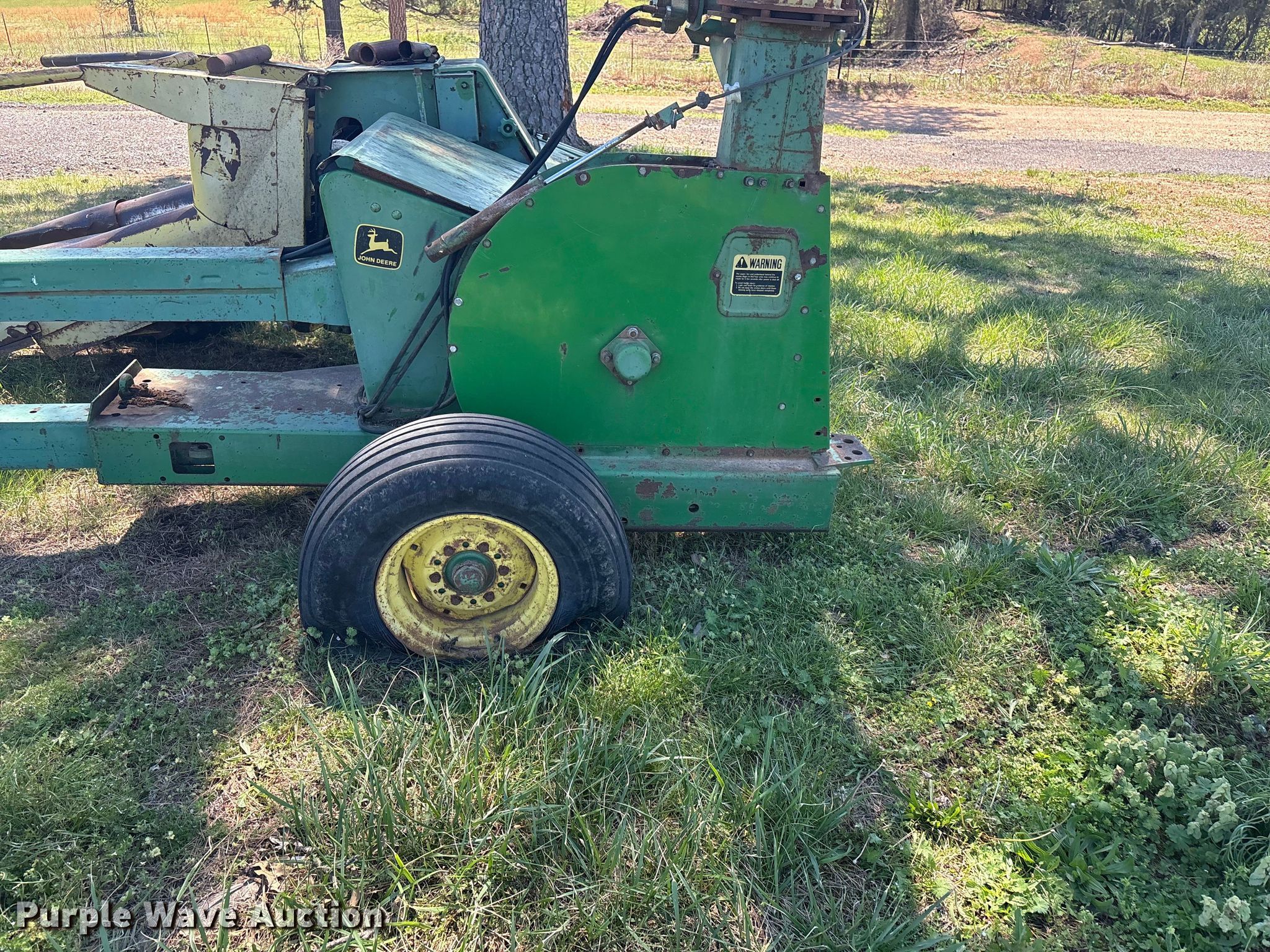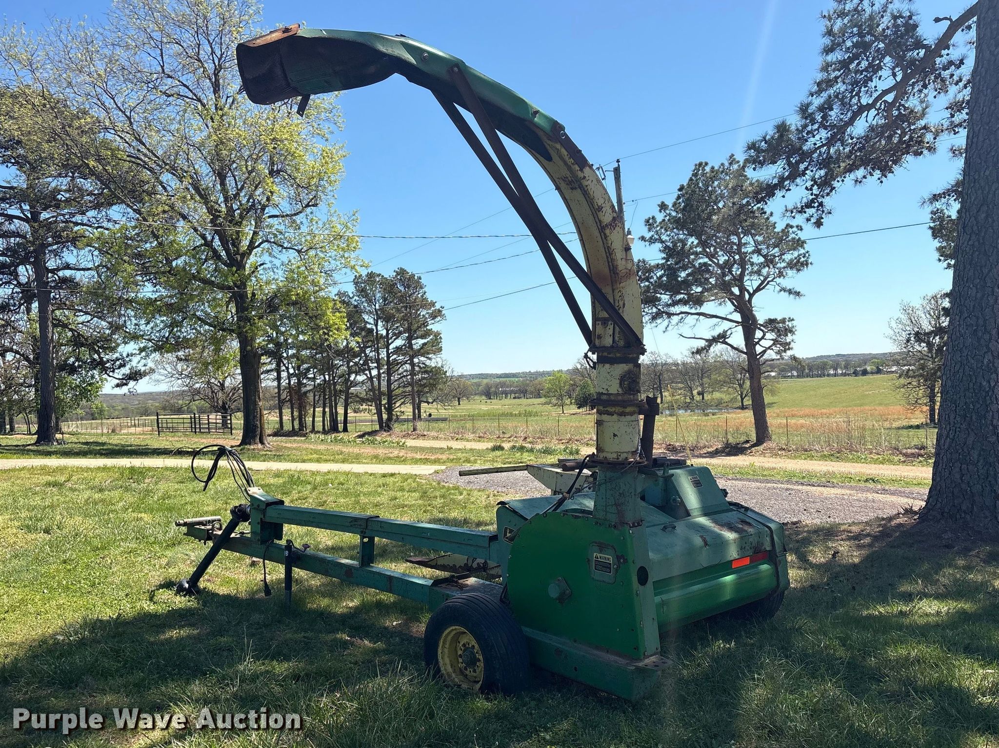 John Deere forage harvester. Serial: 483324E. Features PTO: 1000, Head John Deere, Corn, Width: 5', Rows: 2, Row spacing: 30". Tires Front: 31x13.50-15NHS. Notes Unknown operating condition. Garman Trucking LLC. Watts, OK 74964