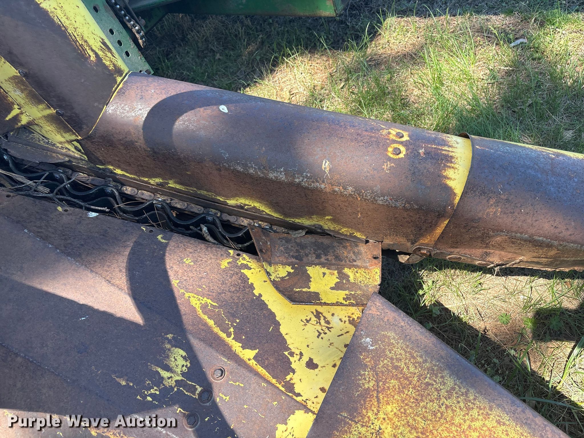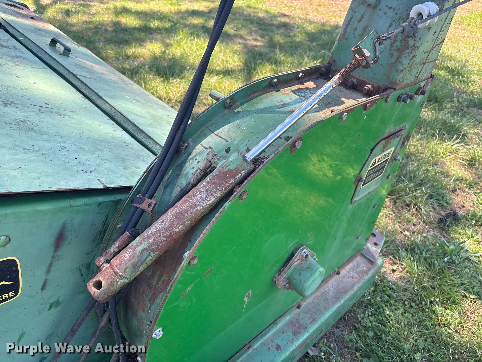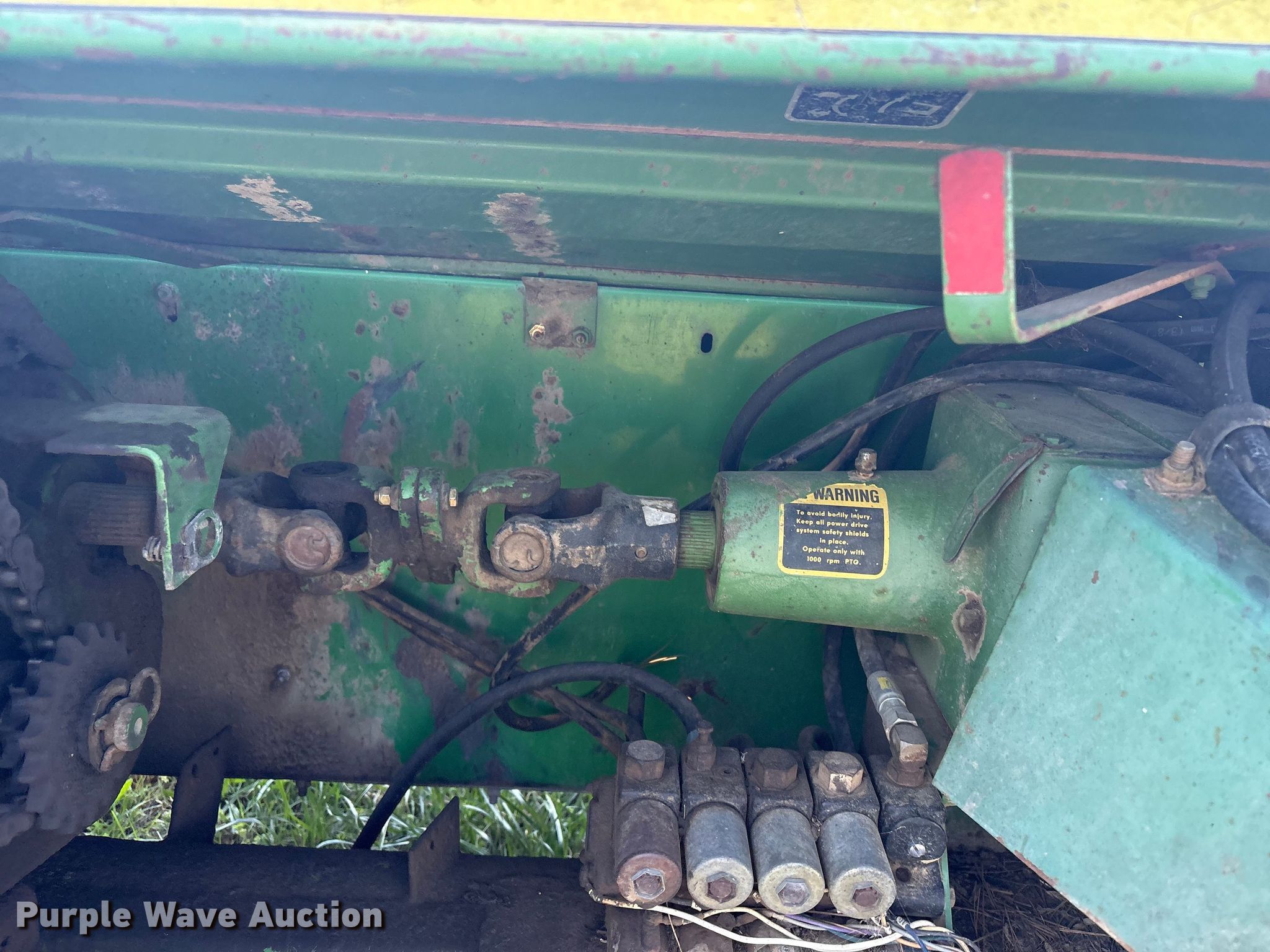 John Deere forage harvester. Serial: 483324E. Features PTO: 1000, Head John Deere, Corn, Width: 5', Rows: 2, Row spacing: 30". Tires Front: 31x13.50-15NHS. Notes Unknown operating condition. Garman Trucking LLC. Watts, OK 74964