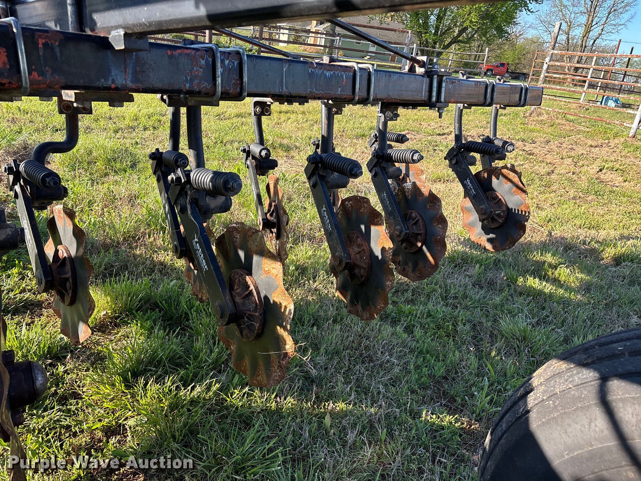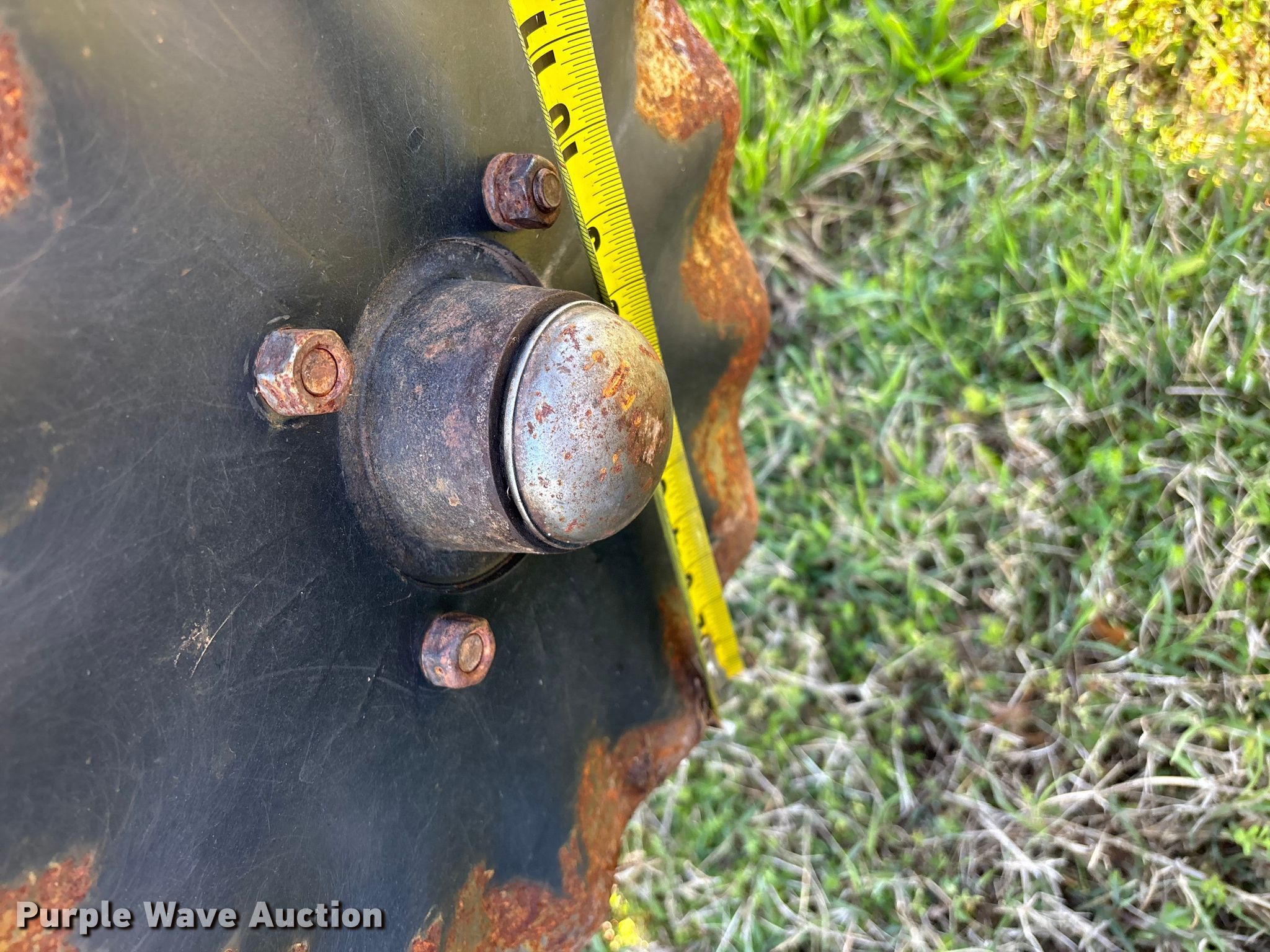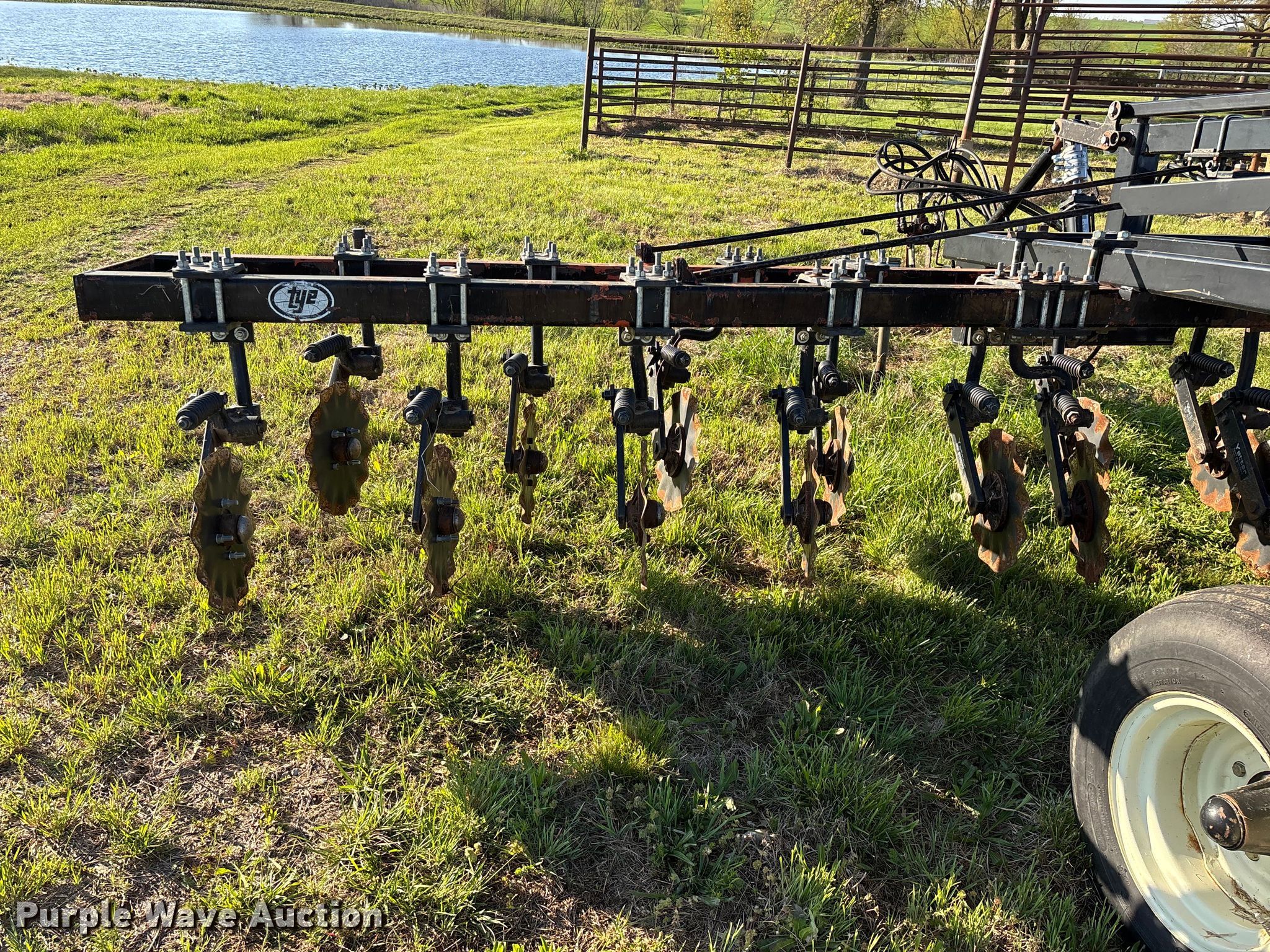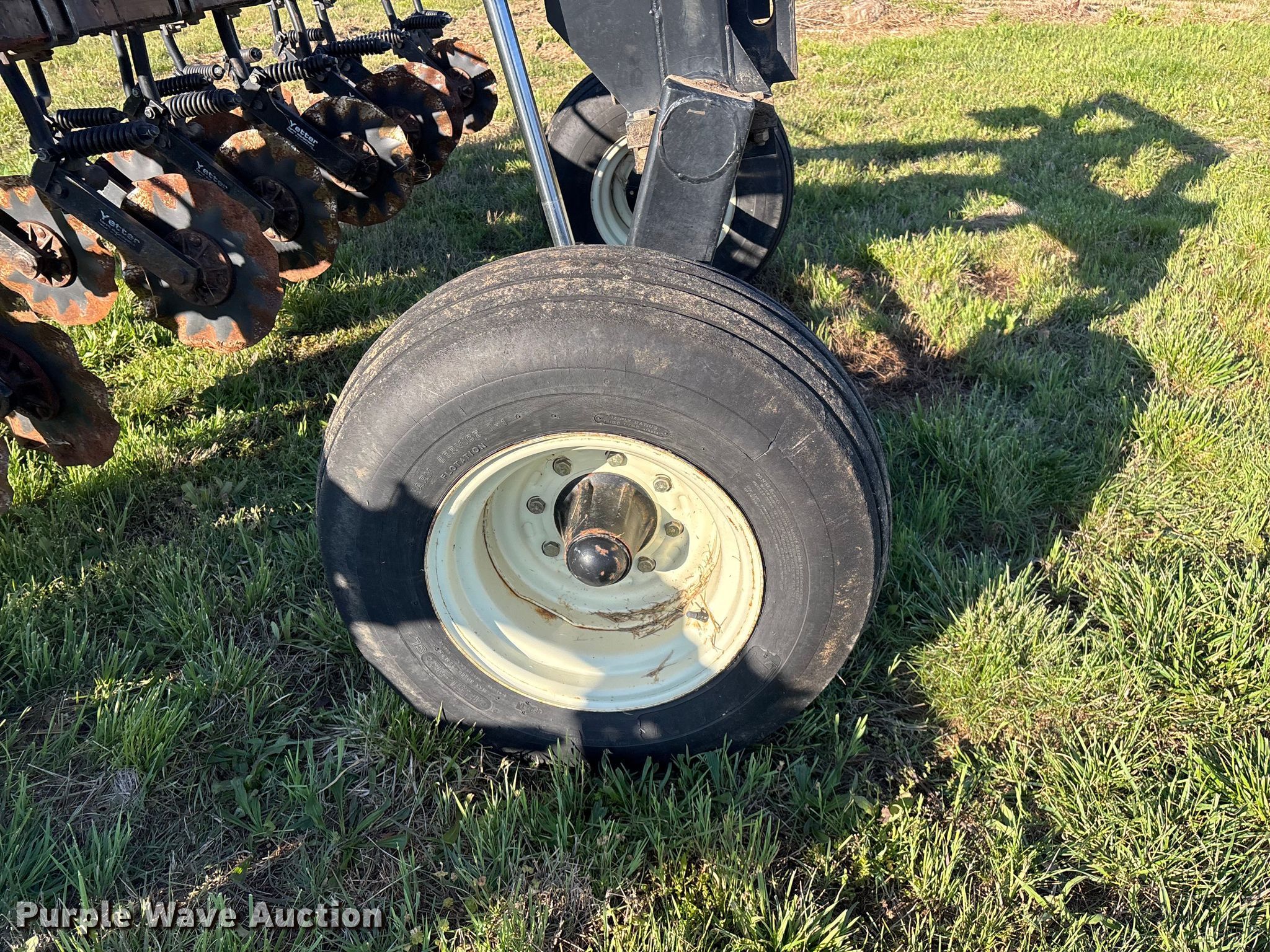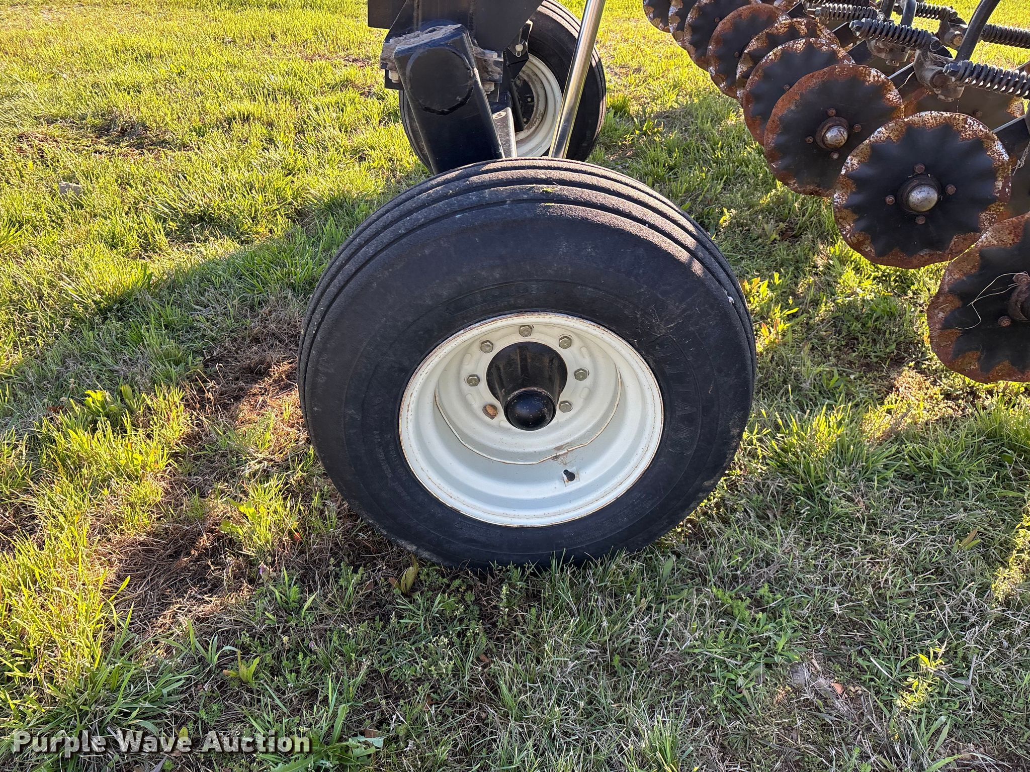 Tye 304-413 no-till drill caddy. Width: 21', Serial: 41300823. Features Coulters: 24 Diameter: 15". Tires Transport tire size: 12.5L-16. Notes Hitch pin not included, Hydraulic leak, (7) additional no-till coulter assemblies. Bill Garrett. Golden City, MO 64748