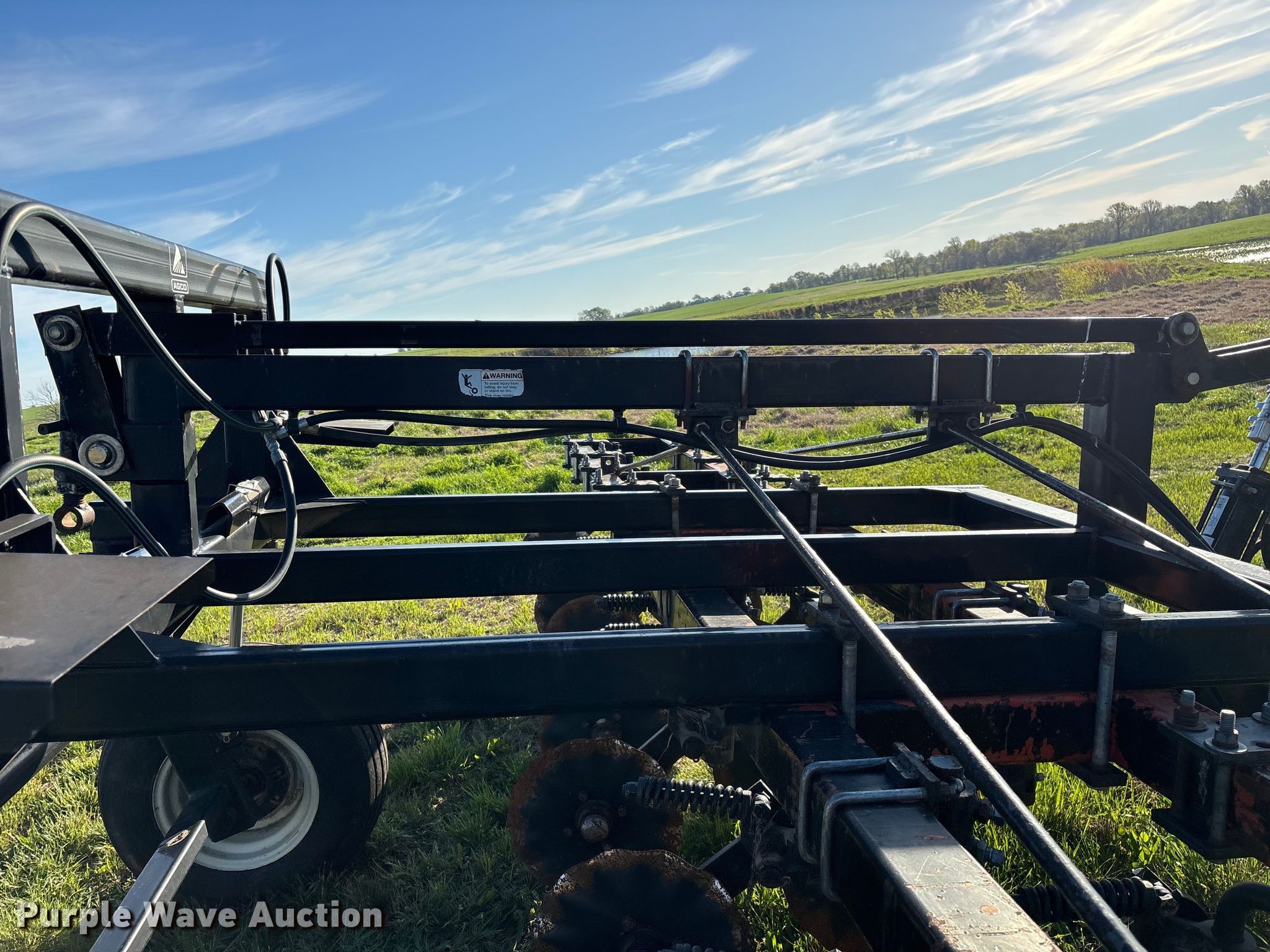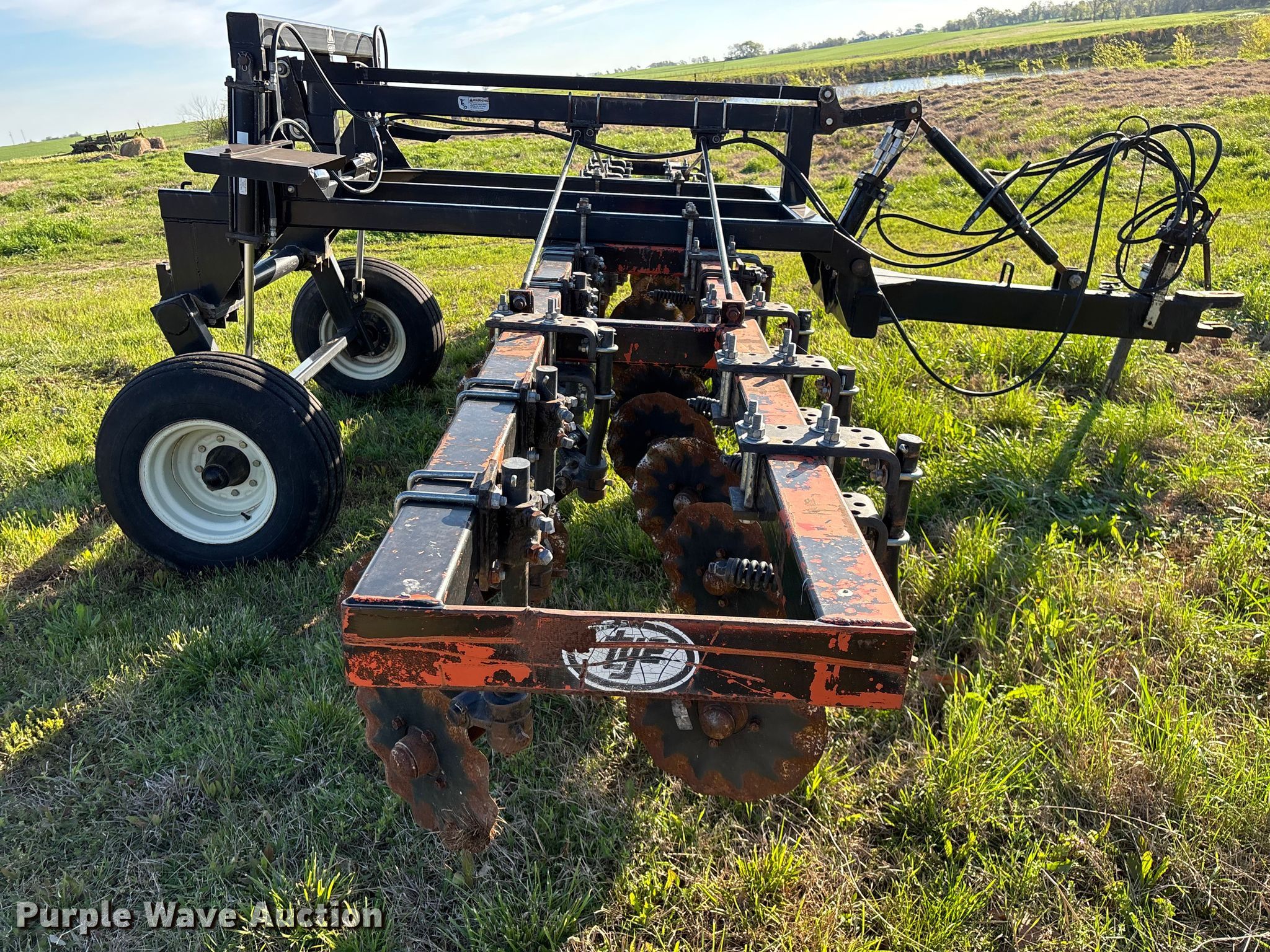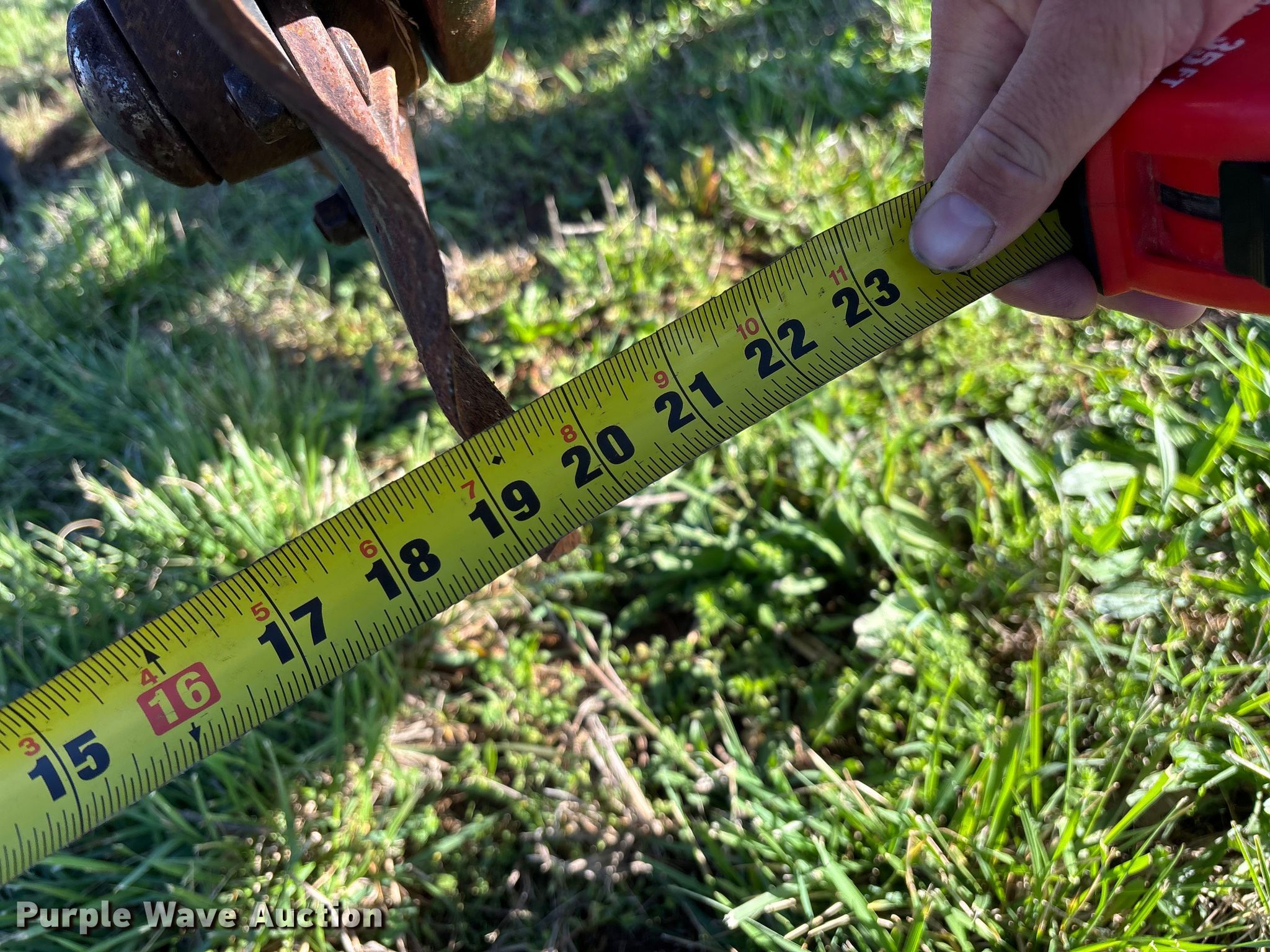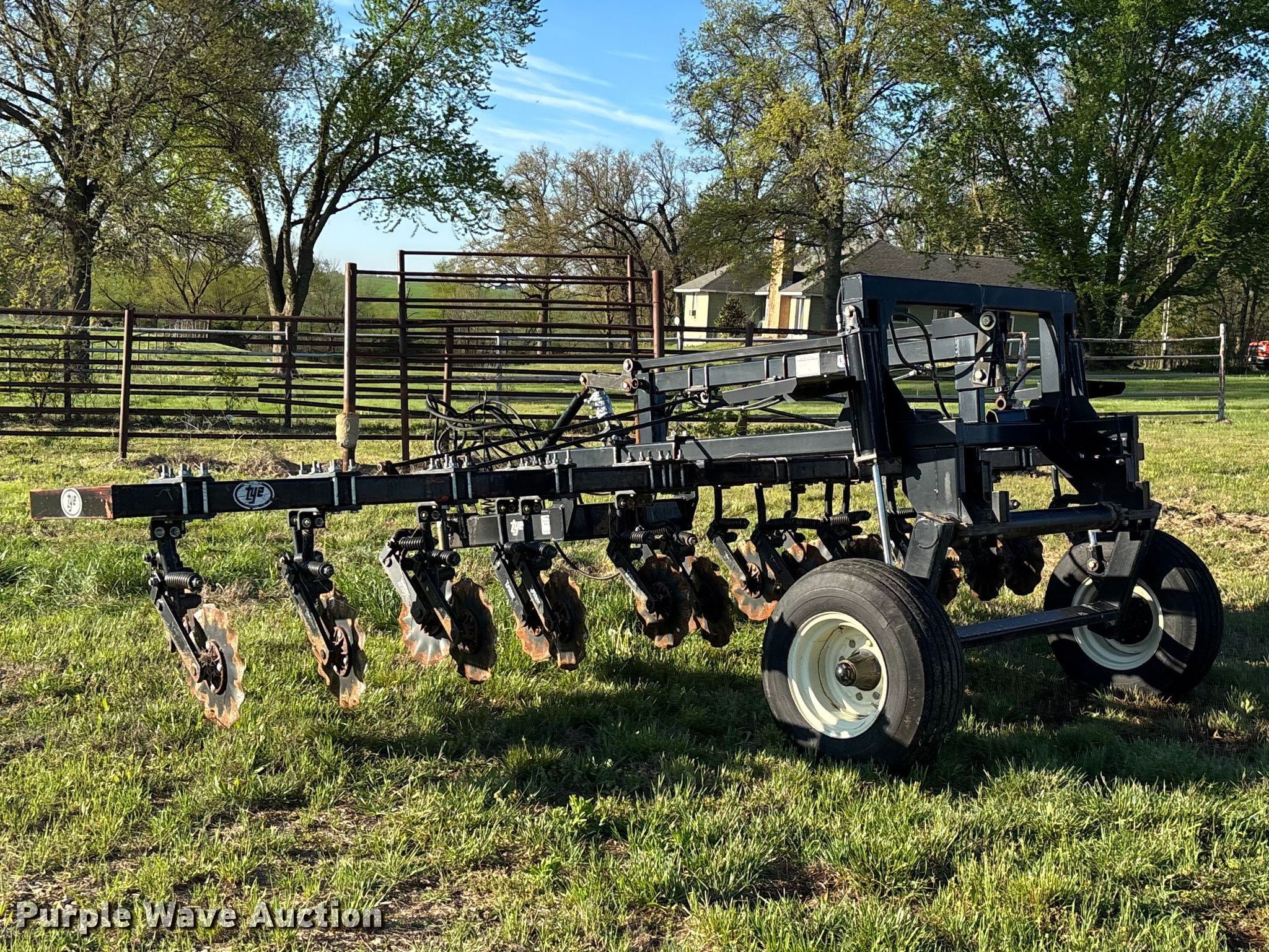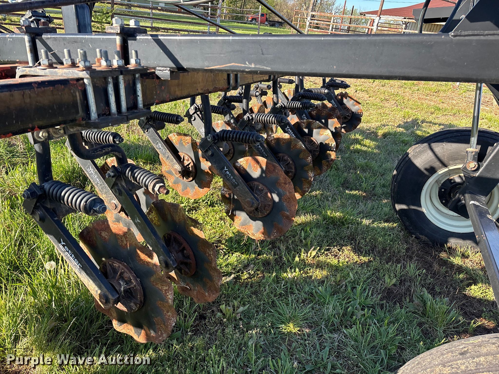 Tye 304-413 no-till drill caddy. Width: 21', Serial: 41300823. Features Coulters: 24 Diameter: 15". Tires Transport tire size: 12.5L-16. Notes Hitch pin not included, Hydraulic leak, (7) additional no-till coulter assemblies. Bill Garrett. Golden City, MO 64748
