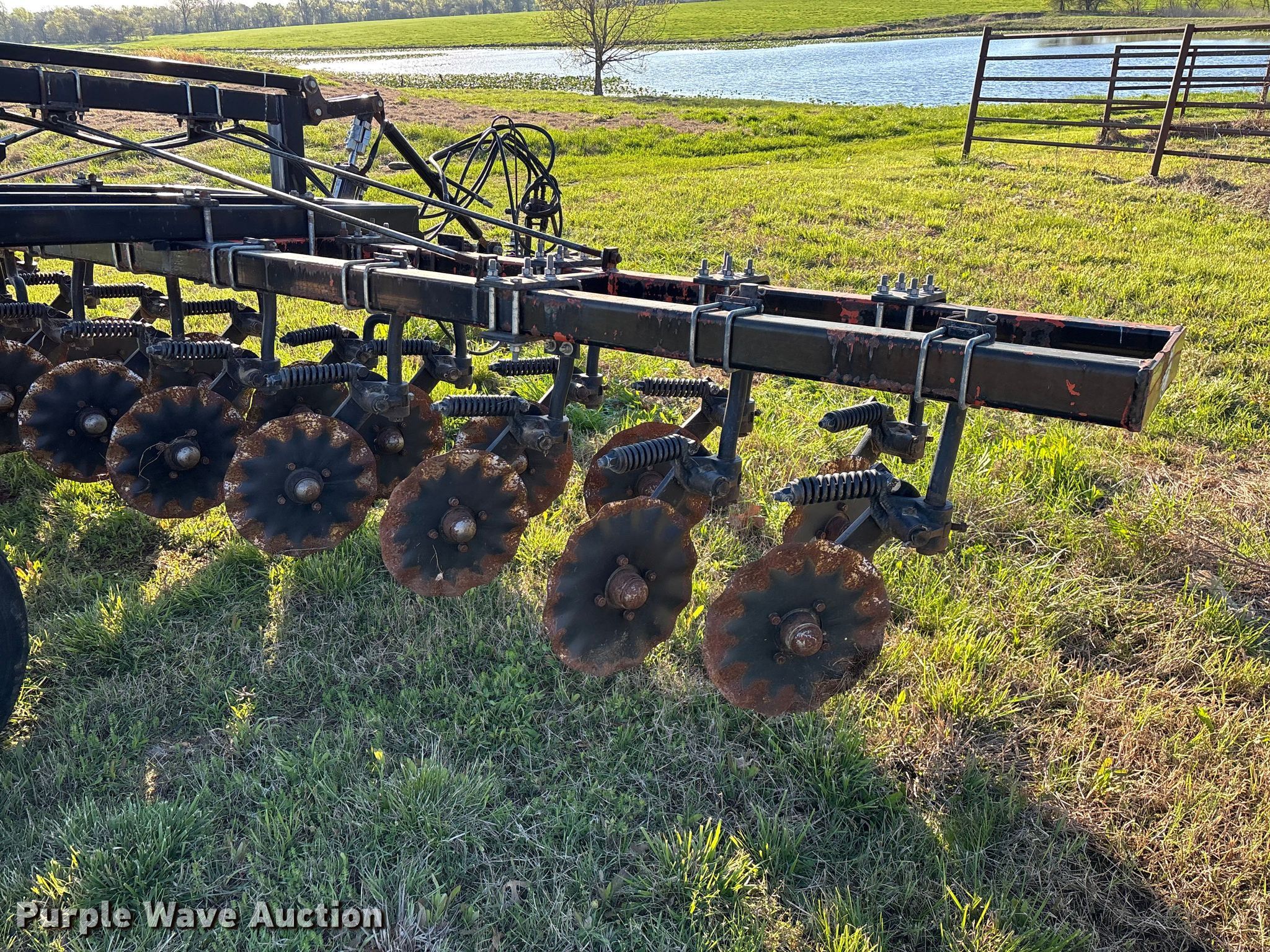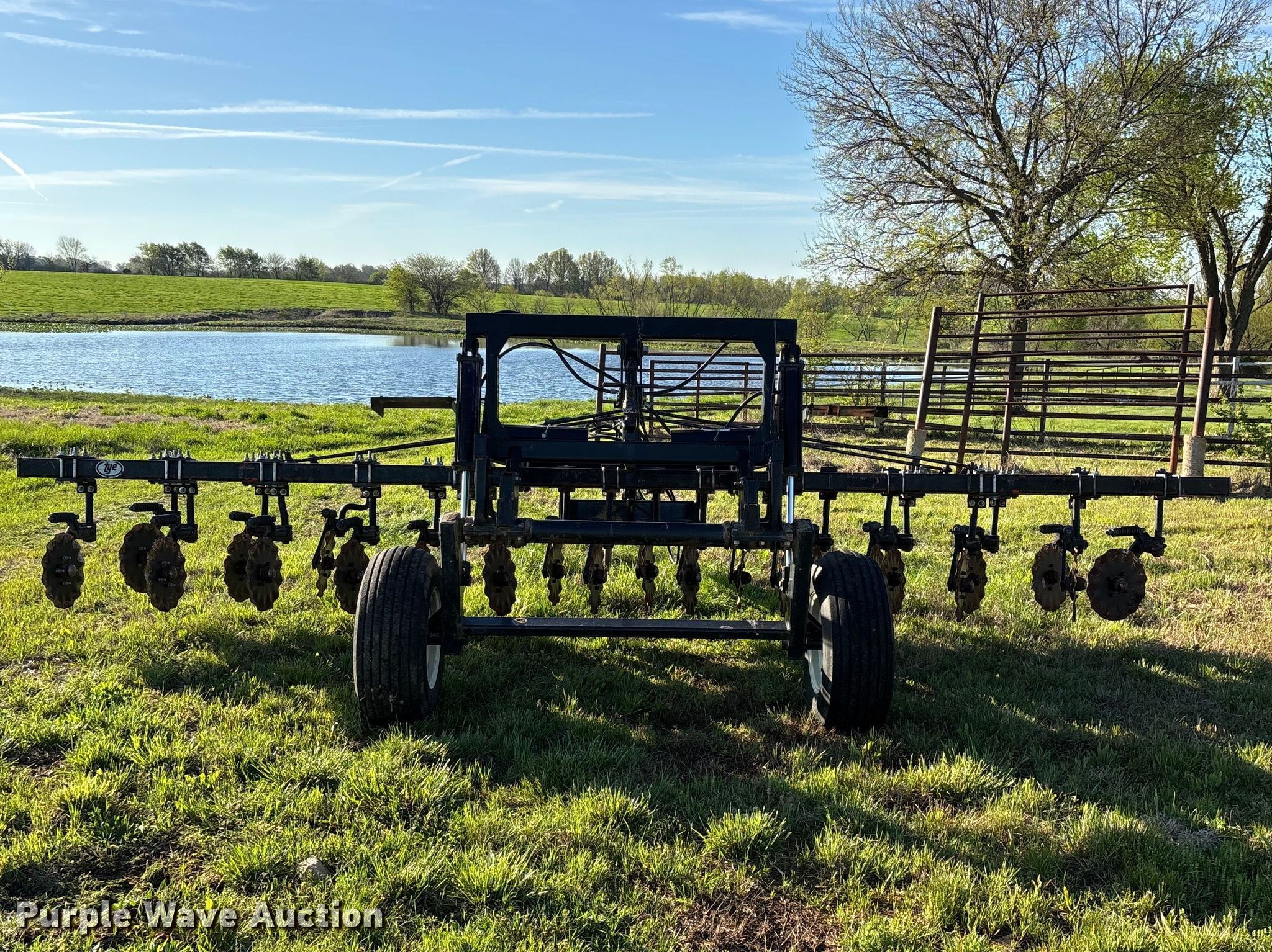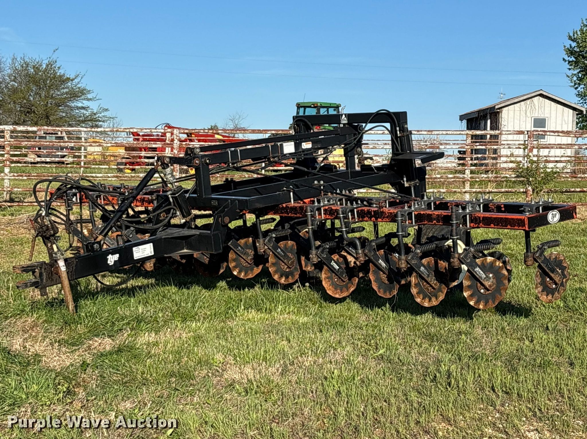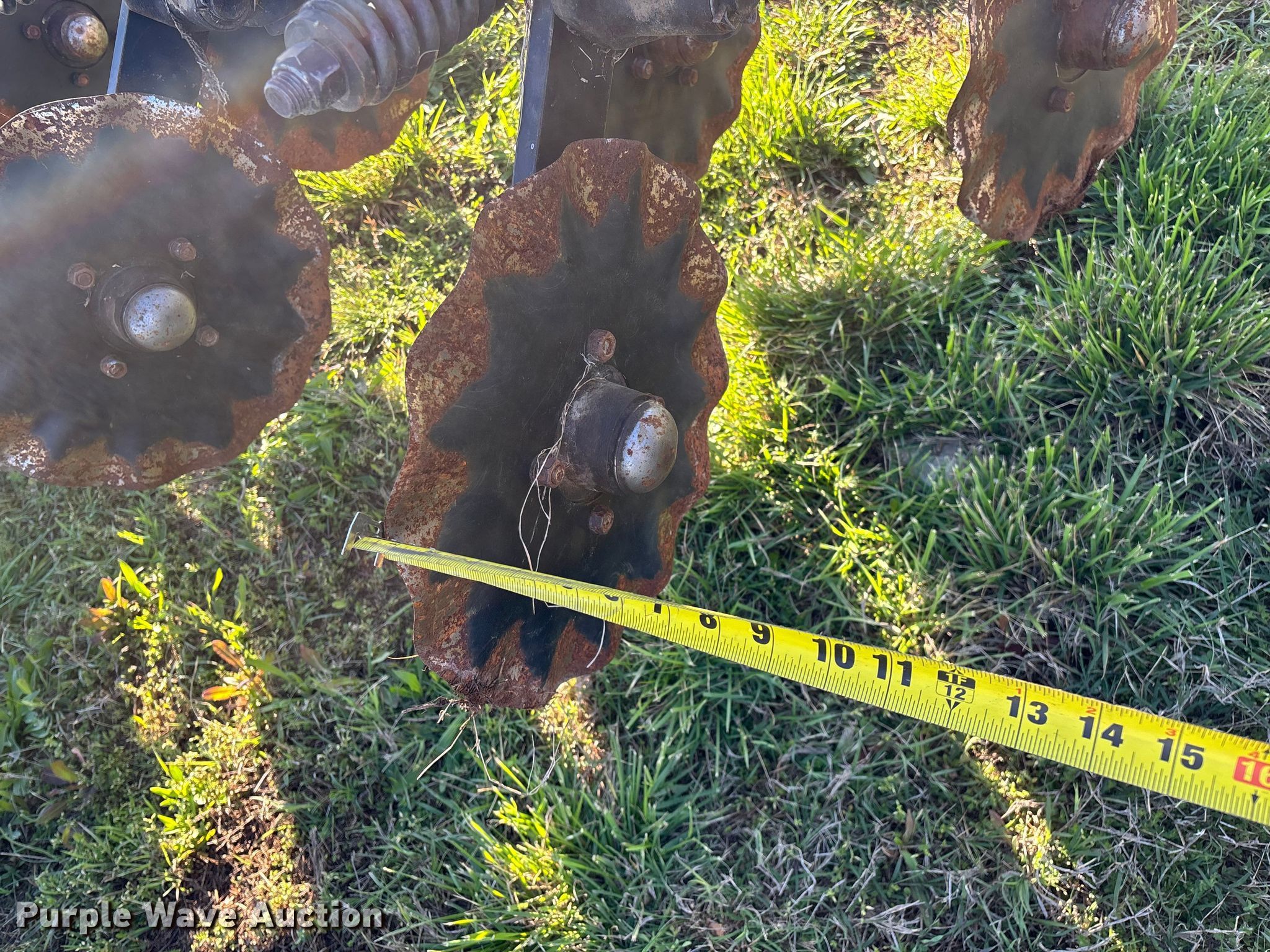 Tye 304-413 no-till drill caddy. Width: 21', Serial: 41300823. Features Coulters: 24 Diameter: 15". Tires Transport tire size: 12.5L-16. Notes Hitch pin not included, Hydraulic leak, (7) additional no-till coulter assemblies. Bill Garrett. Golden City, MO 64748