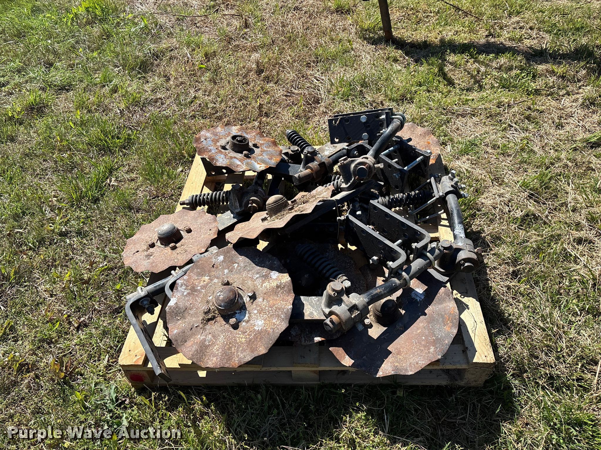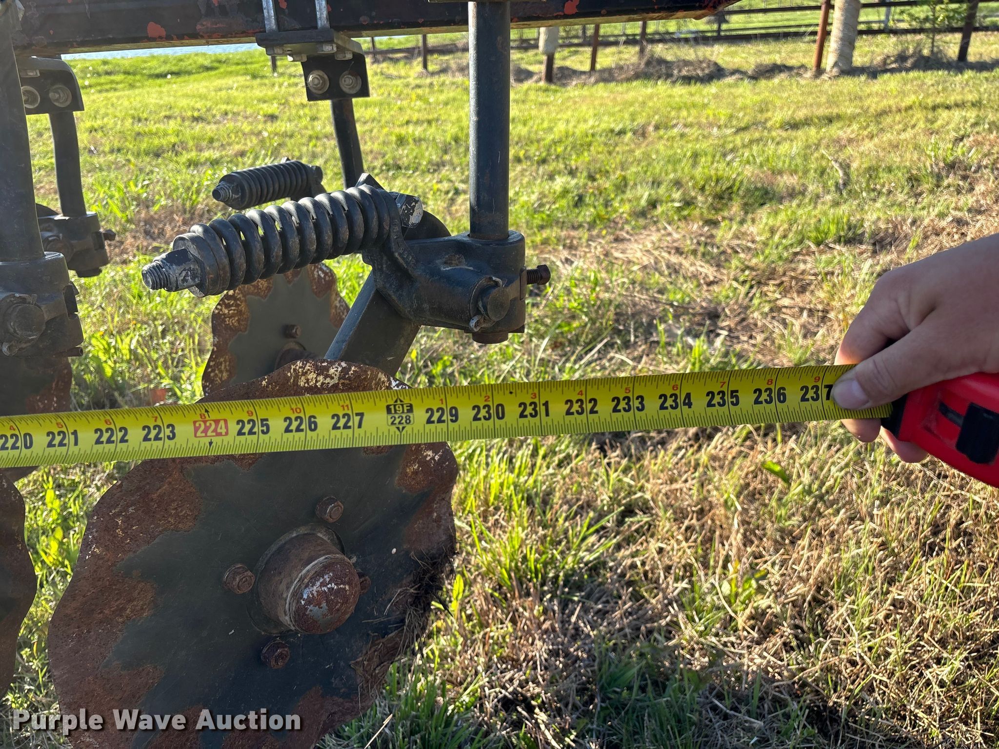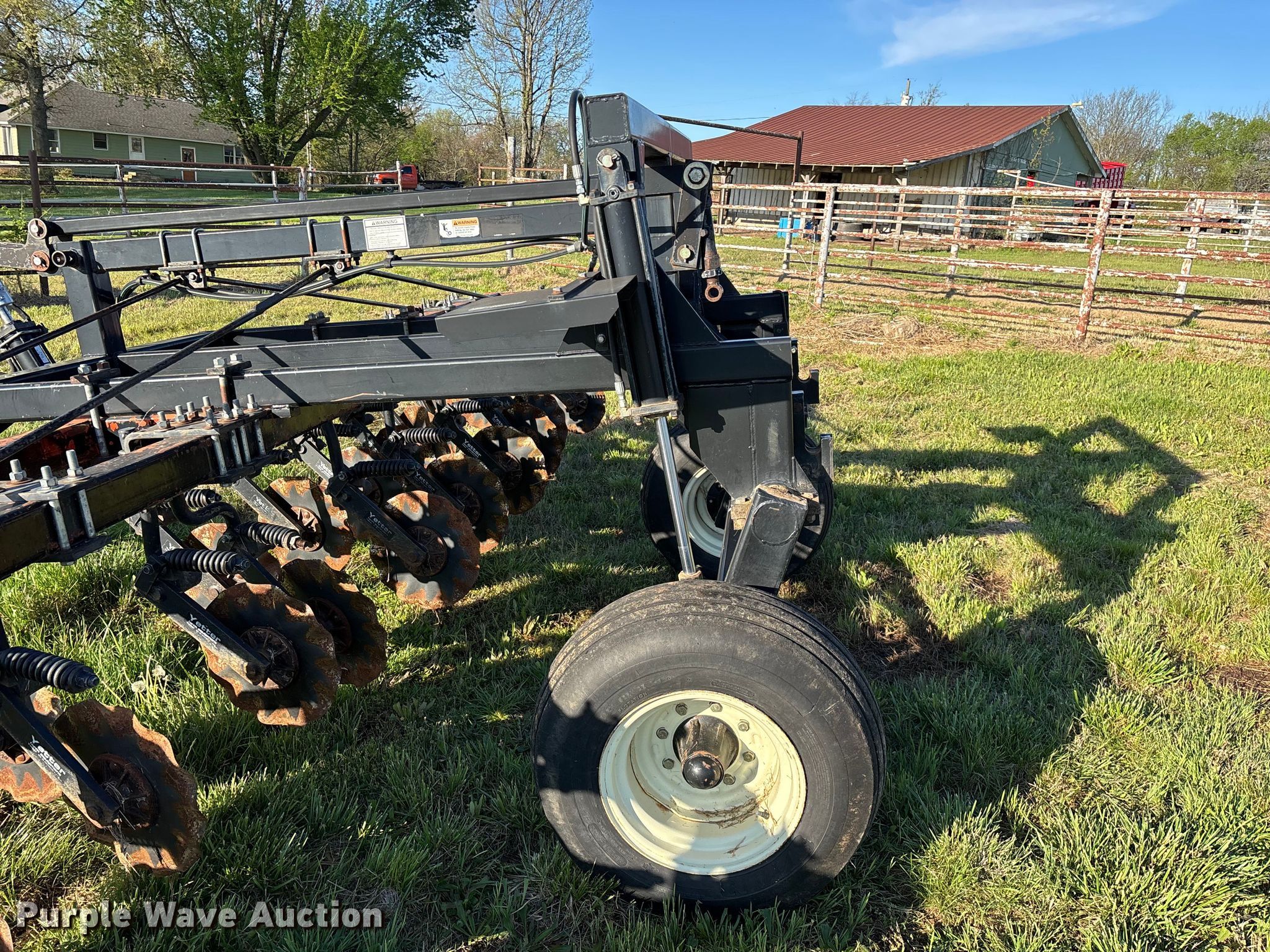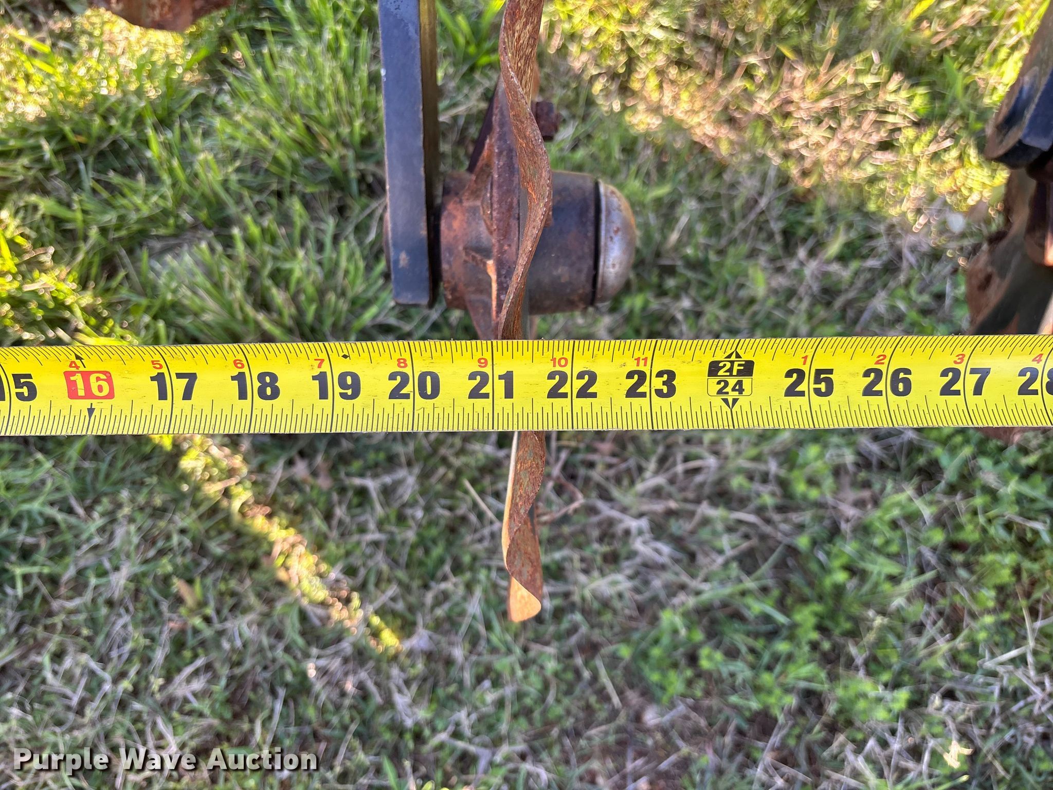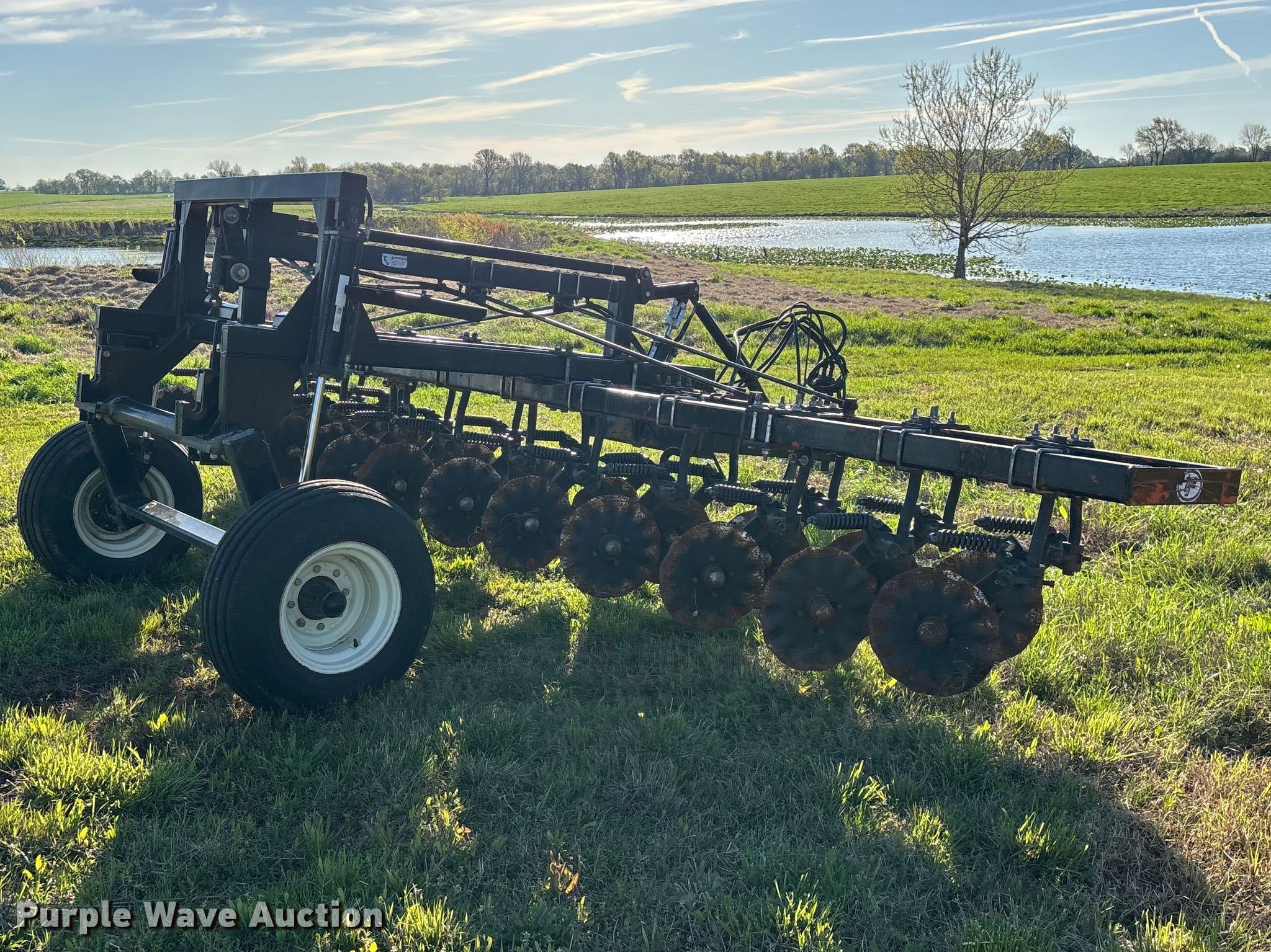 Tye 304-413 no-till drill caddy. Width: 21', Serial: 41300823. Features Coulters: 24 Diameter: 15". Tires Transport tire size: 12.5L-16. Notes Hitch pin not included, Hydraulic leak, (7) additional no-till coulter assemblies. Bill Garrett. Golden City, MO 64748