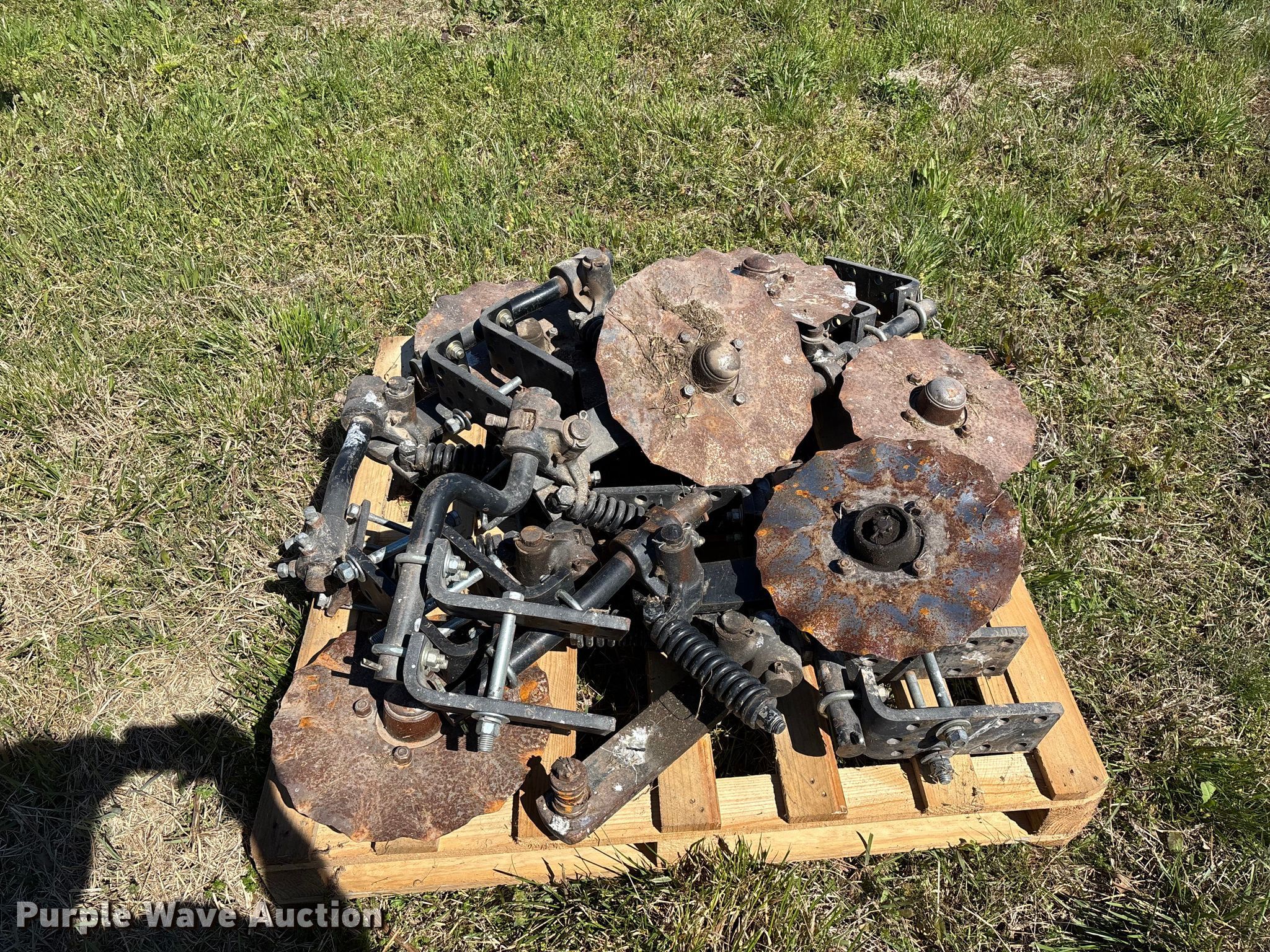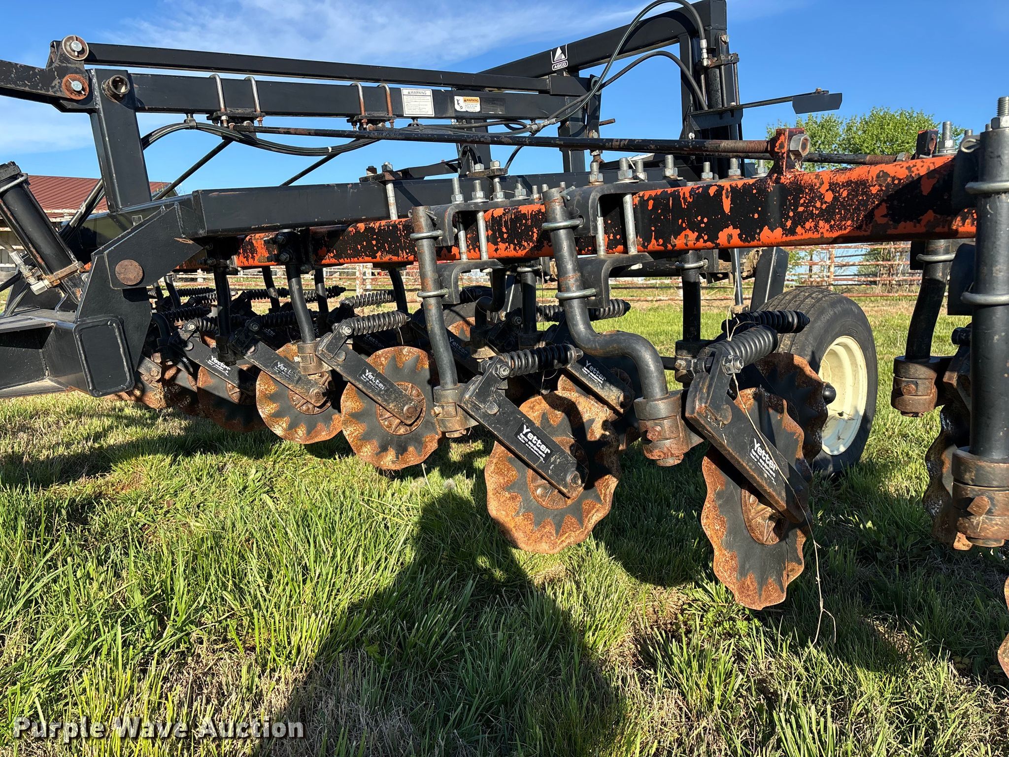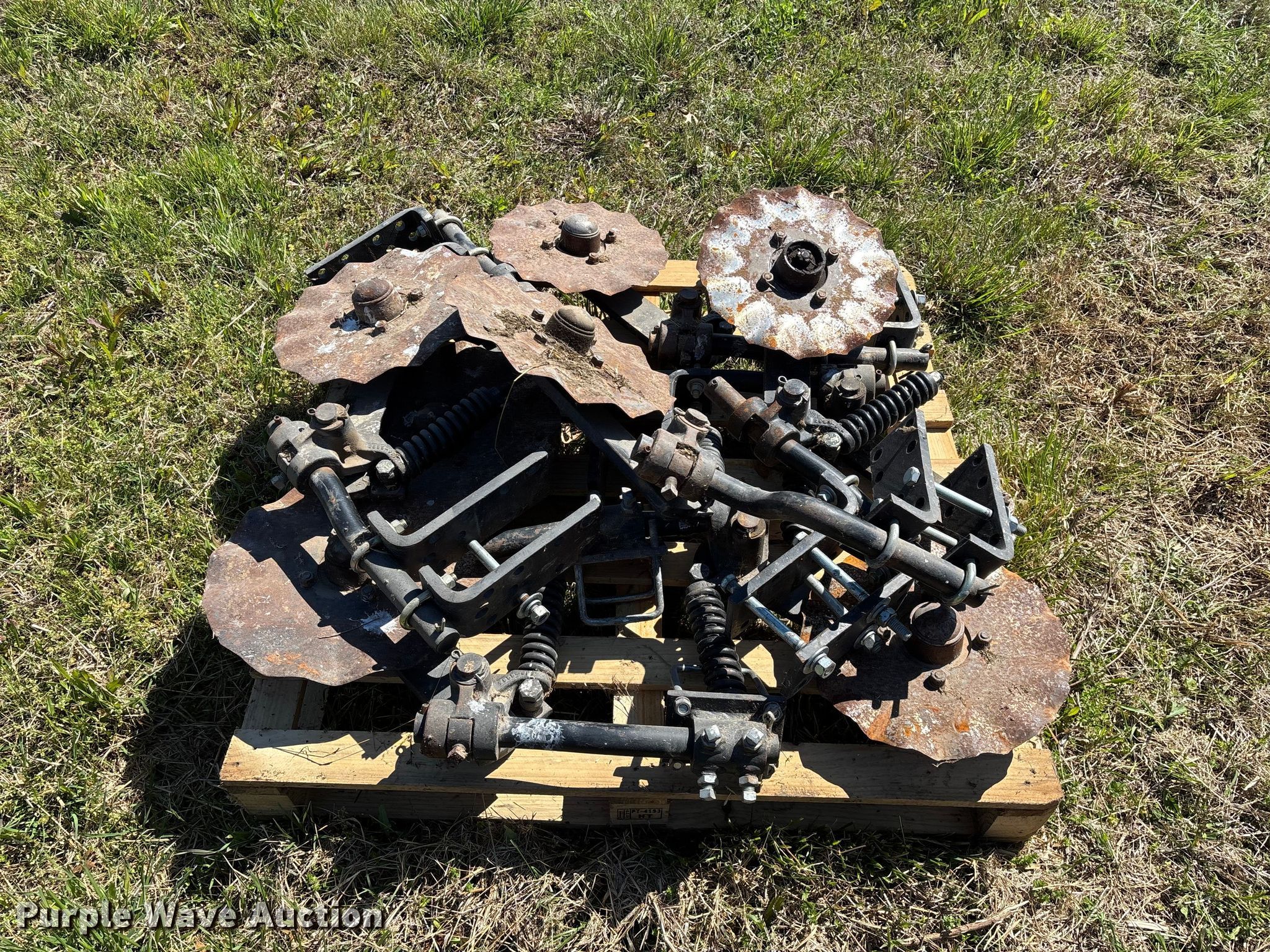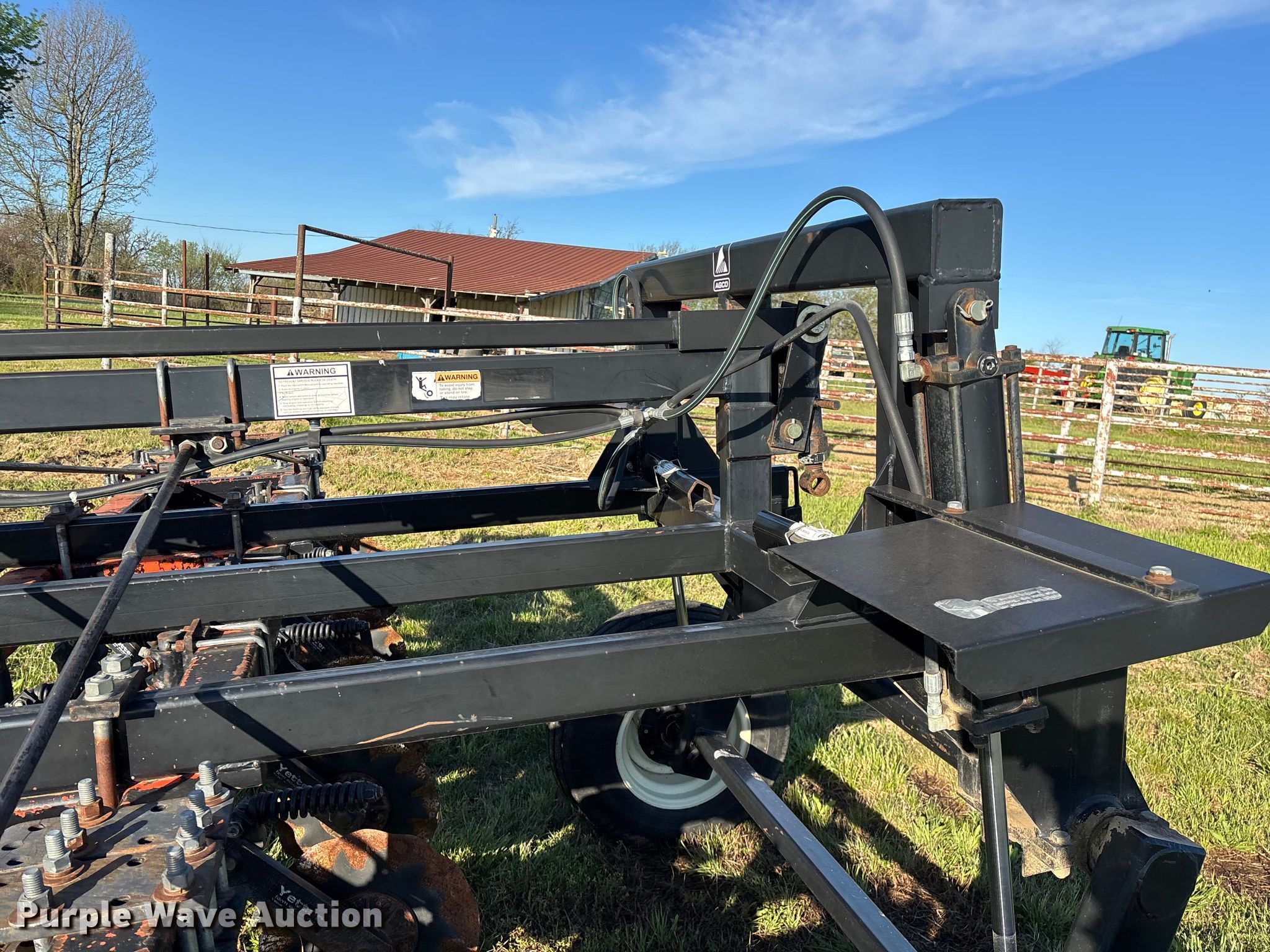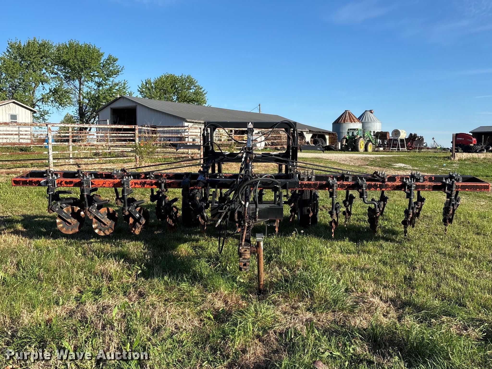 Tye 304-413 no-till drill caddy. Width: 21', Serial: 41300823. Features Coulters: 24 Diameter: 15". Tires Transport tire size: 12.5L-16. Notes Hitch pin not included, Hydraulic leak, (7) additional no-till coulter assemblies. Bill Garrett. Golden City, MO 64748