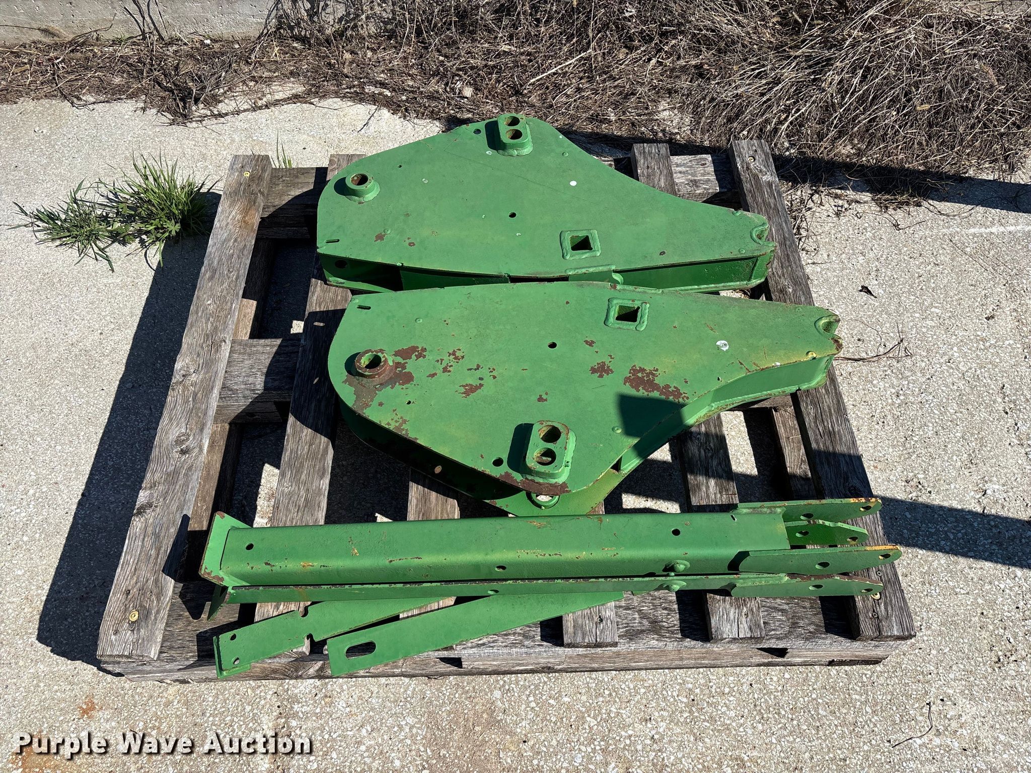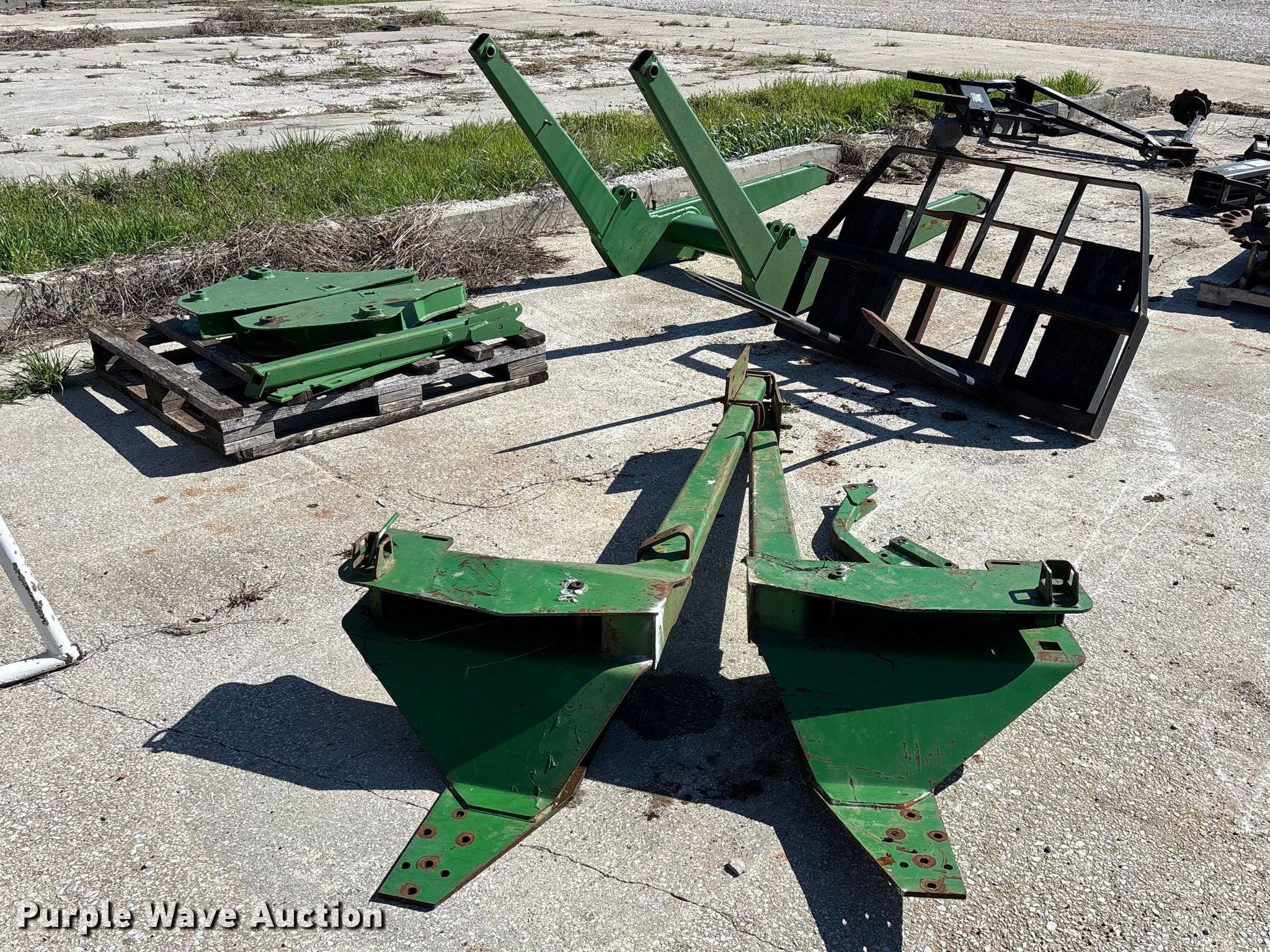 Purple Wave is selling a used Ag Tractor Loader or Attach. in Missouri. This item is a John Deere 640 loader parts with the following: Brackets, Loader arms, Bale spear