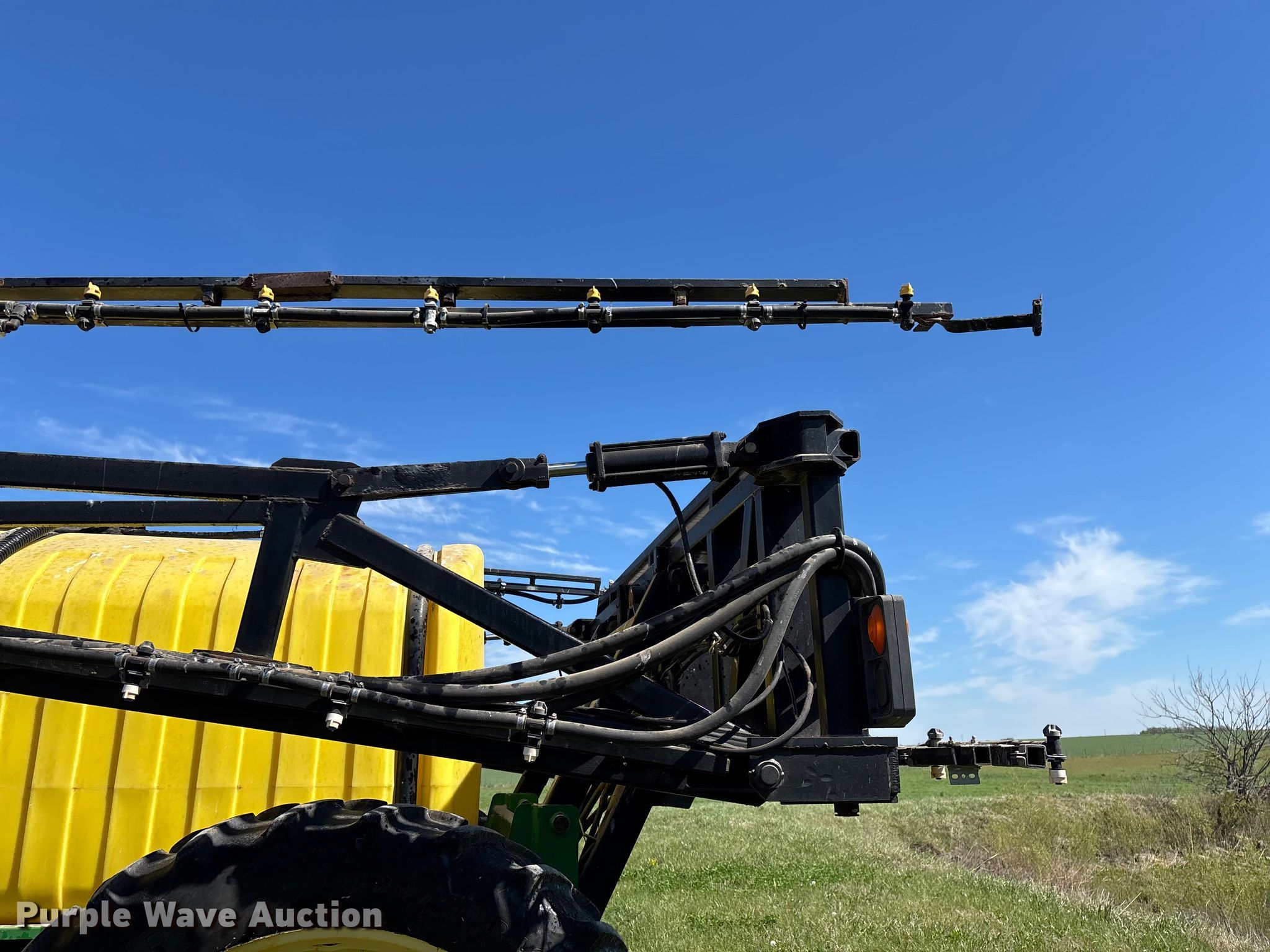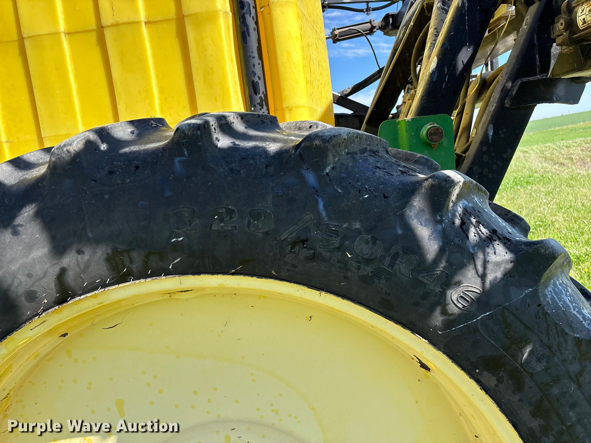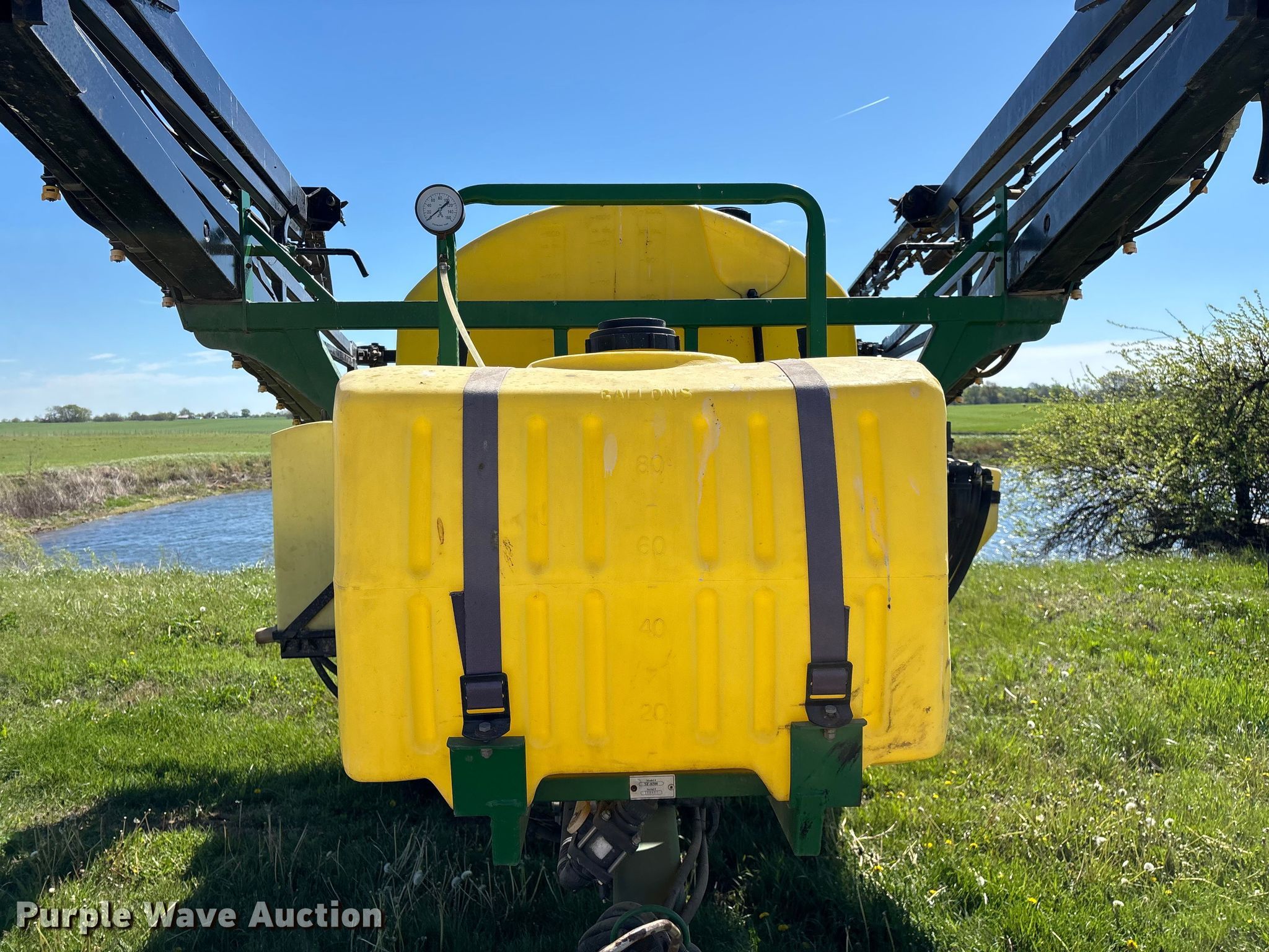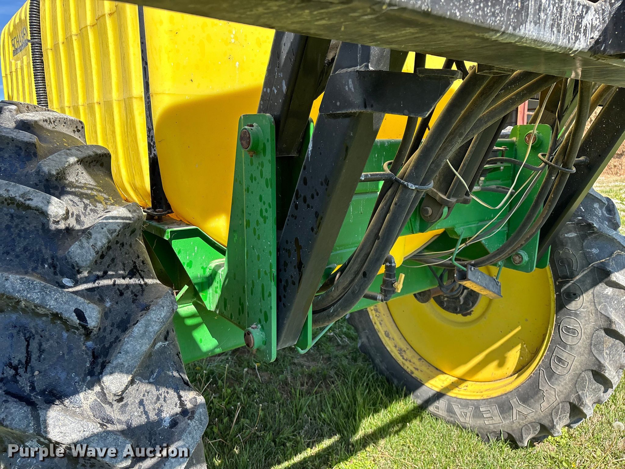 Schaben Industries SF-8500 sprayer. Serial: 100407. Features Transport lights, Solution tank Capacity: 1,250 gallons, Type: Poly, Chemical eductor Type: Poly, Rinse tank Capacity: 90 gallons, Clean water tank, Boom Width: 80', Sections: 4, Boom breakaway, Hydraulic fold, Hydraulic height control, Nozzles Spacing: 15", Make: TeeJet, Nozzle bodies: Single, Electronics Rate controller Green Star.. Tires Size: 320/90R46, Row crop tires. Notes Tractor not included, Additional spray tips, Contents not included, Hydraulic cylinder issues, leaks. Bill Garrett. Golden City, MO 64748