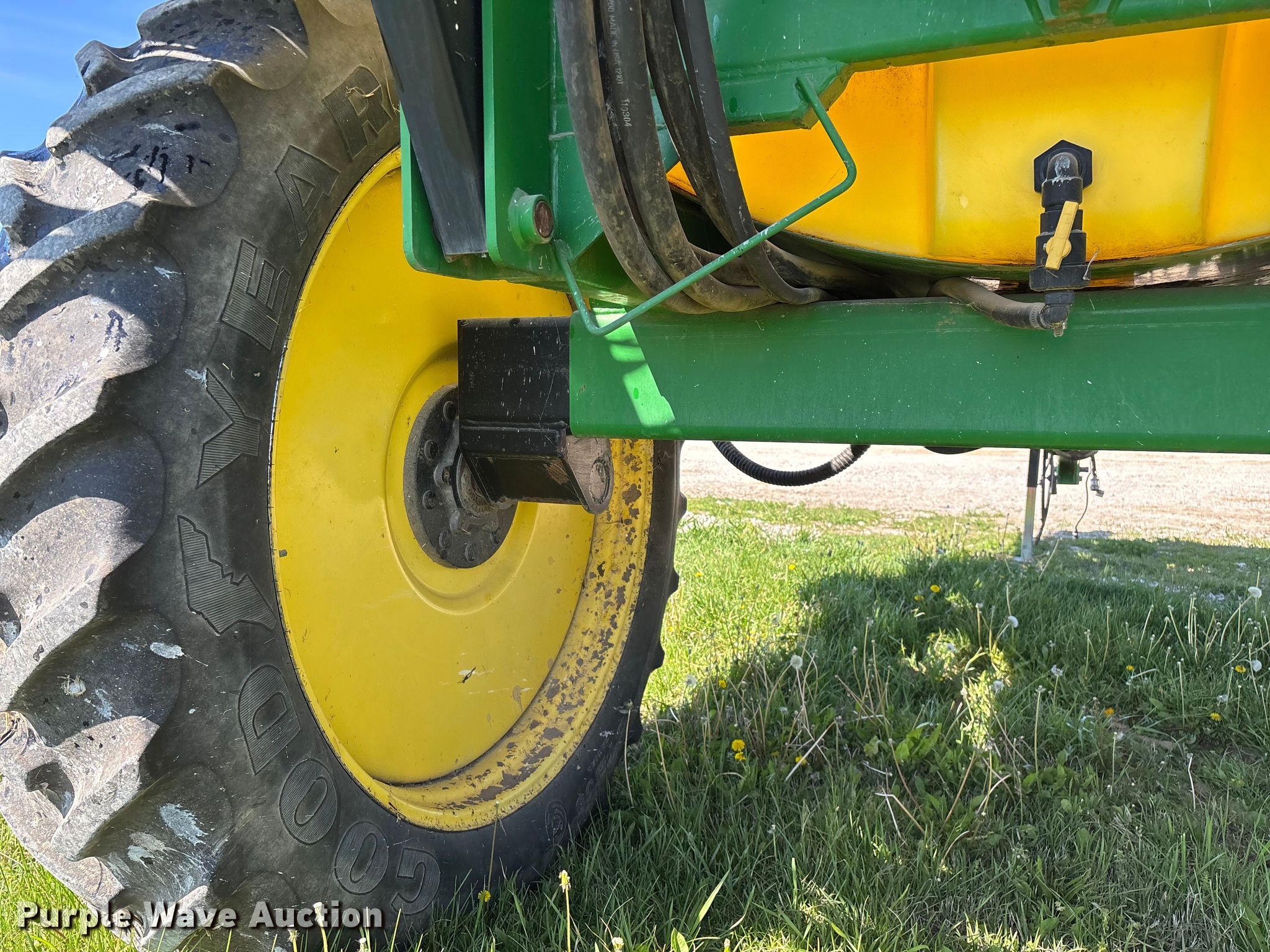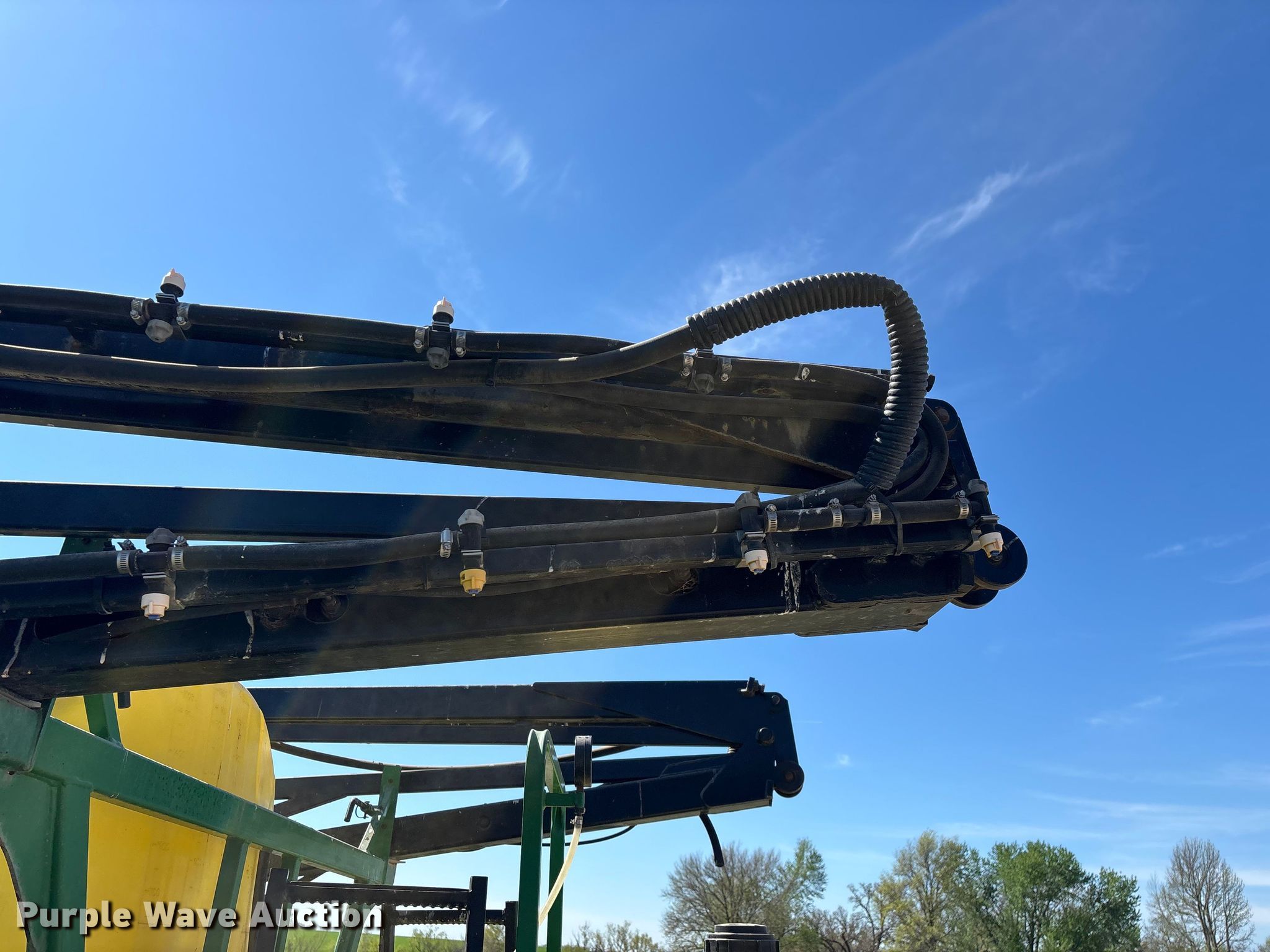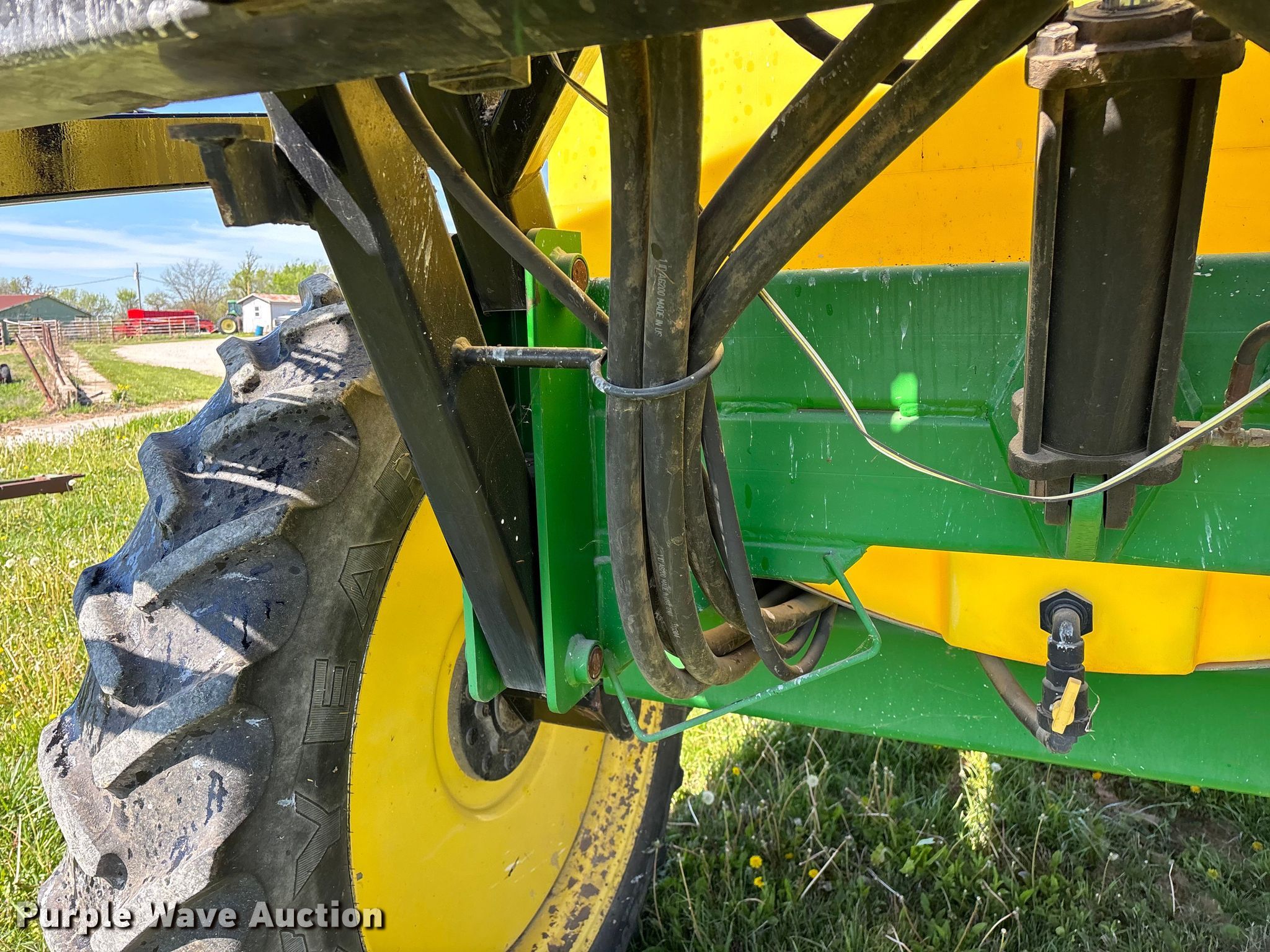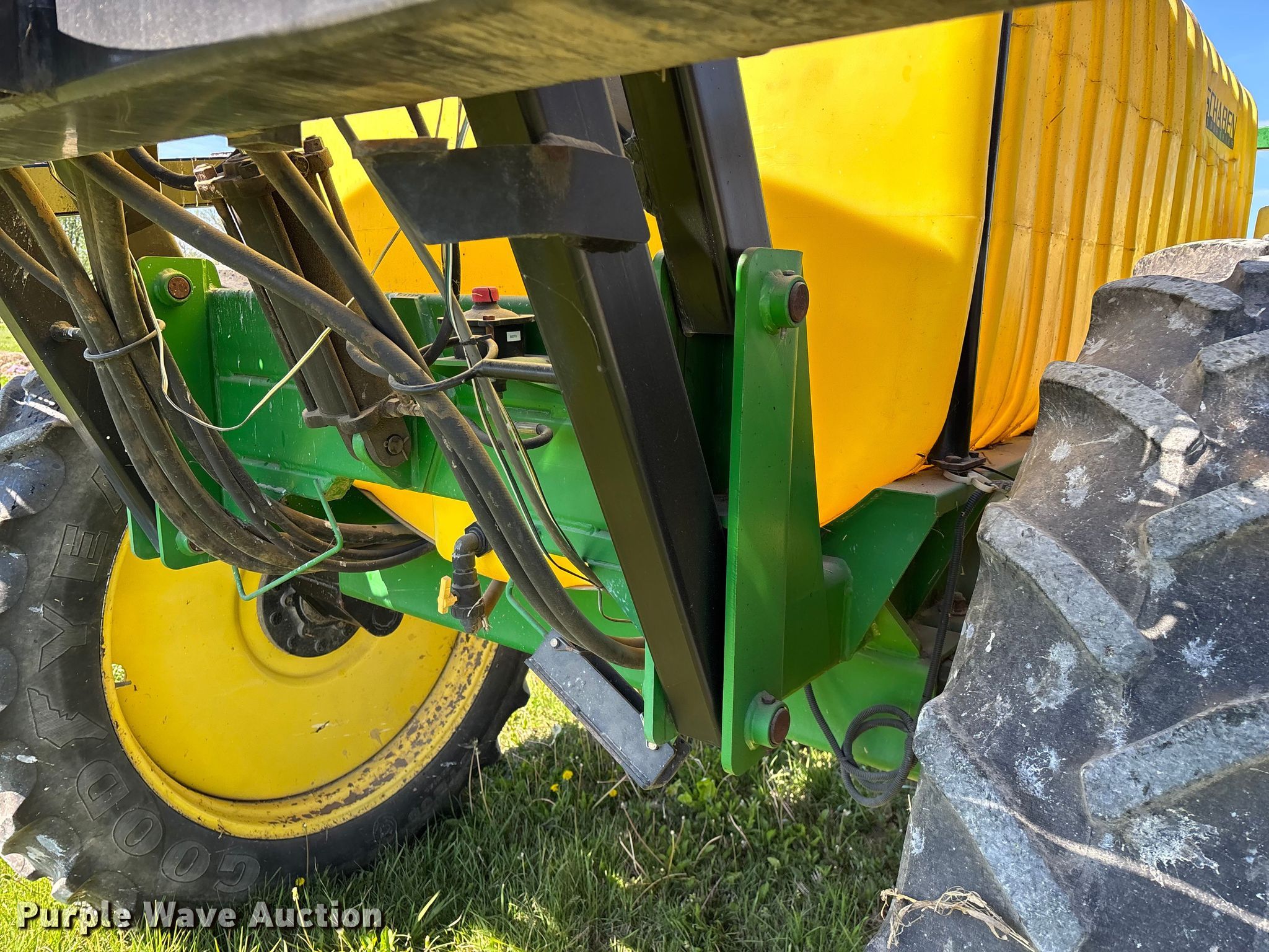 Schaben Industries SF-8500 sprayer. Serial: 100407. Features Transport lights, Solution tank Capacity: 1,250 gallons, Type: Poly, Chemical eductor Type: Poly, Rinse tank Capacity: 90 gallons, Clean water tank, Boom Width: 80', Sections: 4, Boom breakaway, Hydraulic fold, Hydraulic height control, Nozzles Spacing: 15", Make: TeeJet, Nozzle bodies: Single, Electronics Rate controller Green Star.. Tires Size: 320/90R46, Row crop tires. Notes Tractor not included, Additional spray tips, Contents not included, Hydraulic cylinder issues, leaks. Bill Garrett. Golden City, MO 64748