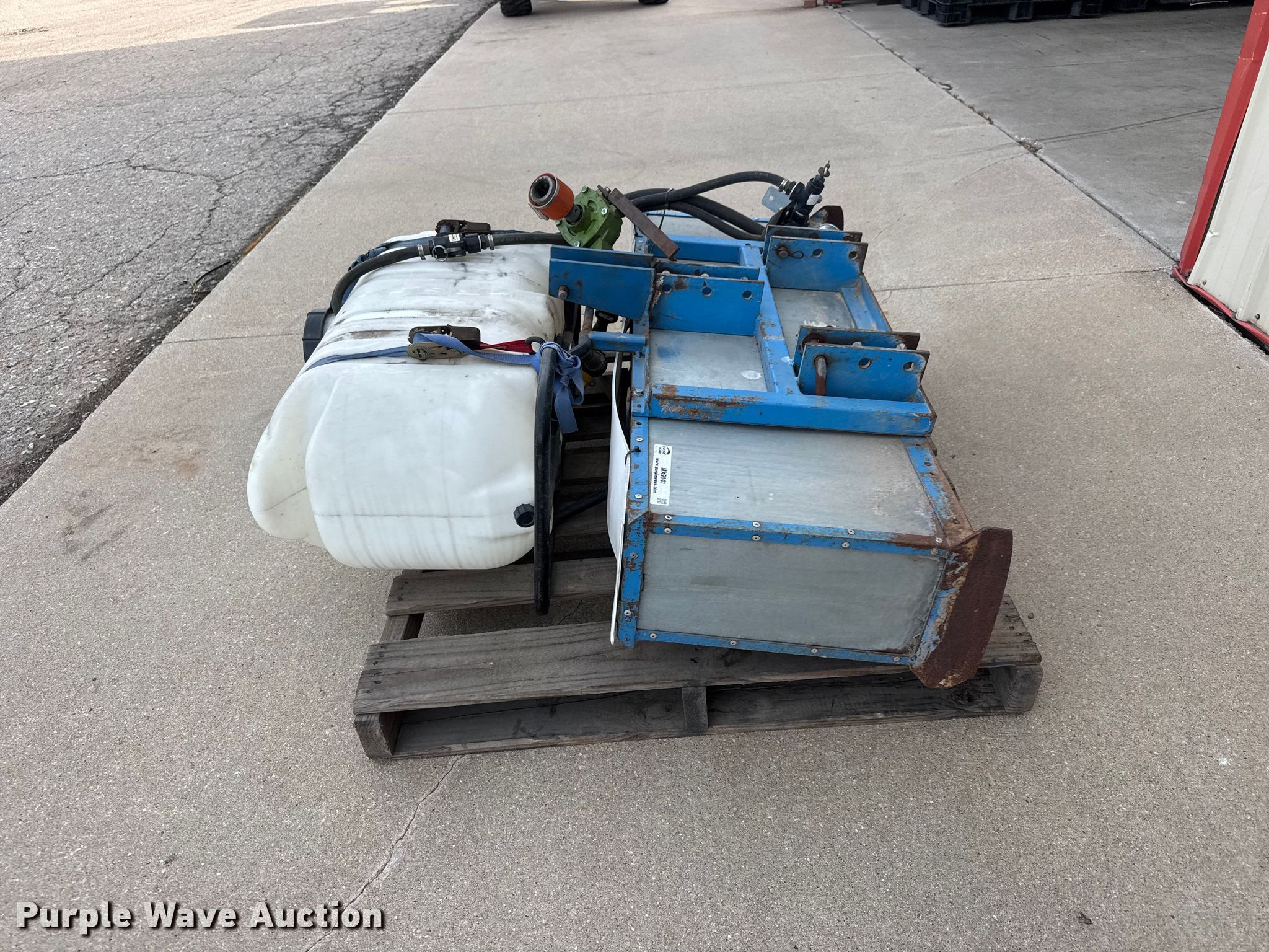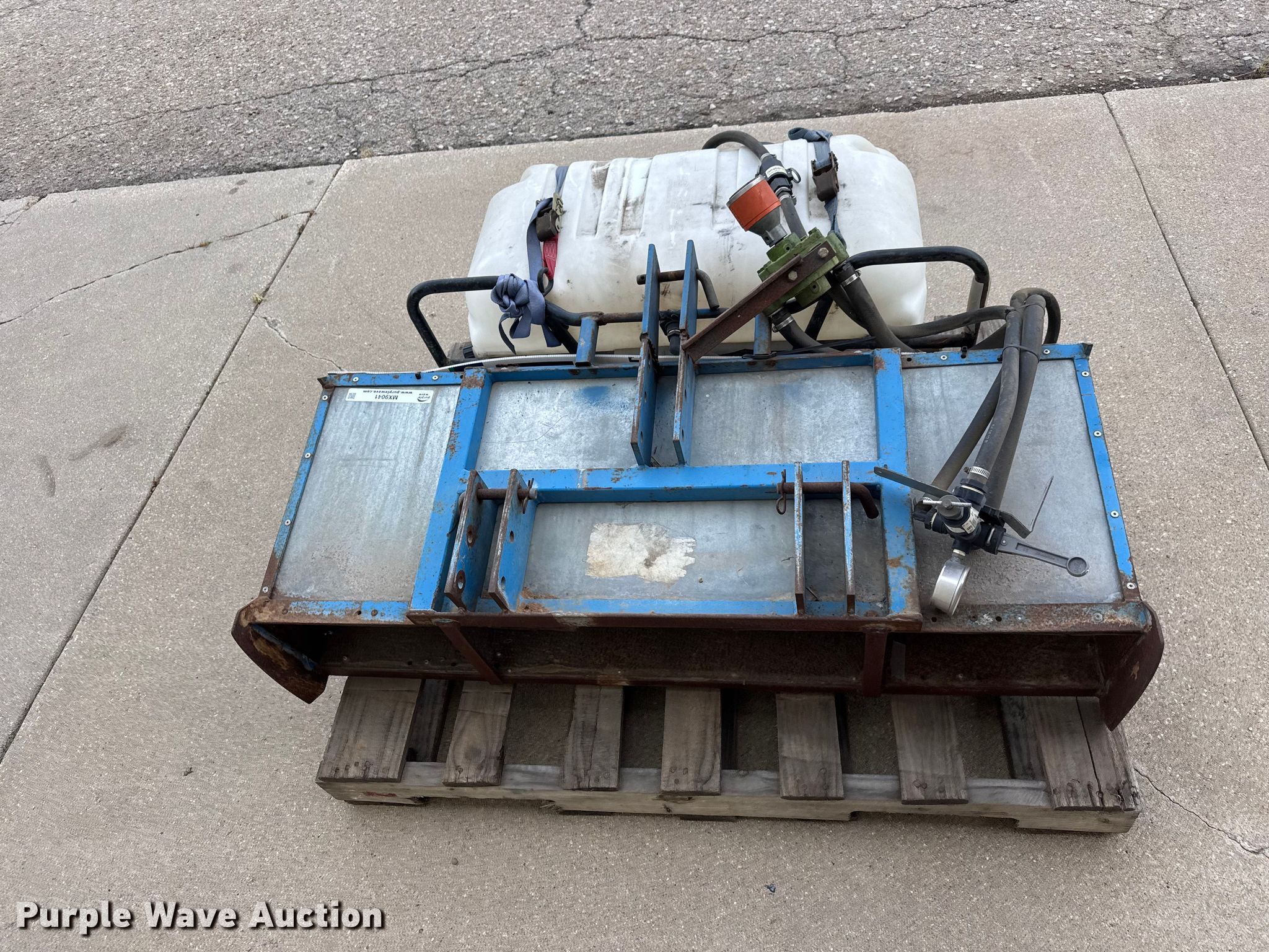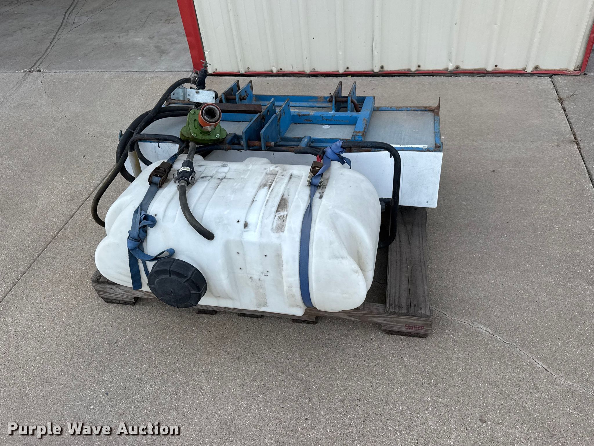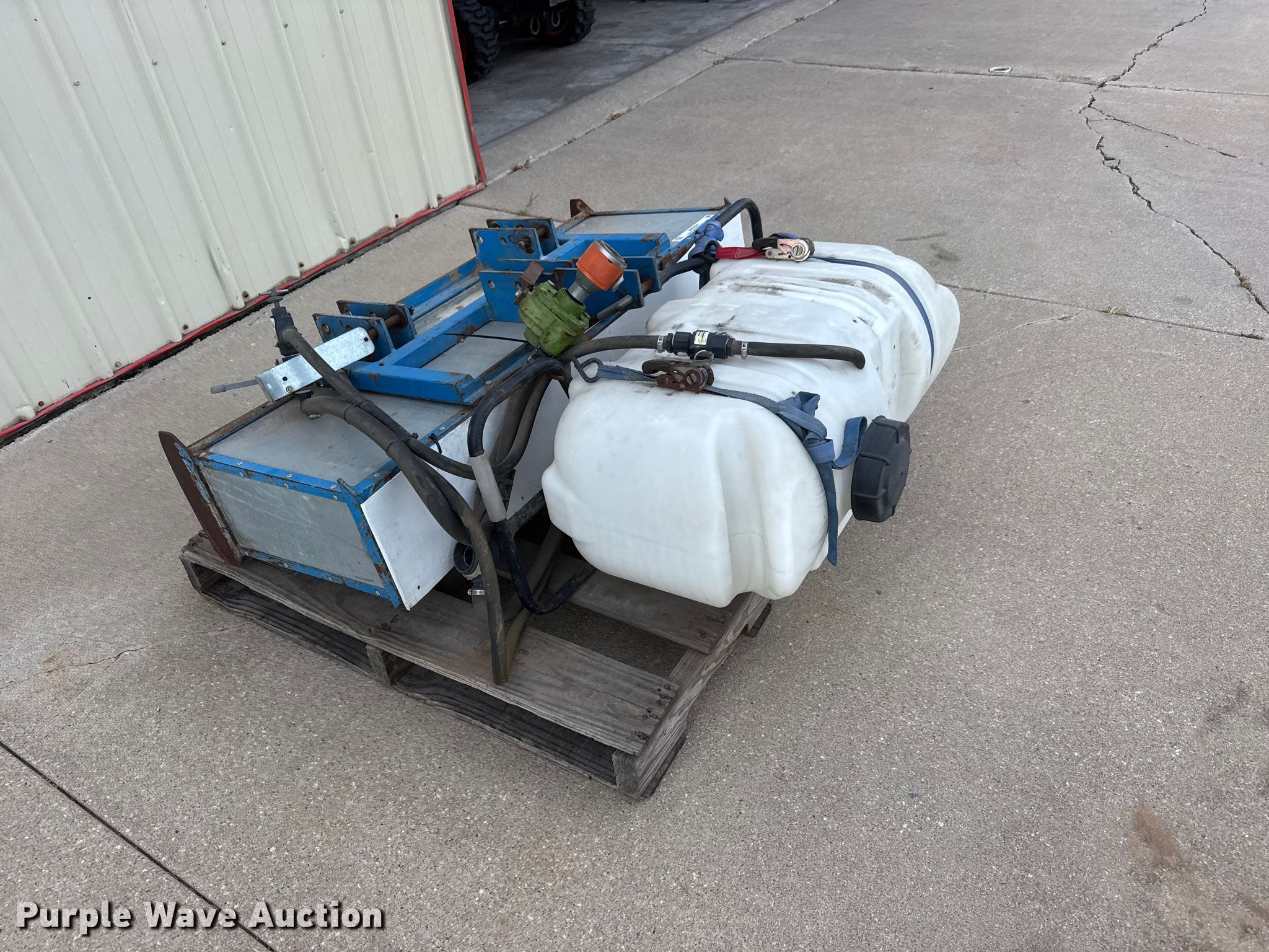 Purple Wave is selling a used Applicator Attach. in Kansas. This item is a Shop built sprayer with the following: Delavan model 66-5110 roller pump, Poly tank, Capacity: 24 gallons,, Spray box, Width: 48", Nozzle spacing: 16", Hitch: Three point