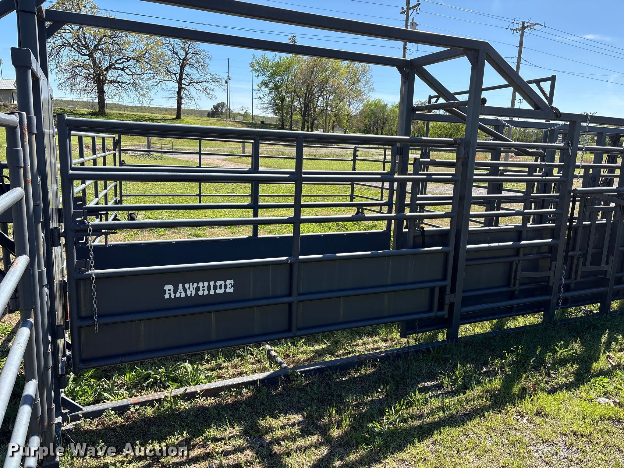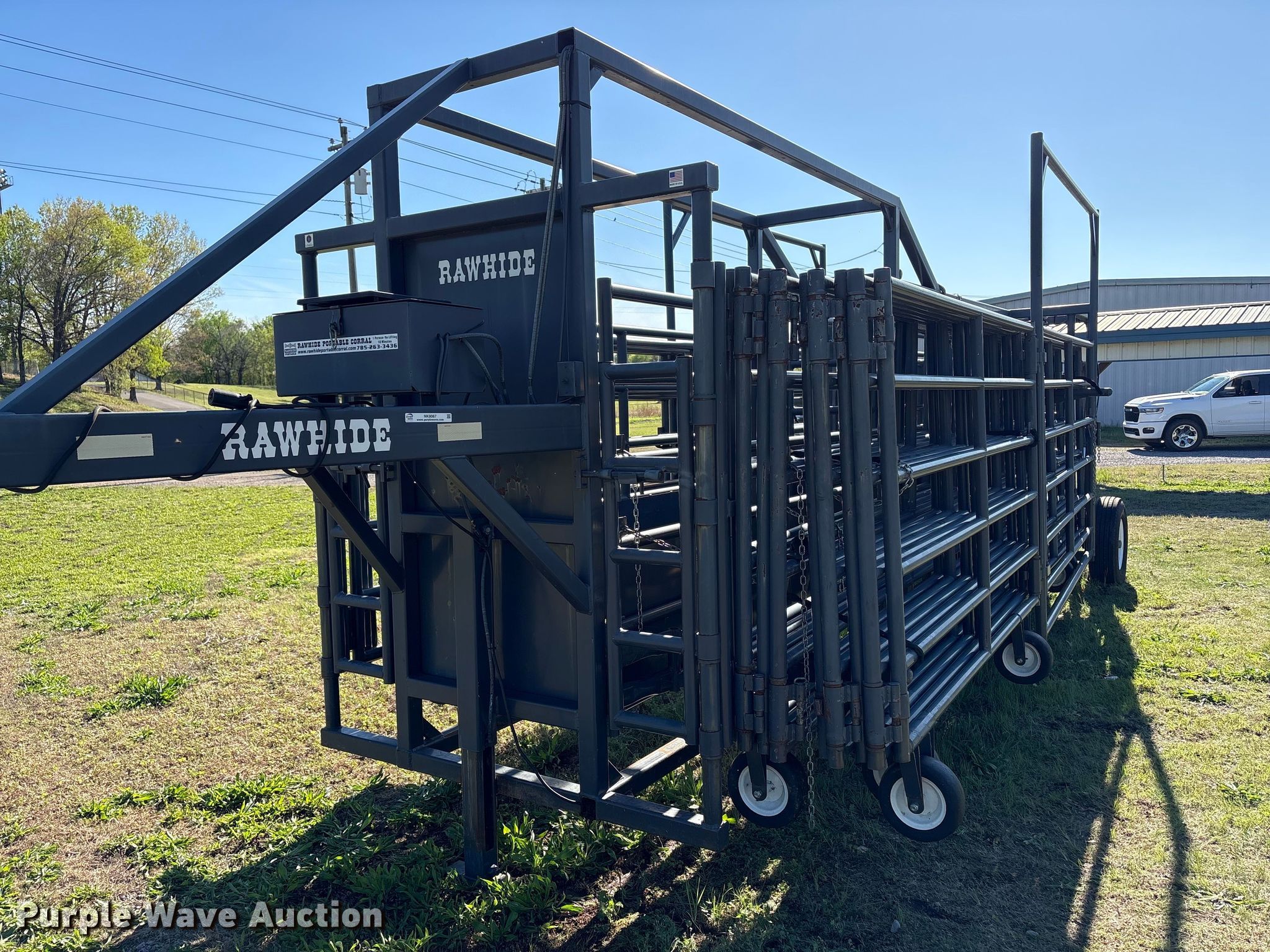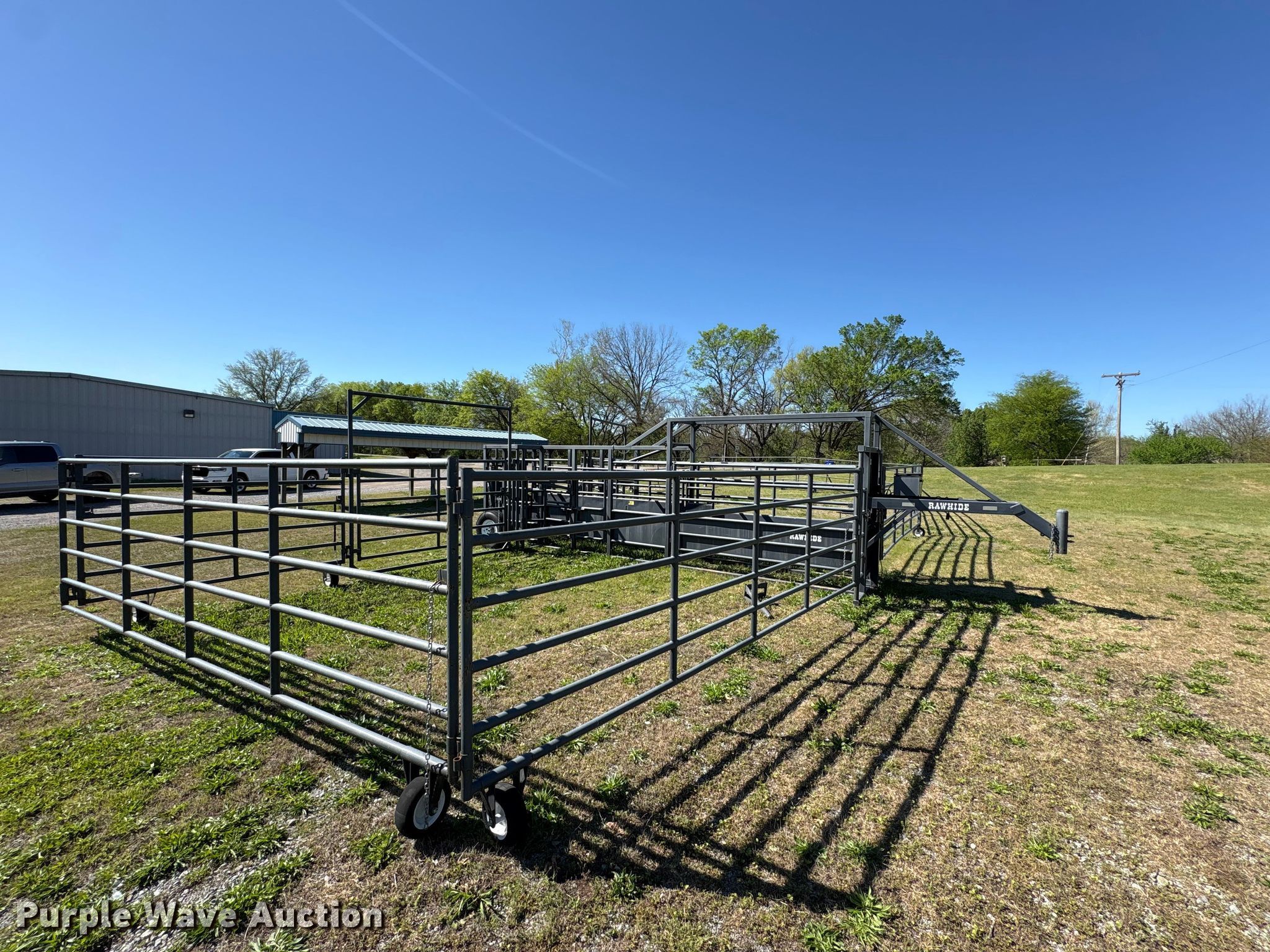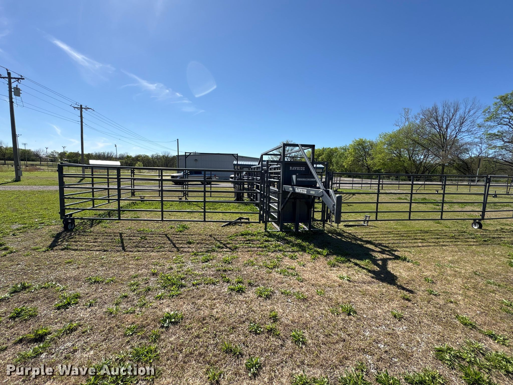 Purple Wave is selling a used Livestock Equip. in Oklahoma. This item is a Rawhide portable corral with the following: Serial: 018910