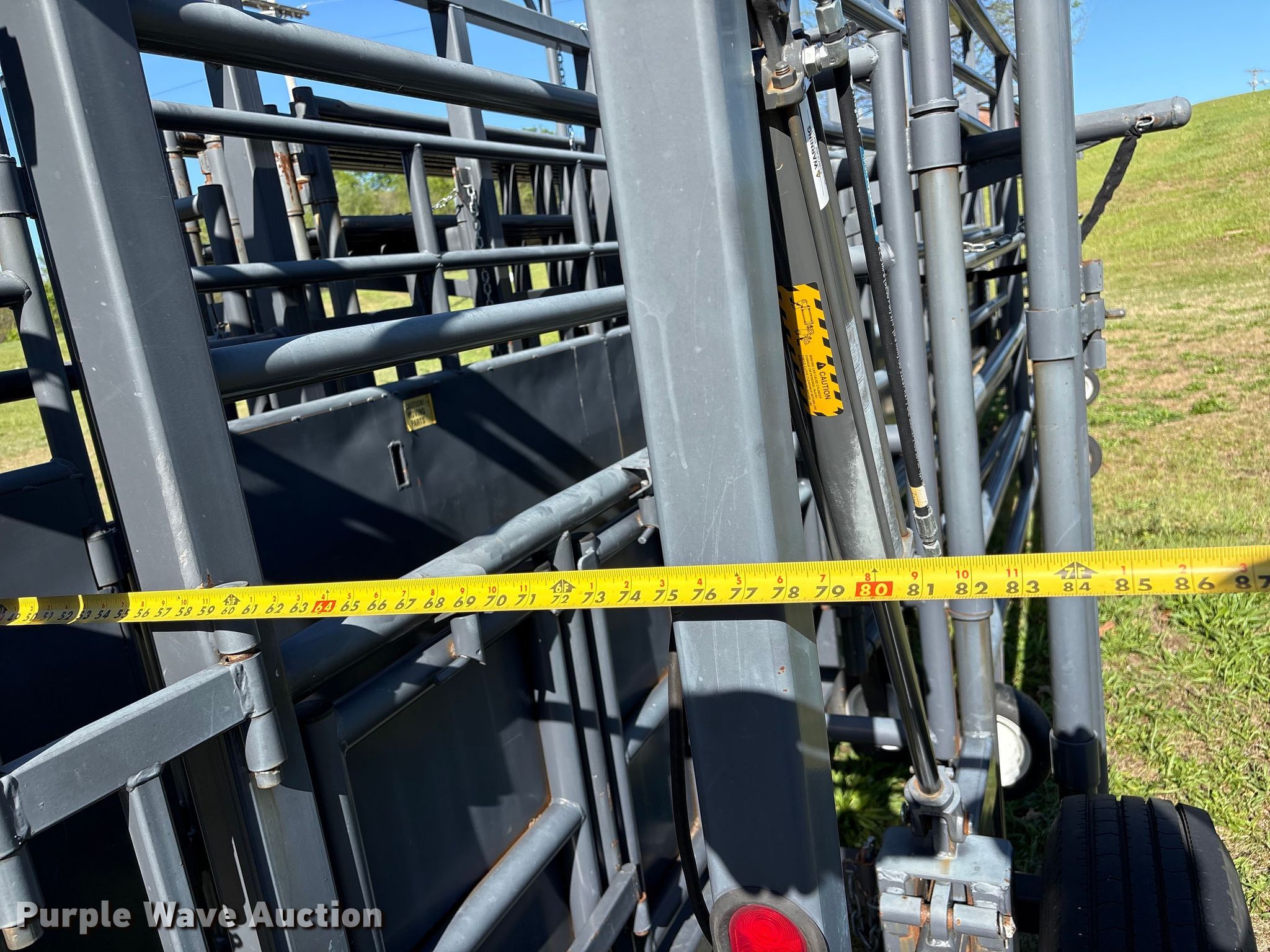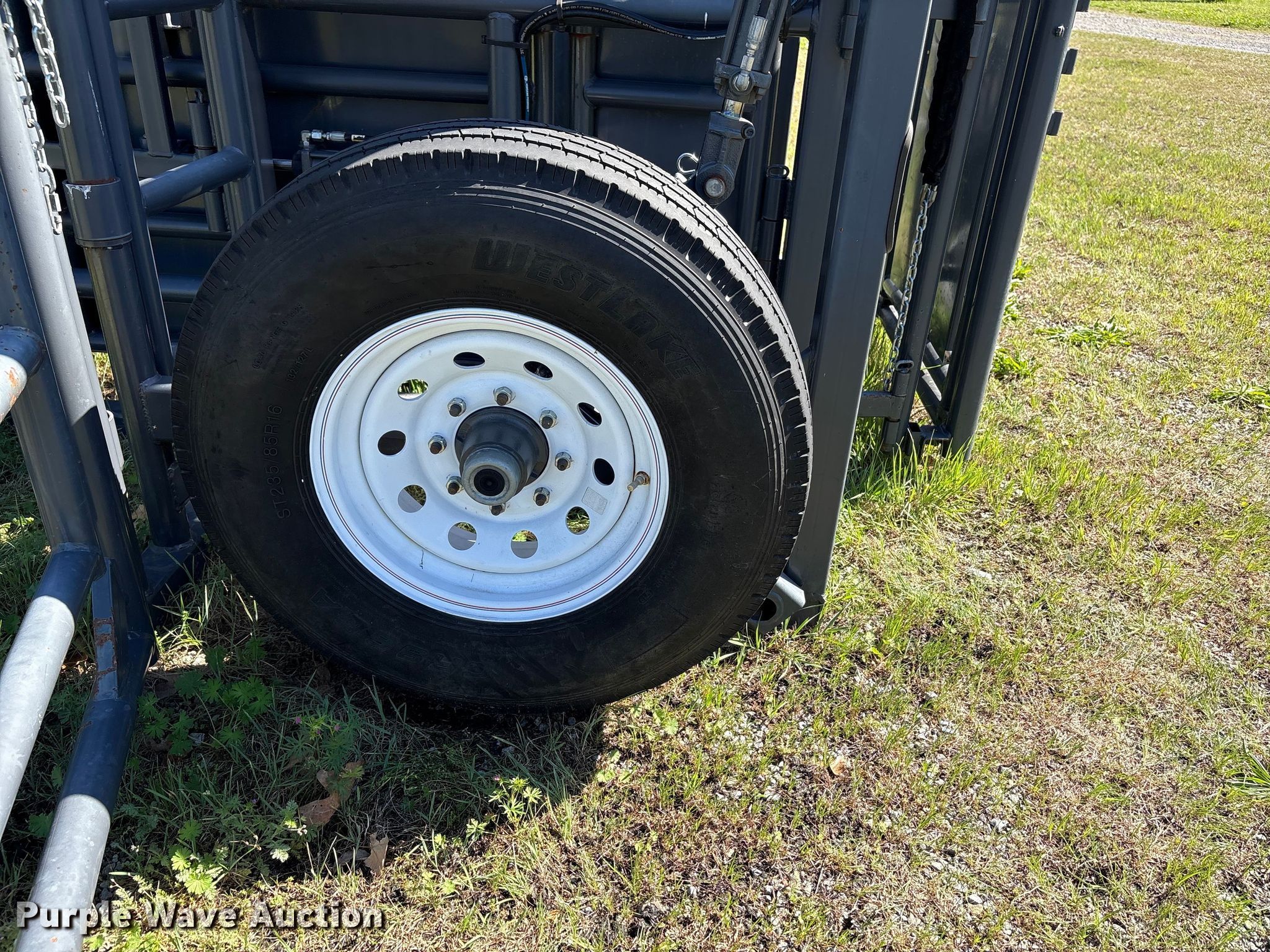 Rawhide portable corral. Serial: 018910. Dimensions Overall Length: 31', Width: 92", Height: 10' 6". Features Hitch: Gooseneck, Hydraulic pump. Tires Front: 235/85R16. Transfer of ownership documentation will be a bill of sale. Triple J Equipment. Hulbert, OK 74441