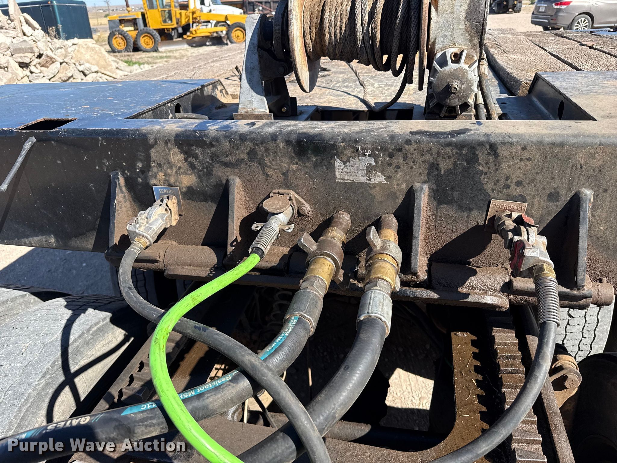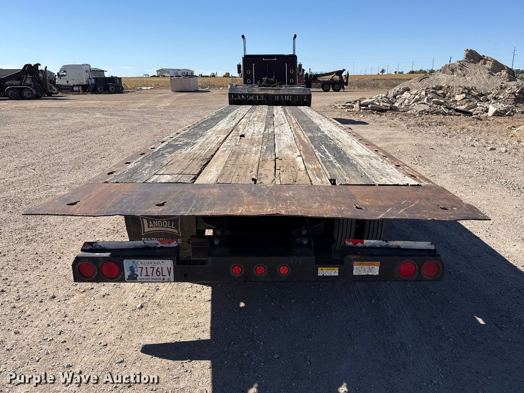2001 Landoll 660B drop tilt deck equipment trailer. VIN: 1LH660UH111B11842. Dimensions Overall Length: 48', Width: 102", Deck Length: 37' 6", Width: 102", Top deck length: 10' 6". Features Deck type: Wood, Neck type: Detachable, Winch Tulsa, Hydraulic controls: Manual. Chassis Landing gear: Dual, Suspension: Air, Brakes: Air, Axles: Tandem. Tires Steel wheels, Size: 10R17.5. Oklahoma title. Title distribution may be delayed up to 30 days from verification of funds. American Towing & Auto Sales, Inc.. Guymon, OK 73942