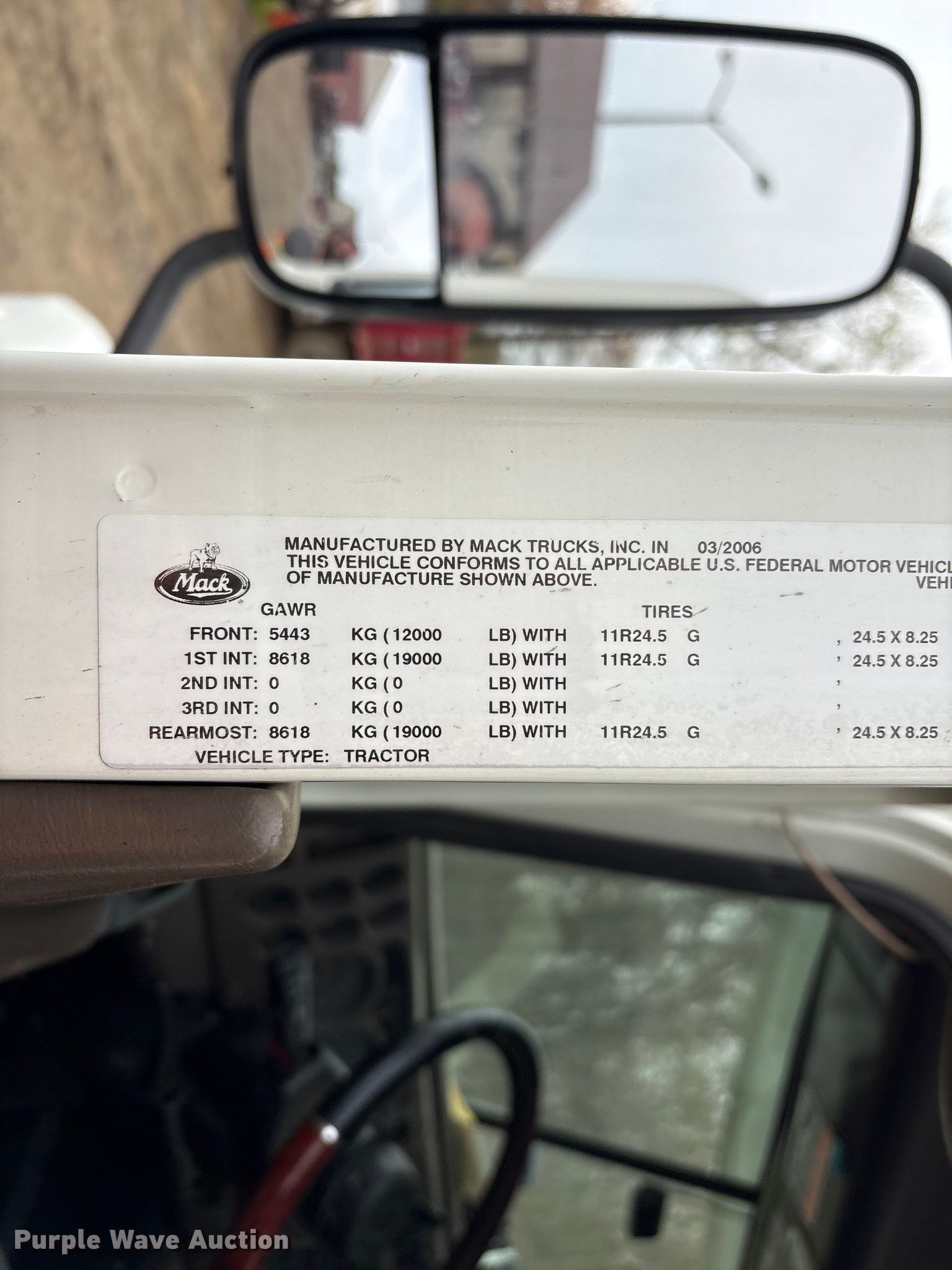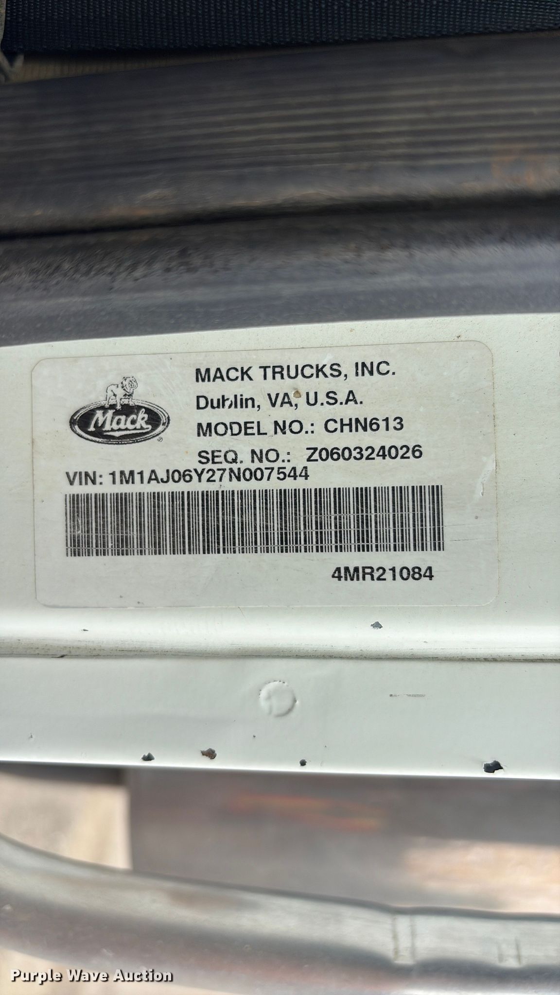 Take a look at this used 2007 Mack CHN613 semi truck being sold on May 14th, 2026 in the Thursday May 14 Truck and Trailer Auction made by Mack. Take a look at all of the item information below or take a look at similar auctions for Trucks.
