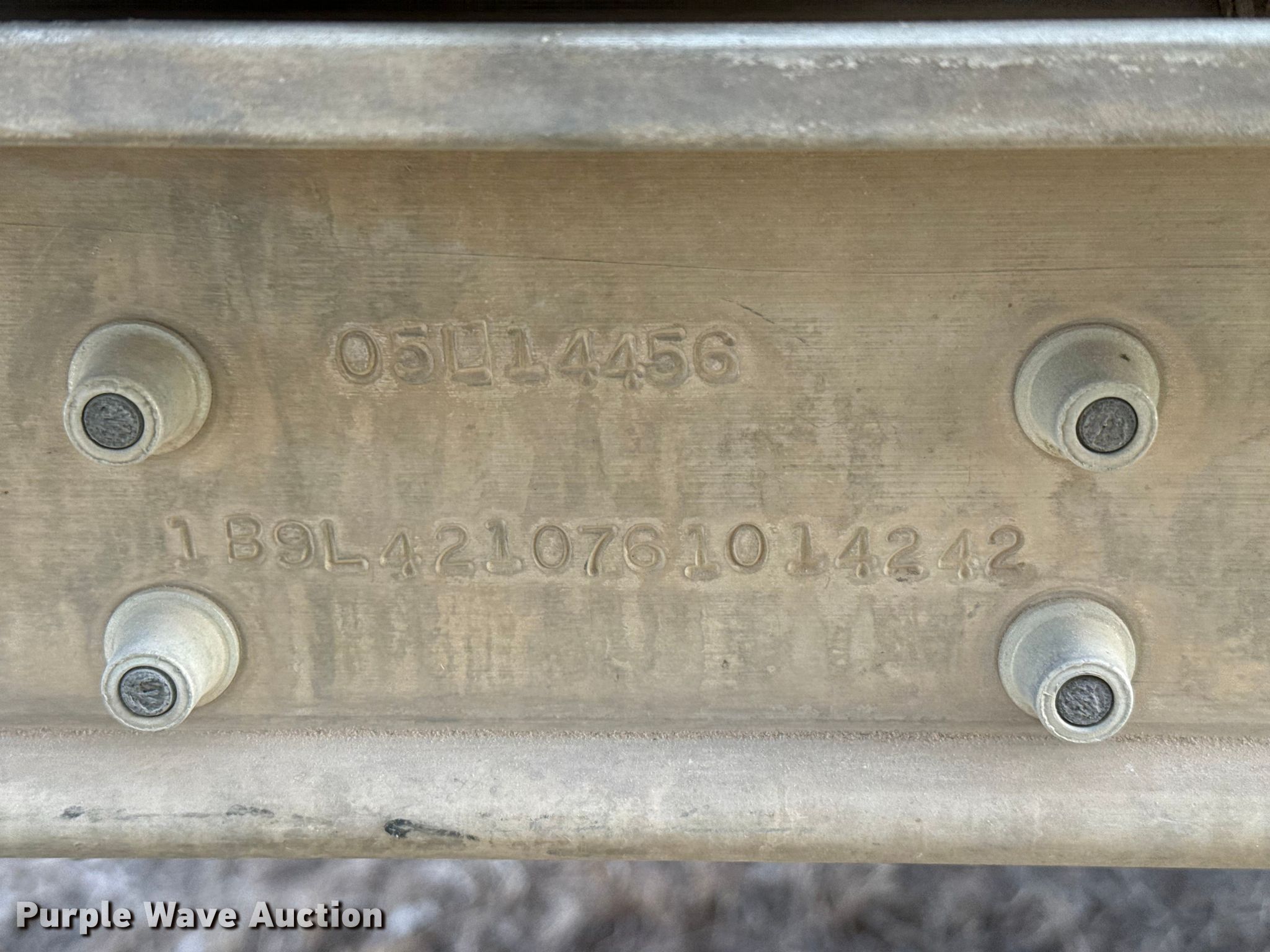 2006 Barrett livestock trailer. VIN: 1B9L4210761014242, Unit #: 4175. Dimensions Overall Length: 42', Width: 102". Features Center gates: 3, Ground load. Chassis Landing gear: Dual, Suspension: Air, Brakes: Air. Tires Steel wheels, Size: 255/70R22.5. Transfer of ownership documentation will be a bill of sale. Seaboard Foods. Optima, OK 73945