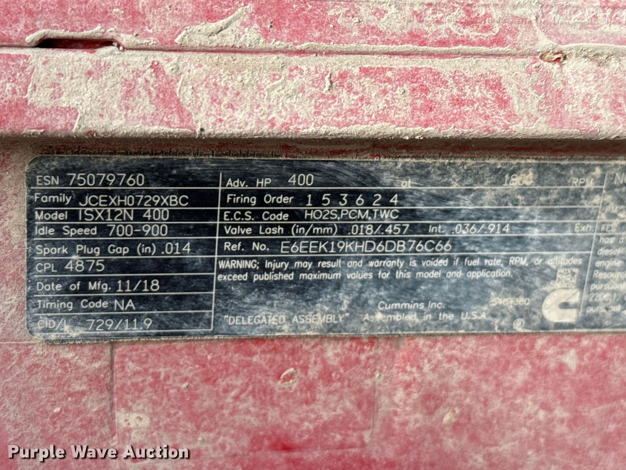2019 Kenworth T880 box truck. Miles: 224,968 on odometer, VIN: 1NKZL39X8KJ289172, Unit #: 18902. Engine Cummins ISX12N 400, Serial: 75079760, Displacement: 11.9L, Cylinders: 6, Fuel type: CNG, HP: 400. Transmission Automated manual. Chassis Axles: Tandem, Suspension: Air, Brakes: Air. Interior AC, Heat, Power windows, Power locks, Cruise control. Features Bed Box bed, Length: 25' 6", Width: 101", E-track rail system, Floor: Wood, End gate lift Maxon.. Tires Size: 11R22.5. Titles will be distributed after confirmation of payment and removal. Oklahoma title. Title distribution may be delayed up to 30 days from verification of funds. Seaboard Foods. Optima, OK 73945