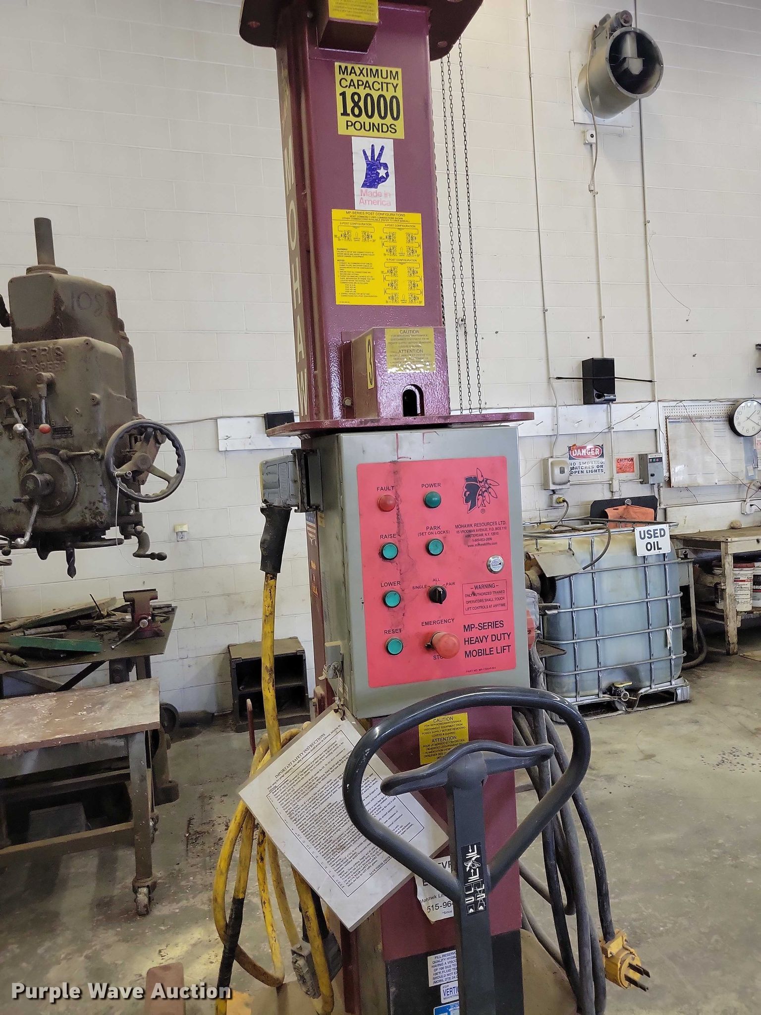 Purple Wave is selling a used Tools in Iowa. This item is a Mohawk MP18006 four post lift with the following: Serial: A6F186