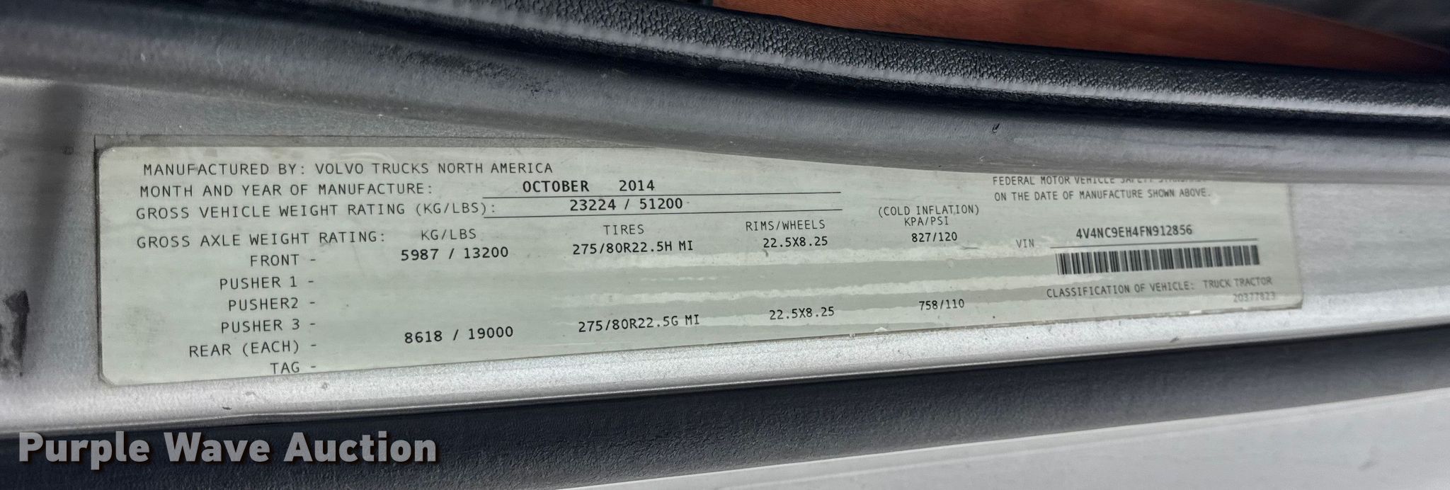Purple Wave is selling a used Truck Tractor in Illinois. This item is a 2015 Volvo VNL semi truck with the following: Miles: Unknown, VIN: 4V4NC9EH4FN912856