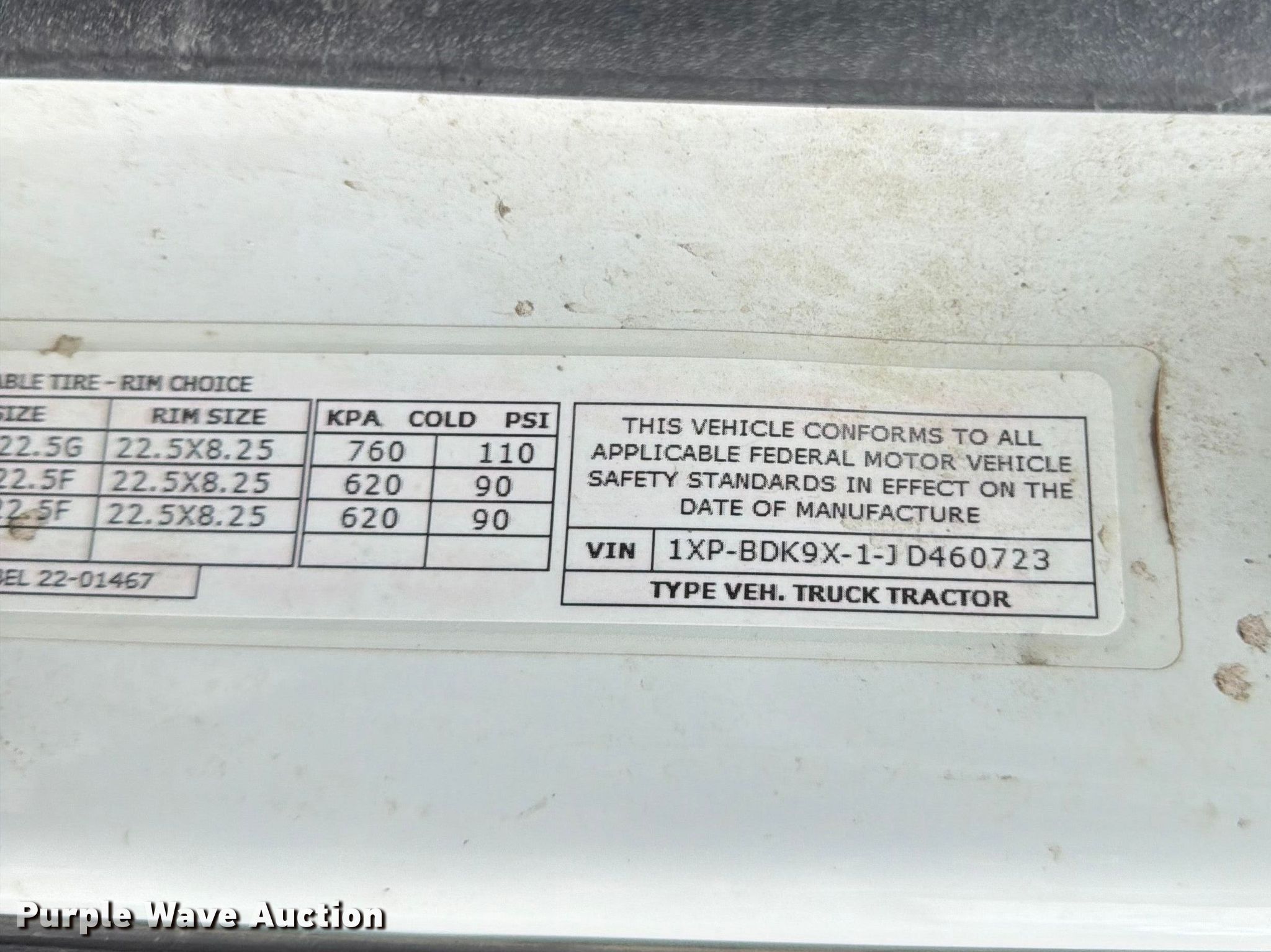 Purple Wave is selling a used Truck Tractor in Kentucky. This item is a 2018 Peterbilt 579 semi truck with the following: Miles: 395,823 on odometer, Hours: 16,368 on meter, VIN: 1XPBDK9X1JD460723