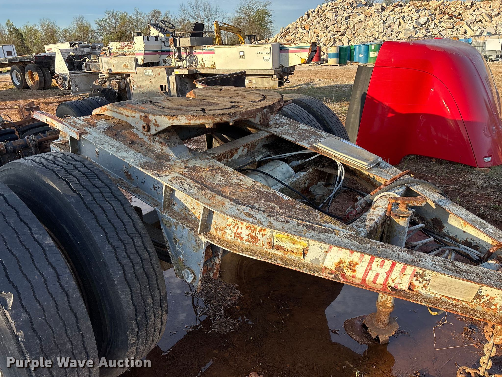 Fruehauf EL-FL1 trailer dolly. VIN: 1H2E00614EC014065. Chassis Hitch: Pintle, Landing gear: Single, Suspension: Spring, Brakes: Air, GVWR: 20,000 lbs, GAWR: 20,000 lbs. Tires Steel wheels, Size: 11R22.5. Notes Tires flat, Tires damaged. Transfer of ownership documentation will be a bill of sale. Advanced Concrete Technologies, Inc. Springfield, MO 65803