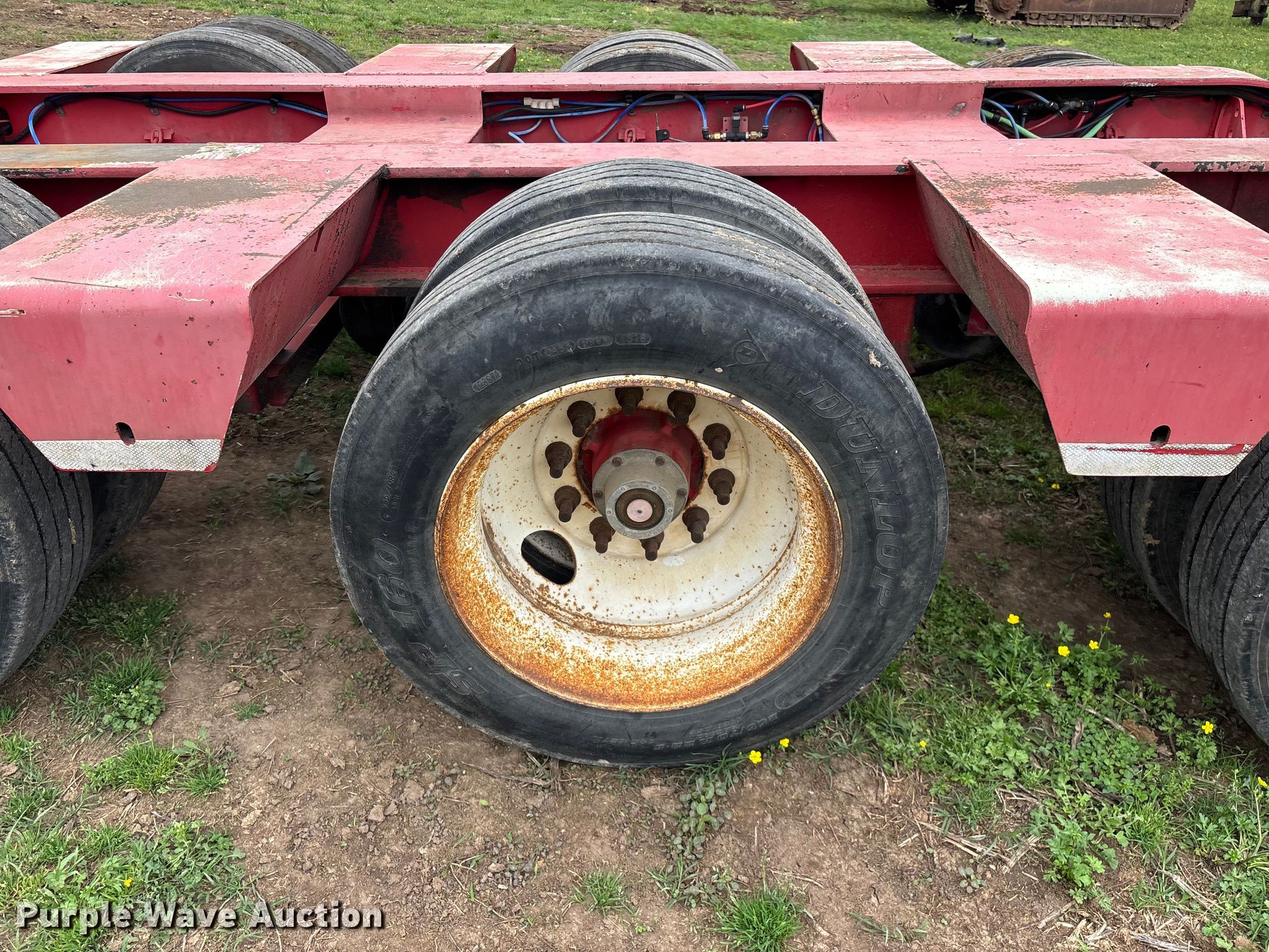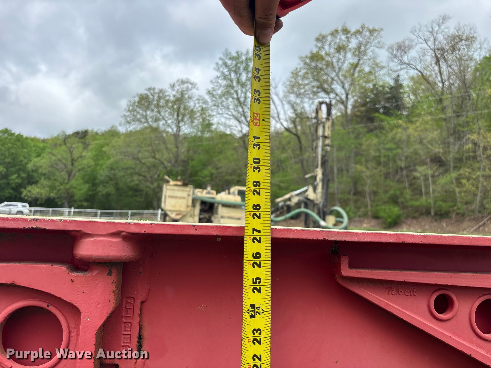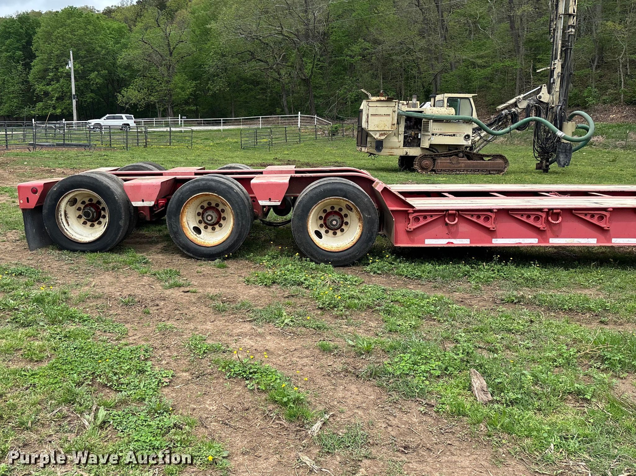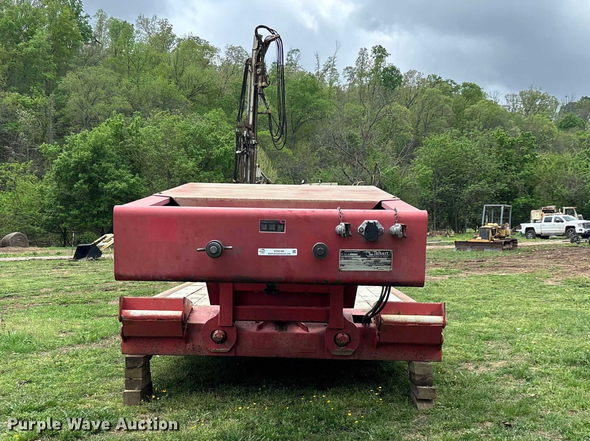 2001 Talbert lowboy equipment trailer. VIN: 40FS0513611020194. Dimensions Overall Length: 51' 2", Width: 102", Deck Length: 24' 5", Width: 102", Deck height: 28", Ramps: Manual Length: 12". Features Deck type: Wood, Outriggers: Swing-out Board size: 12", Neck type: Detachable, Hydraulic controls: Manual. Chassis Suspension: Air, Brakes: Air, Axles: Triple, GVWR: 121,310 lbs, GAWR: 20,280 lbs. Tires Steel wheels, Size: 255/70R22.5. Notes Flat tire. Arkansas title. Title distribution may be delayed up to 14 days from verification of funds. Sams Drilling Service Inc. Seligman, MO 65745