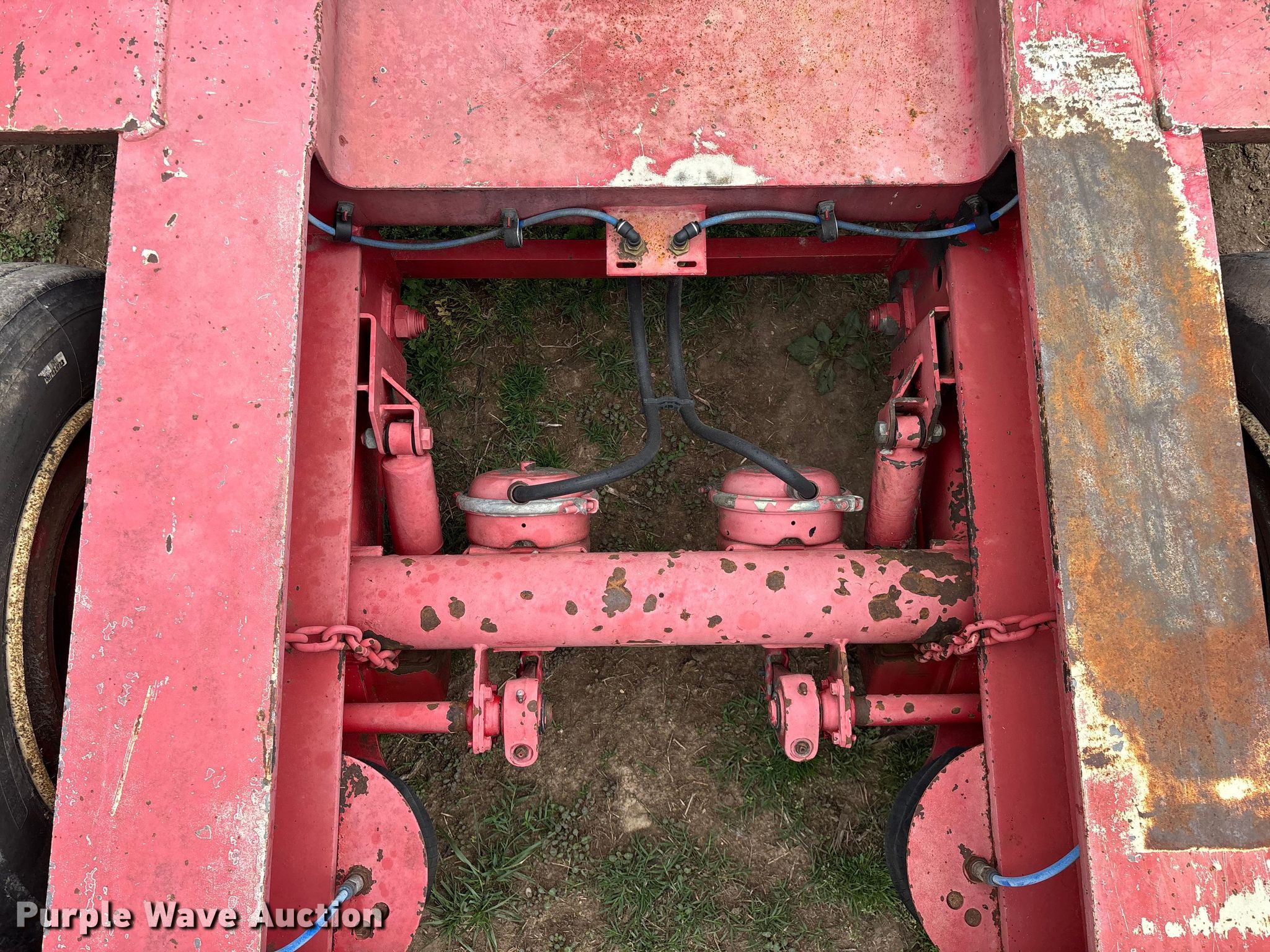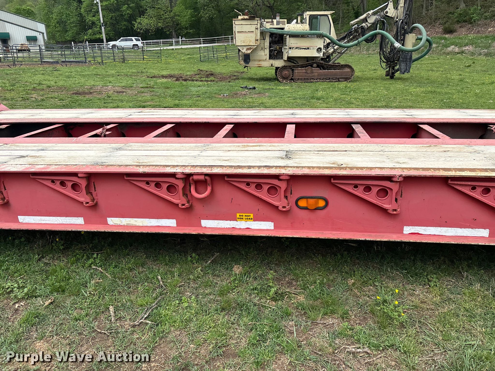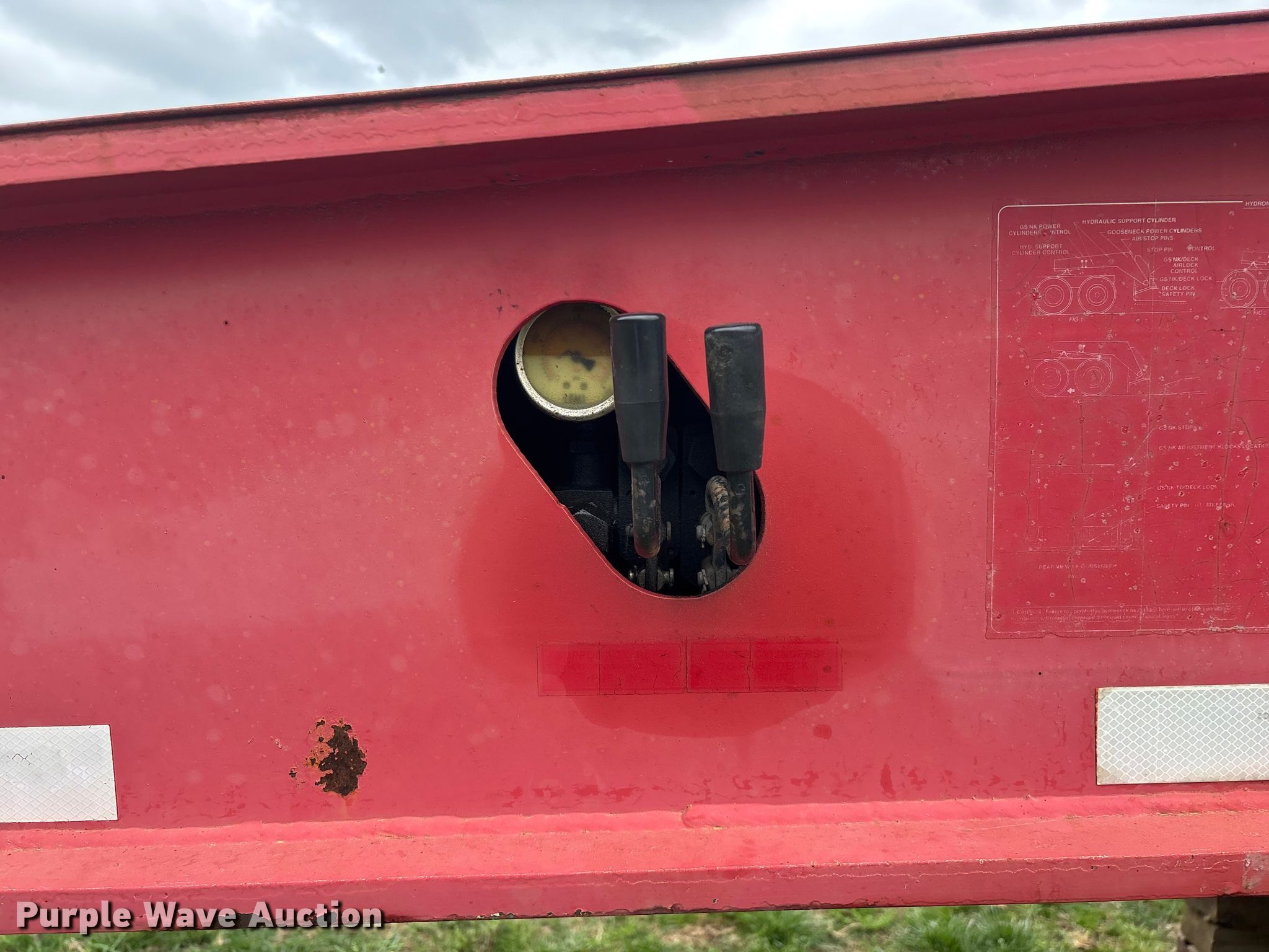2001 Talbert lowboy equipment trailer. VIN: 40FS0513611020194. Dimensions Overall Length: 51' 2", Width: 102", Deck Length: 24' 5", Width: 102", Deck height: 28", Ramps: Manual Length: 12". Features Deck type: Wood, Outriggers: Swing-out Board size: 12", Neck type: Detachable, Hydraulic controls: Manual. Chassis Suspension: Air, Brakes: Air, Axles: Triple, GVWR: 121,310 lbs, GAWR: 20,280 lbs. Tires Steel wheels, Size: 255/70R22.5. Notes Flat tire. Arkansas title. Title distribution may be delayed up to 14 days from verification of funds. Sams Drilling Service Inc. Seligman, MO 65745