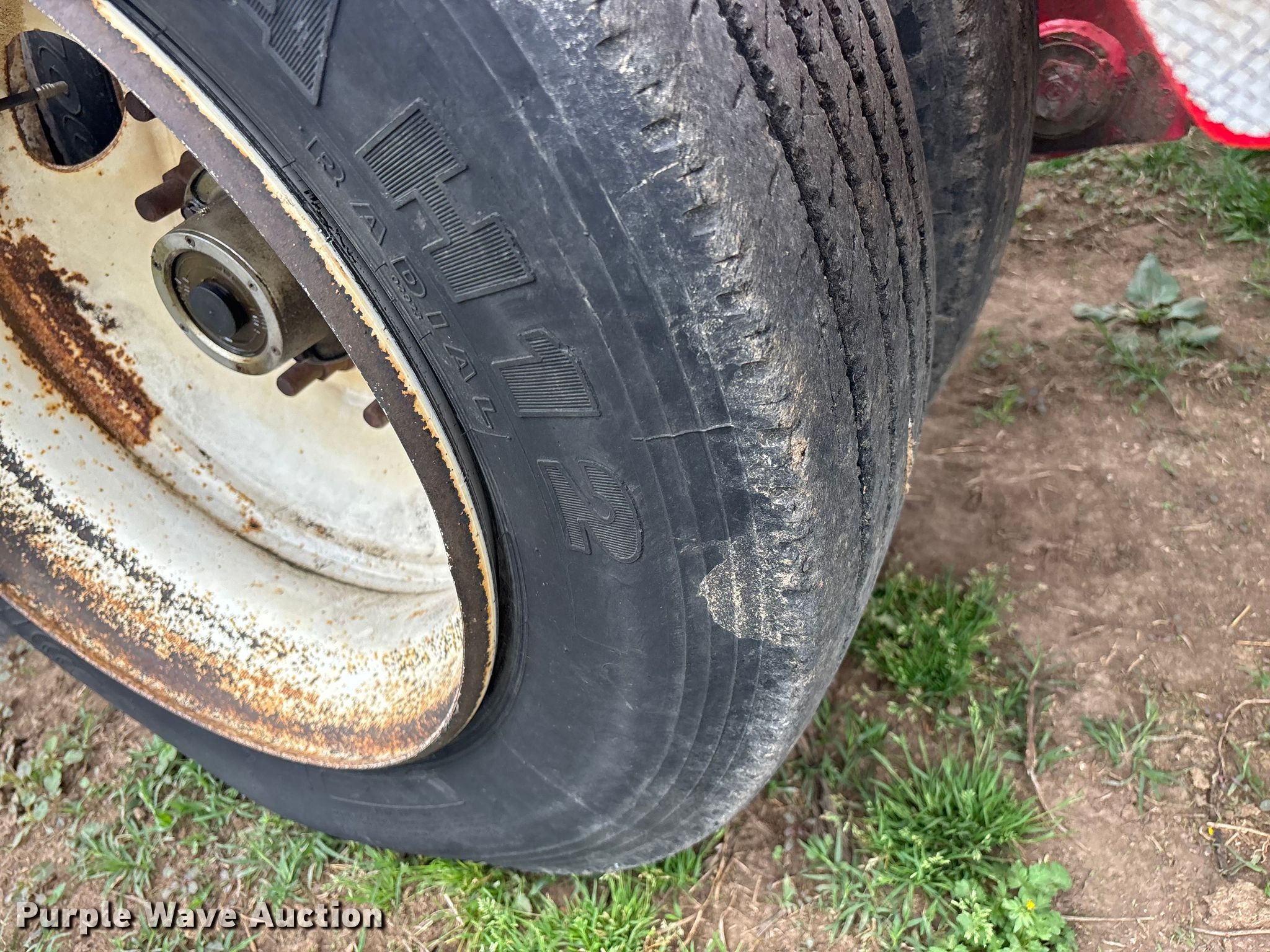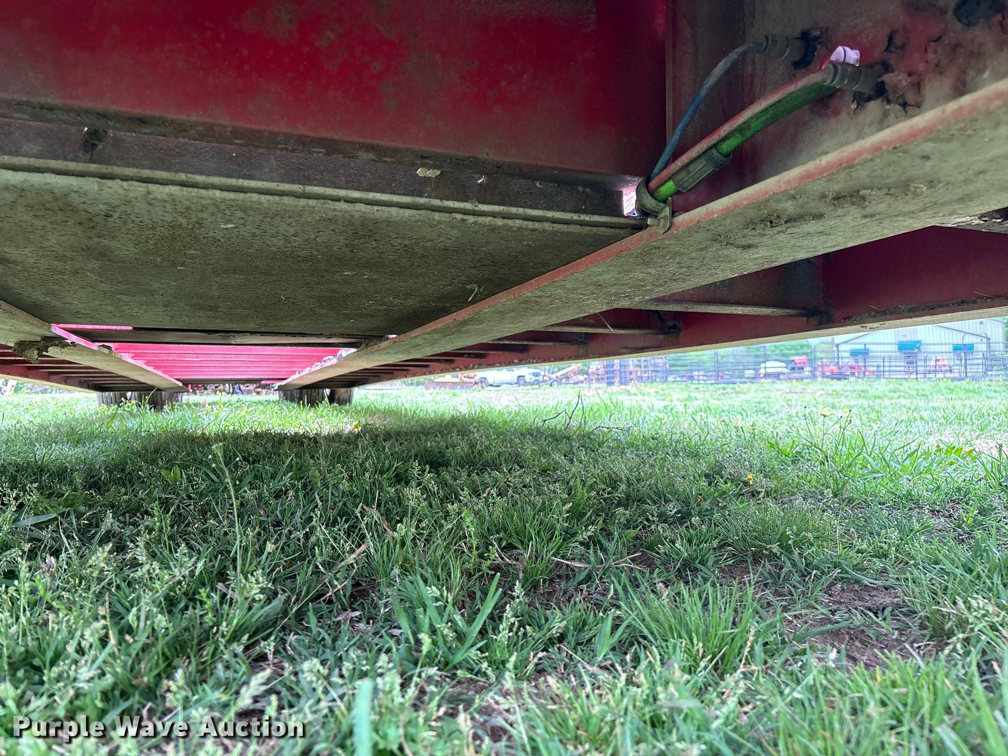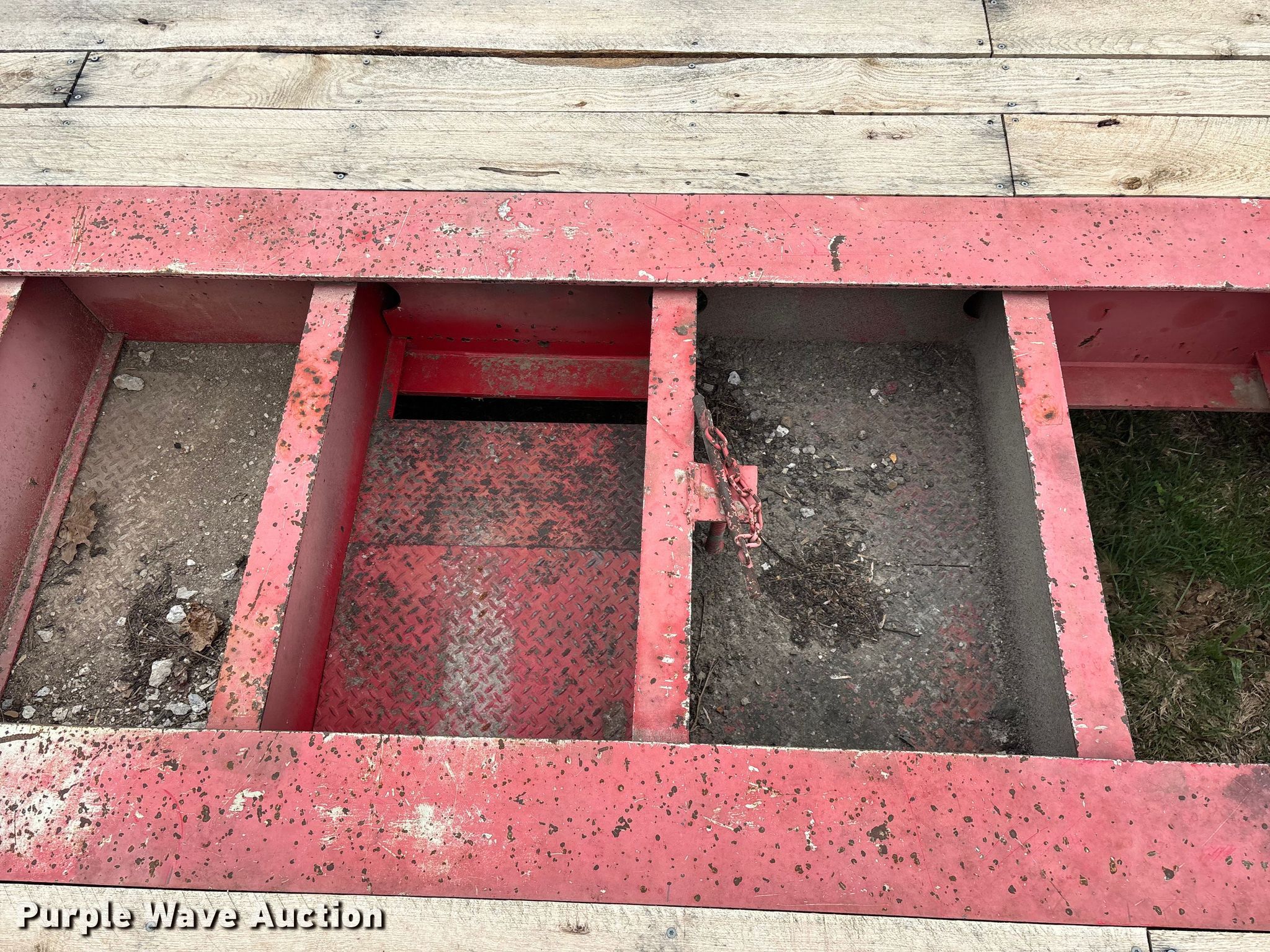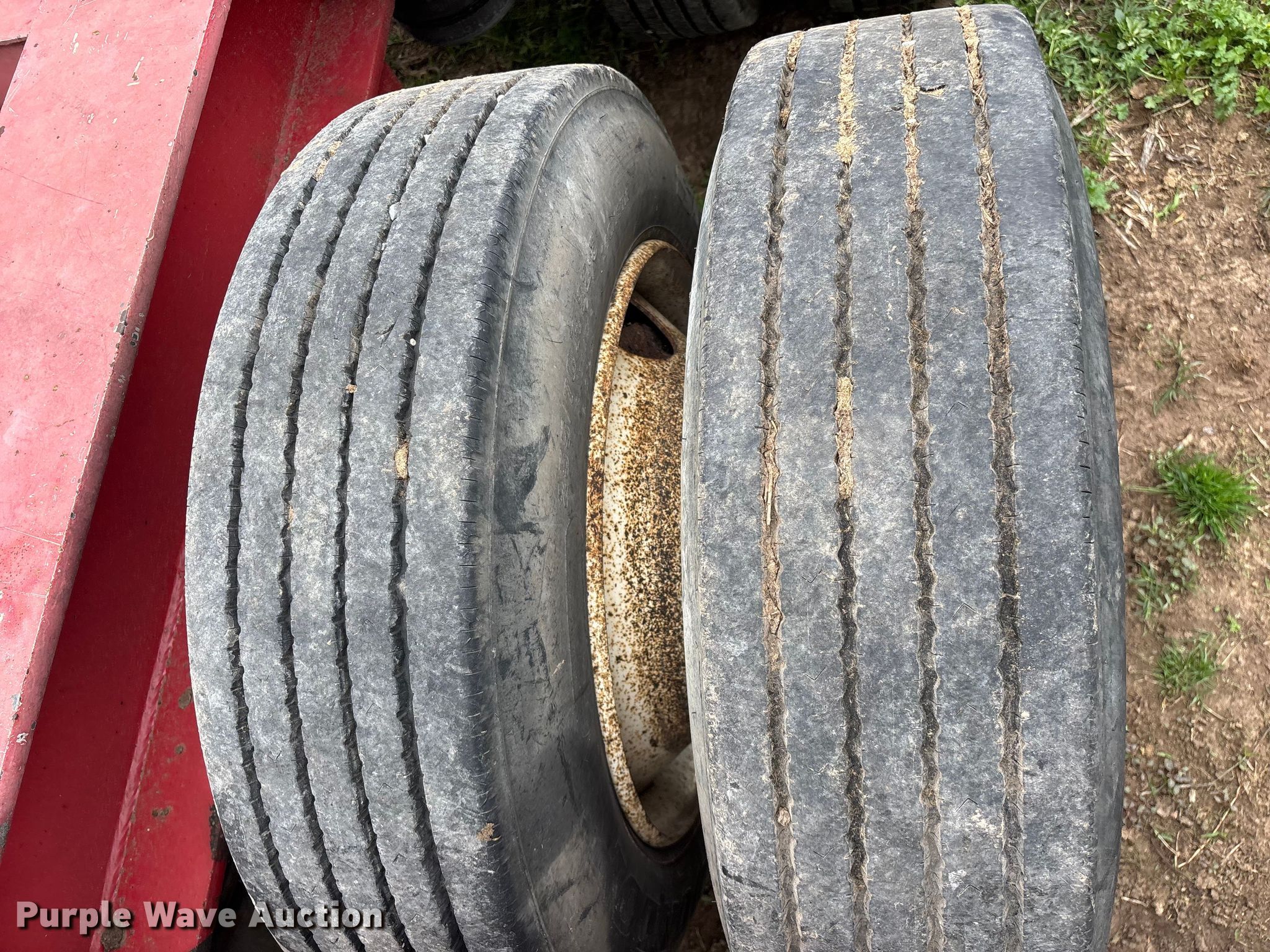 2001 Talbert lowboy equipment trailer. VIN: 40FS0513611020194. Dimensions Overall Length: 51' 2", Width: 102", Deck Length: 24' 5", Width: 102", Deck height: 28", Ramps: Manual Length: 12". Features Deck type: Wood, Outriggers: Swing-out Board size: 12", Neck type: Detachable, Hydraulic controls: Manual. Chassis Suspension: Air, Brakes: Air, Axles: Triple, GVWR: 121,310 lbs, GAWR: 20,280 lbs. Tires Steel wheels, Size: 255/70R22.5. Notes Flat tire. Arkansas title. Title distribution may be delayed up to 14 days from verification of funds. Sams Drilling Service Inc. Seligman, MO 65745