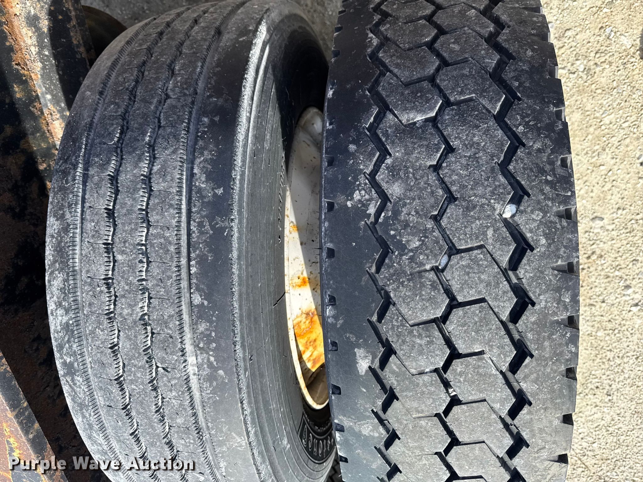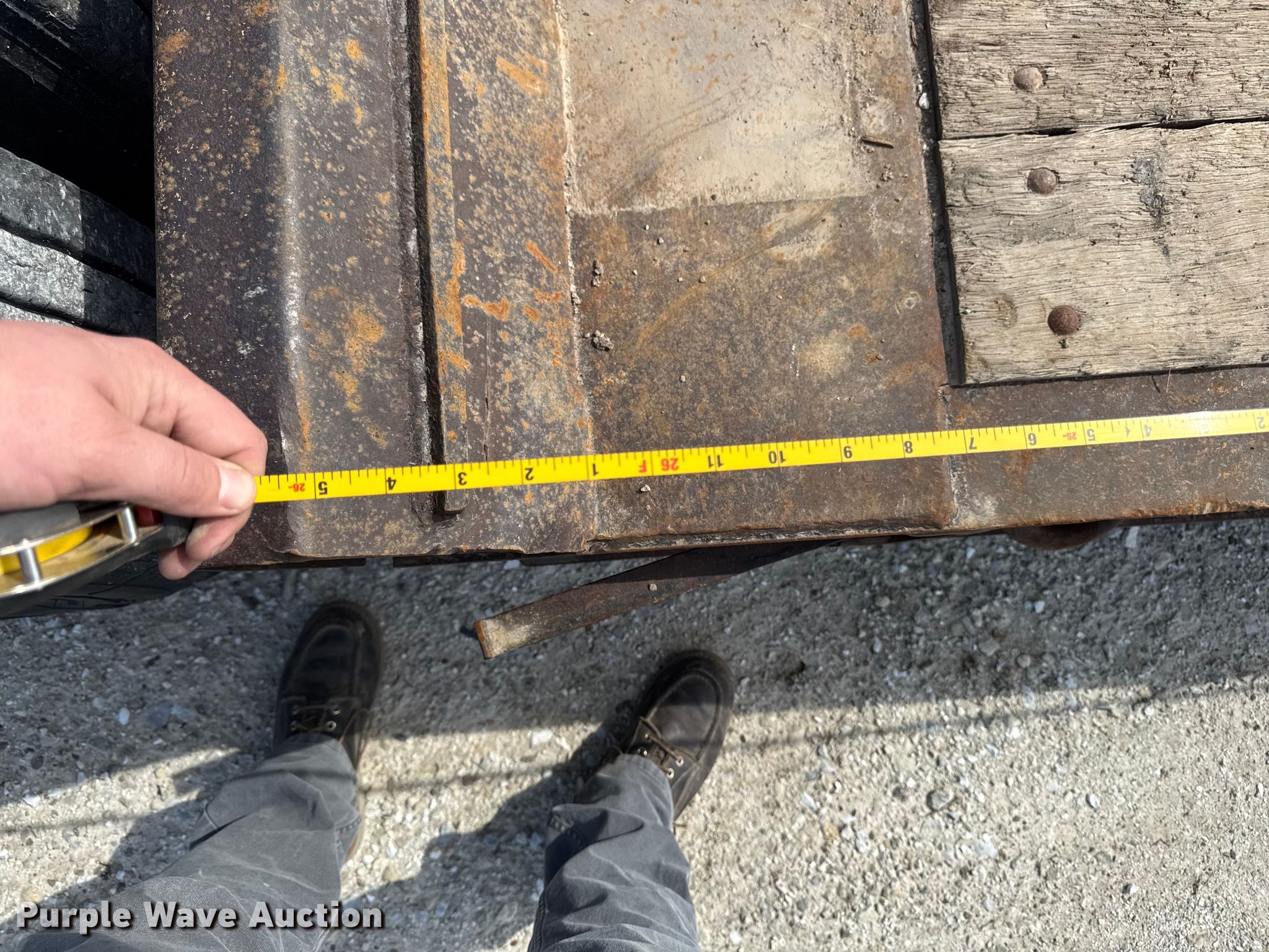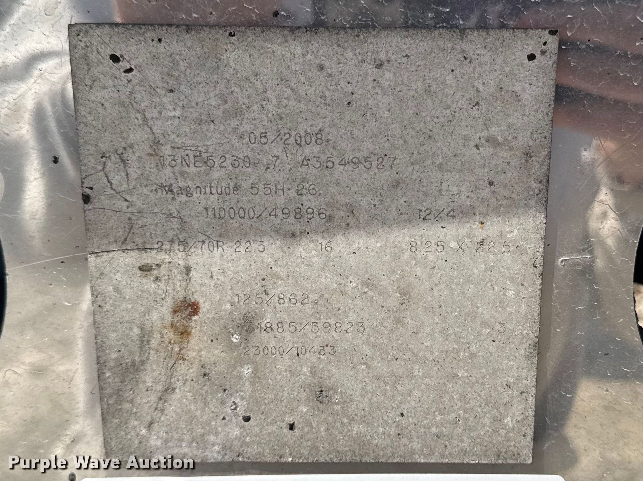 2010 Fountain Magnitude 55H 26 lowboy equipment trailer. VIN: 13NE52307A3549527. Dimensions Overall Length: 58' 6", Width: 102", Deck Length: 26', Width: 102", Rear deck length: 18' 6". Features Deck type: Steel, Wood, Outriggers: Swing-out Board size: 12", Neck type: Detachable, Hydraulic controls: Manual. Chassis Suspension: Air, Brakes: Air, Axles: Quad Detachable tag, GVWR: 110,000 lbs. Tires Aluminum wheels, Size: 275/70R22.5. Iowa title. Title distribution may be delayed up to 14 days from verification of funds. Straitline Transportation. Biggsville, IL 61418