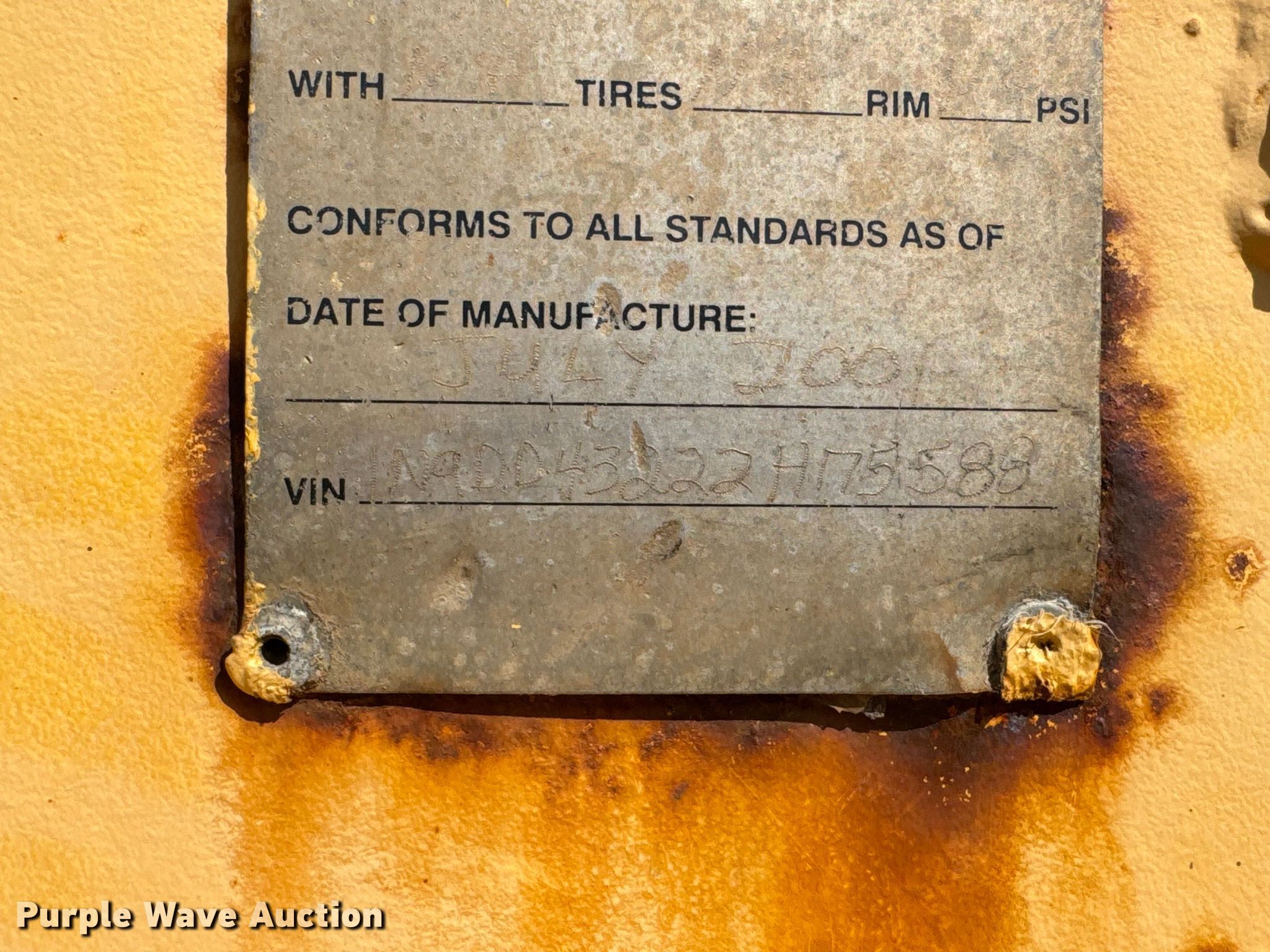 This 2002 Neville Built drop deck equipment trailer will sell to the highest bidder regardless of price.