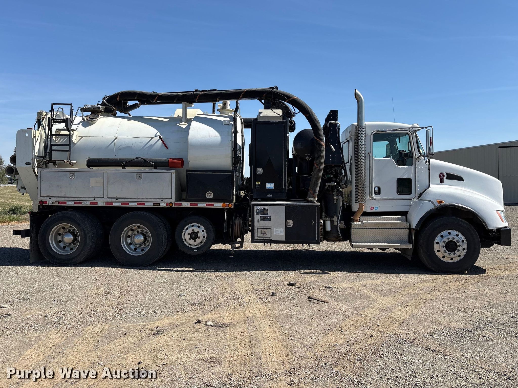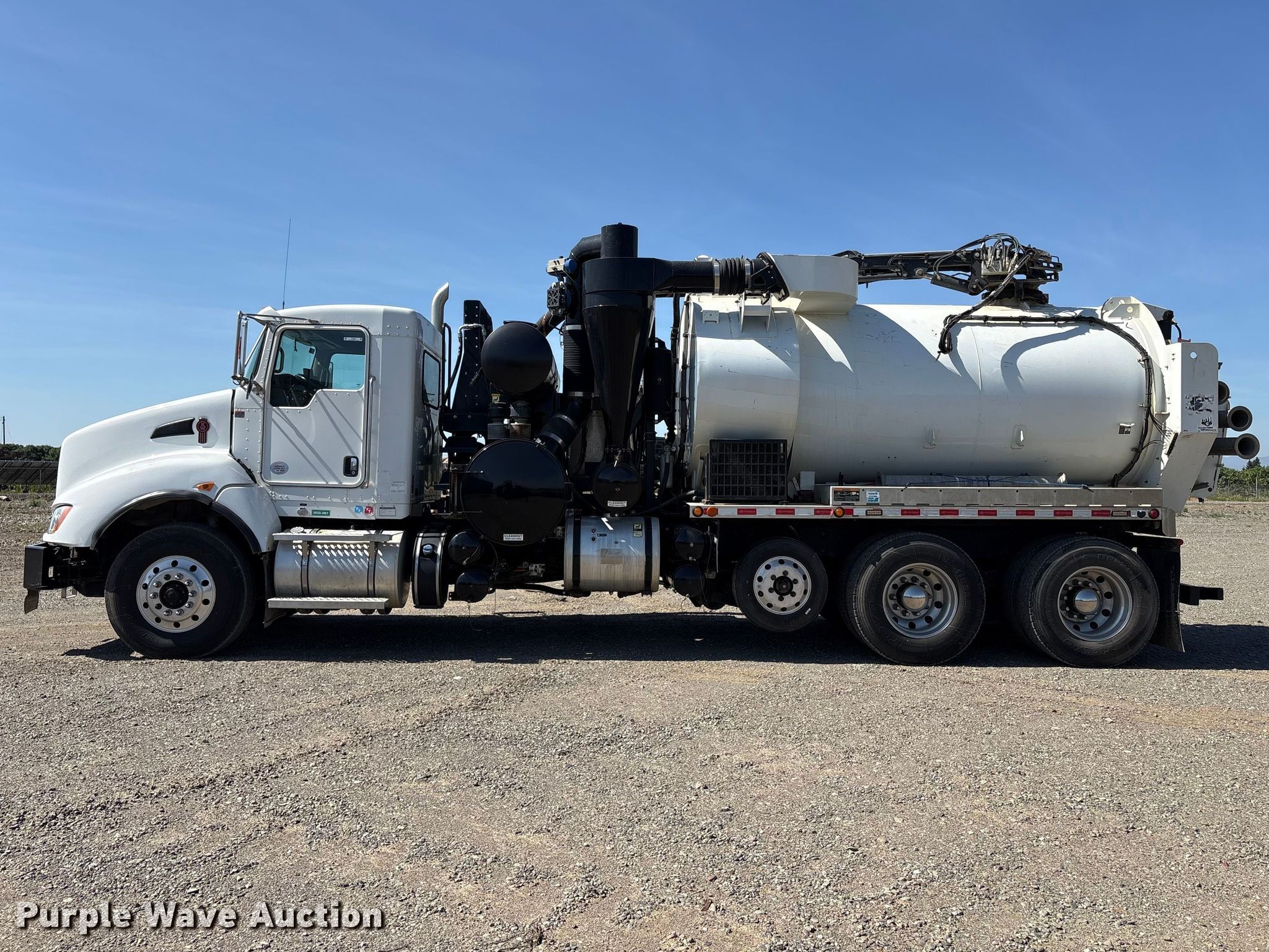 Purple Wave is selling a used Vacuum Truck in California. This item is a 2019 Kenworth T400 hydrovac truck with the following: Miles: 76,673 on odometer, Hours: 5,301 on meter, VIN: 3BKBXJEX0KF288080