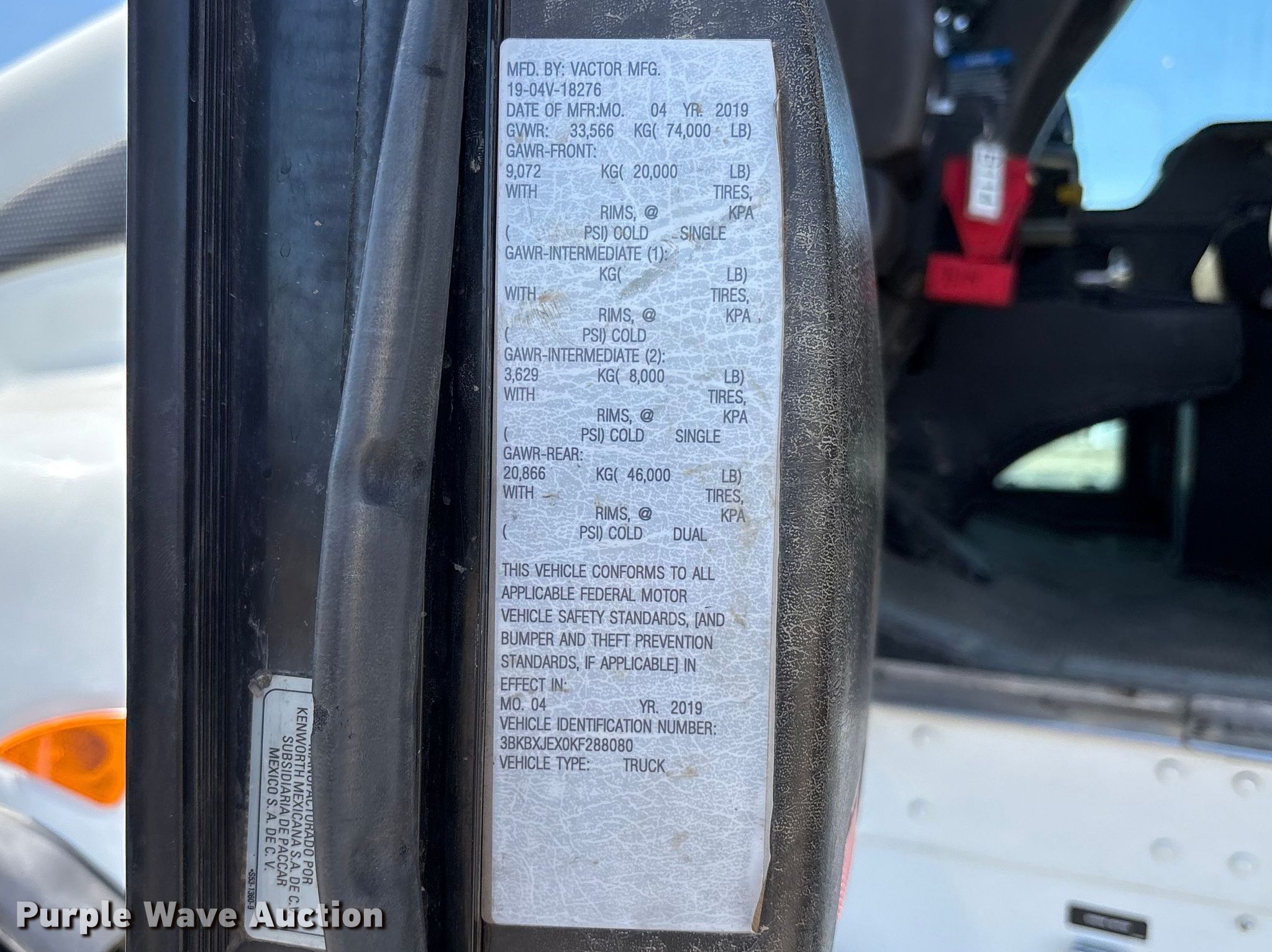 - VIN: 3BKBXJEX0KF288080