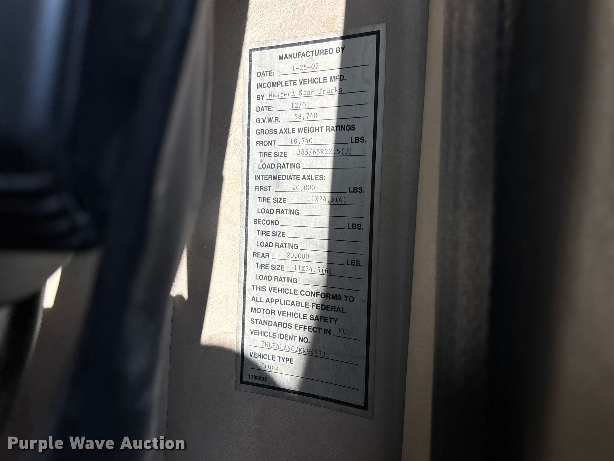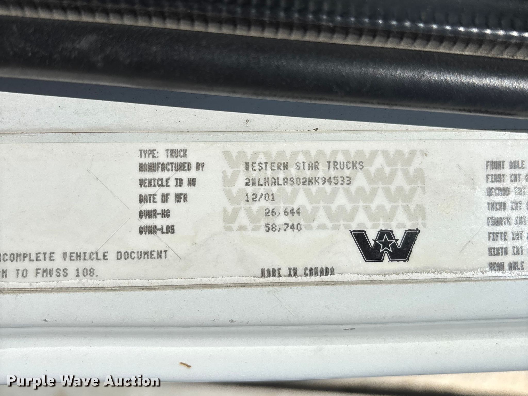 Purple Wave is selling a used Flat Bed Truck in Missouri. This item is a 2002 Western Star 4900 flatbed truck with the following: Miles: 672,759 on odometer, VIN: 2WLHALAS02KK94533