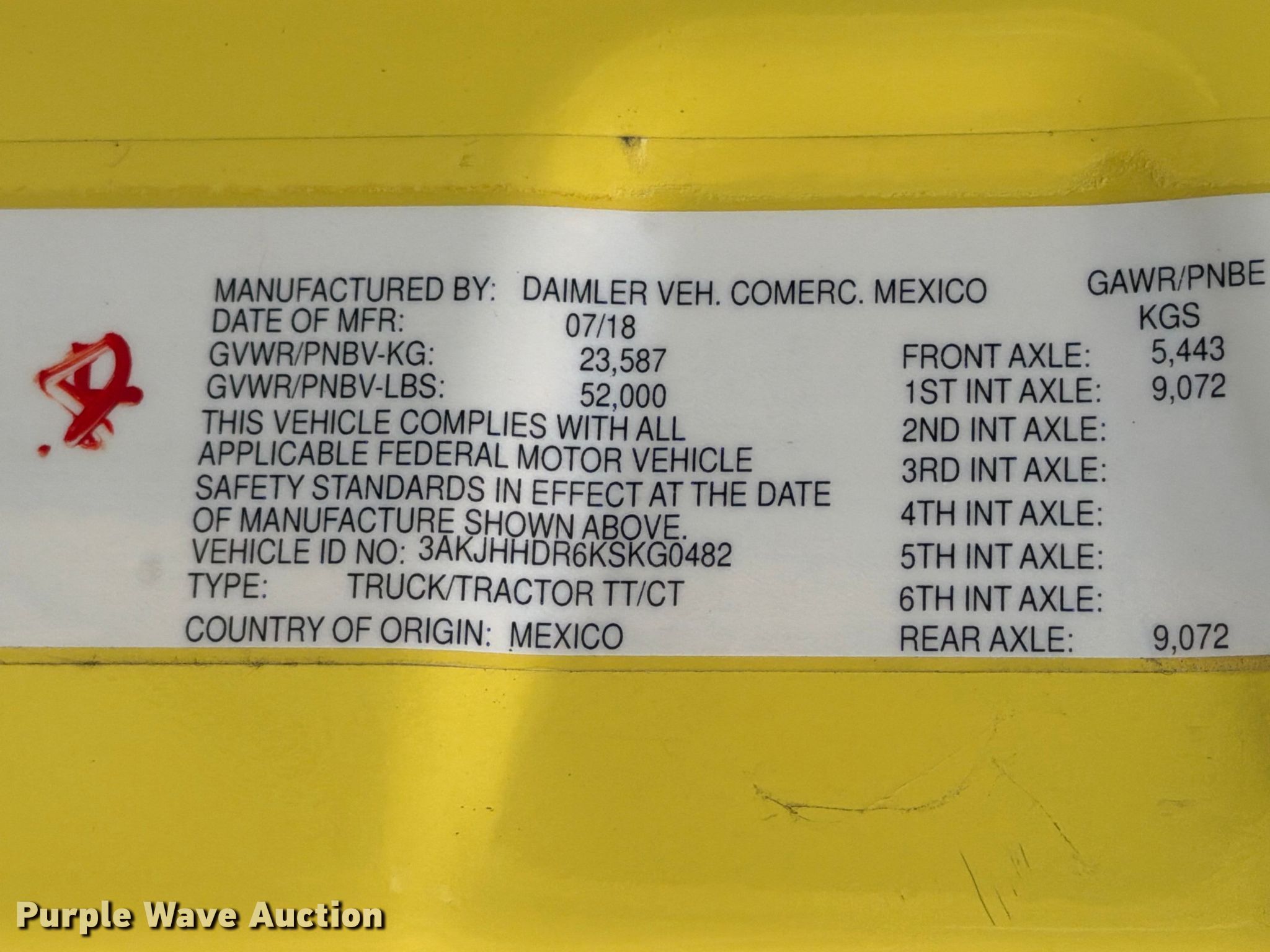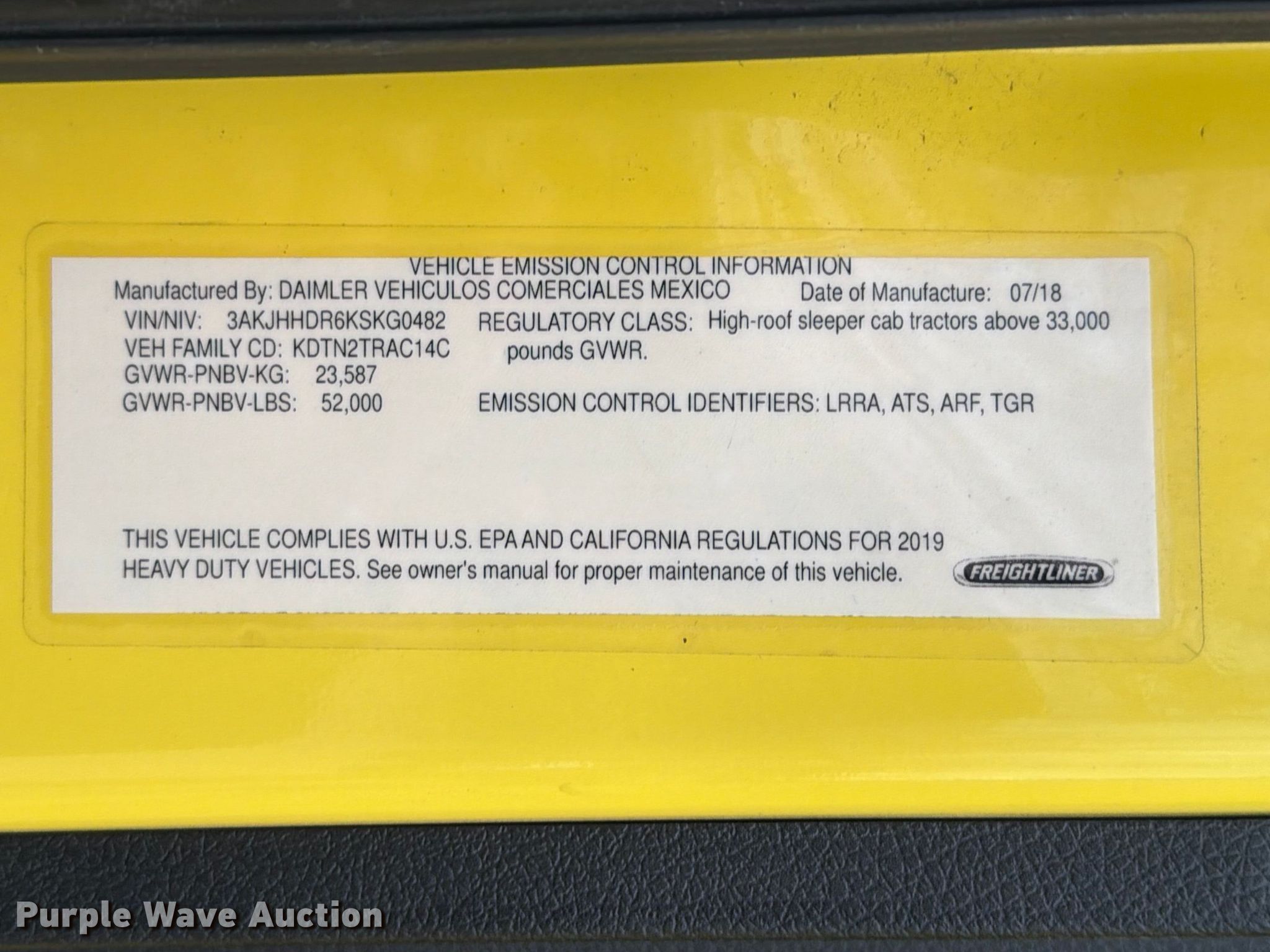 - VIN: 3AKJHHDR6KSKG0482