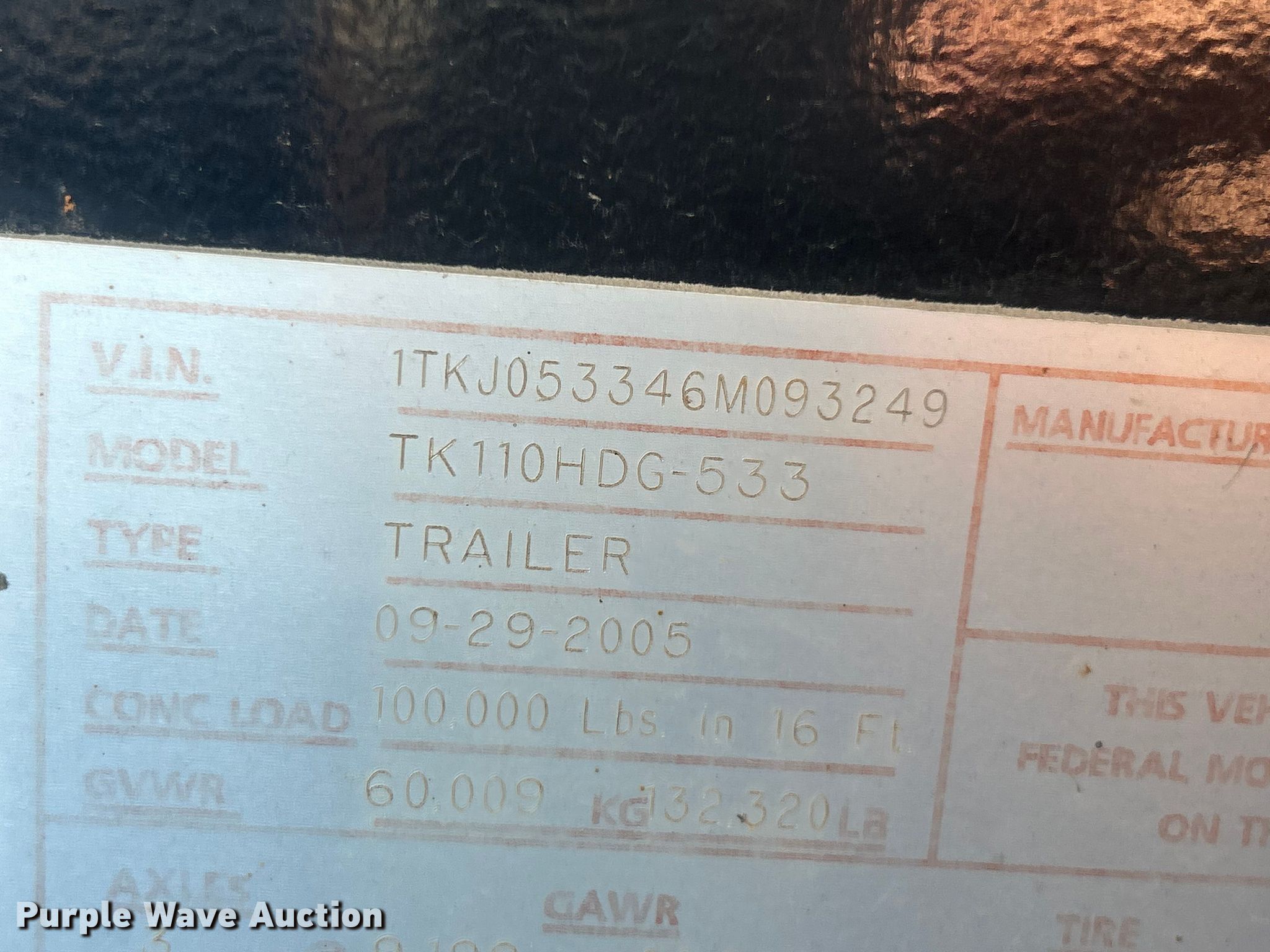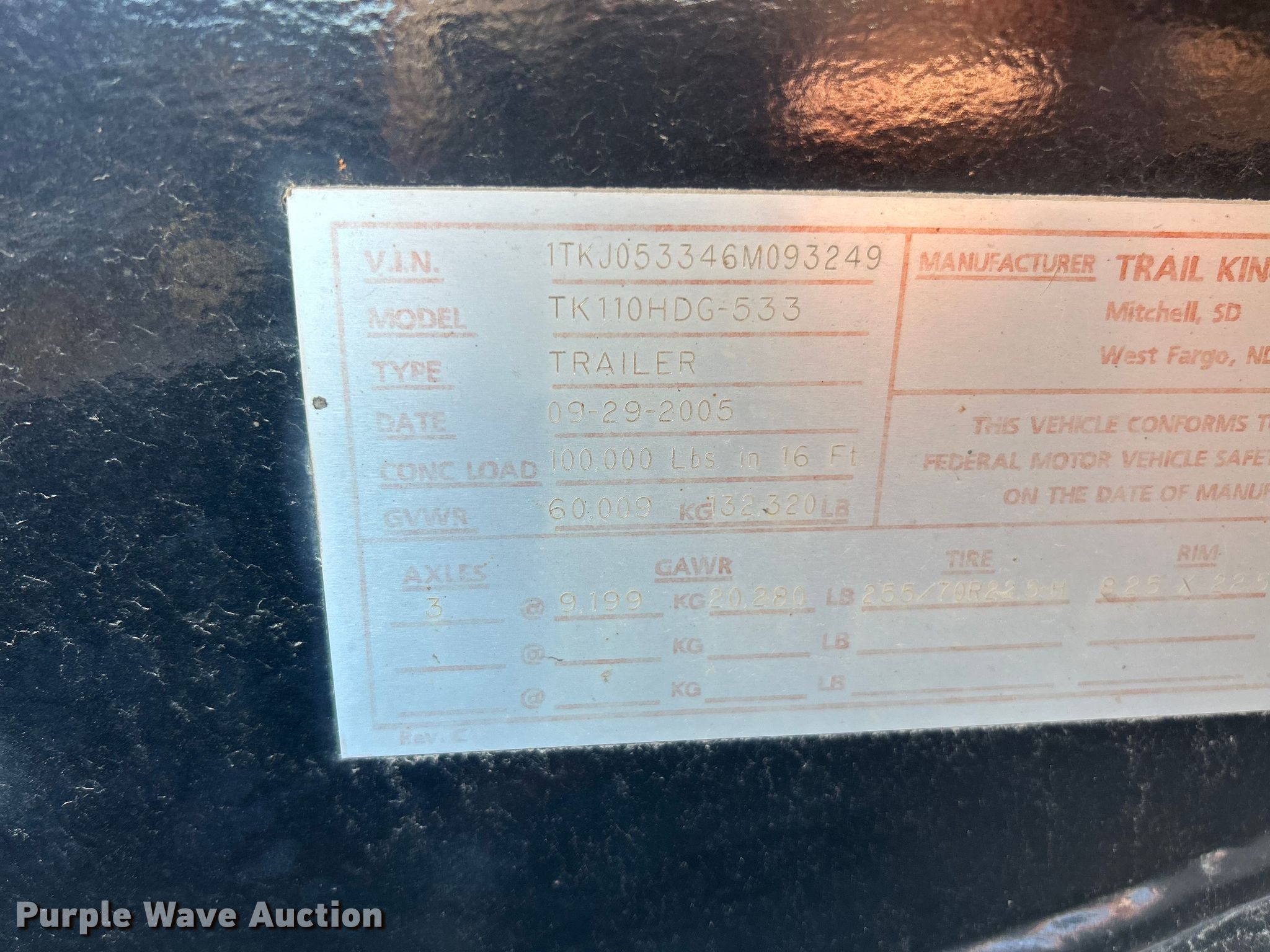 Purple Wave is selling a used Equip. Trailer in Missouri. This item is a 2006 Trail King TK110HDG-533 lowboy equipment trailer with the following: VIN: 1TKJ053346M093249