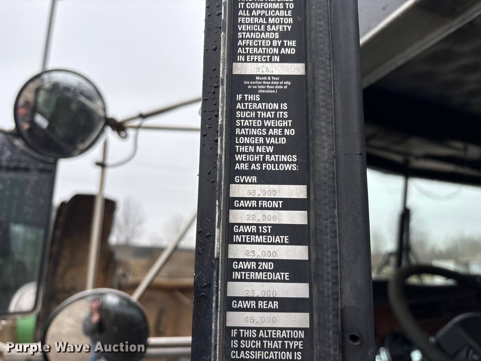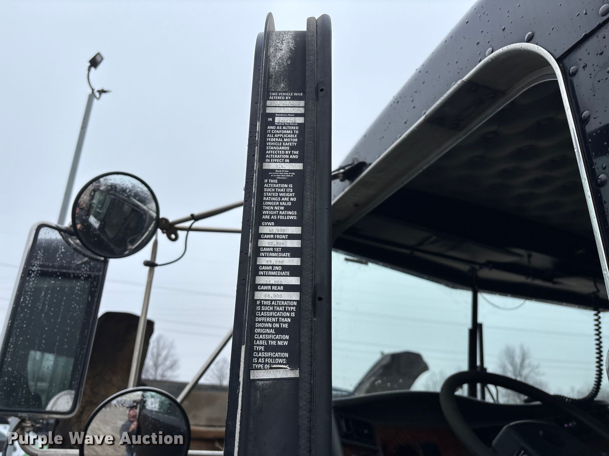 2004 Kenworth T800B semi truck. Miles: 382,329 on odometer, Hours: 15,281 on meter, VIN: 1XKDD40X14R059204. Engine Cummins ISX 475, Serial: 79015858, Displacement: 15.0L, Cylinders: 6, Fuel type: Diesel, HP: 475. Transmission Eaton Fuller RTLC18918B, Manual, Speed: 18. Chassis Axles: Tandem, Differential lock: Inter-axle, Suspension: Air Dump valves, Brakes: Air, PTO, Wet kit, GVWR: 60,000 lbs. Interior AC, Heat, Heated mirrors. Features Deck plate: Steel, Fifth wheel type: Air operated, Fuel tank: Single. Tires Front: 425/65R22.5, Rear: 11R22.5. Notes Contents not included, Engine issues, misfire. Michigan title. Title distribution may be delayed up to 14 days from verification of funds. GVL Excavating. Wayland, MI 49348