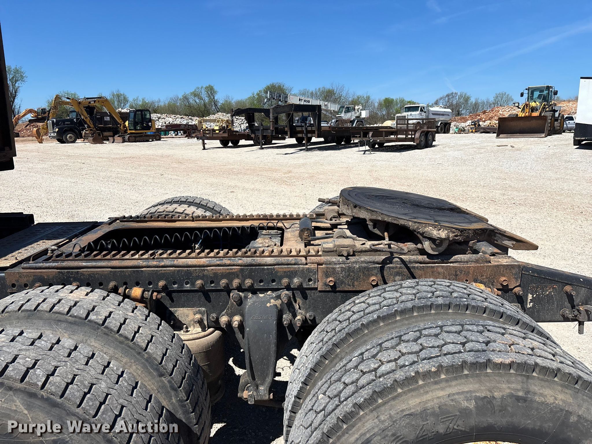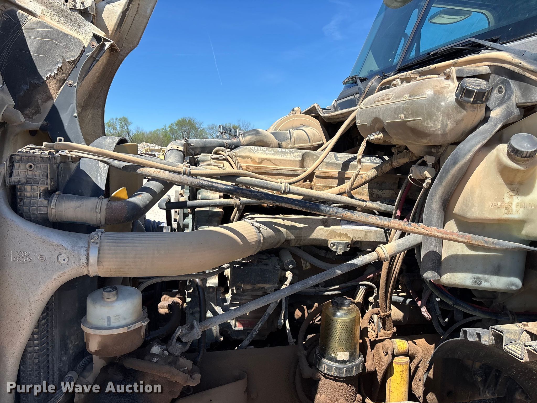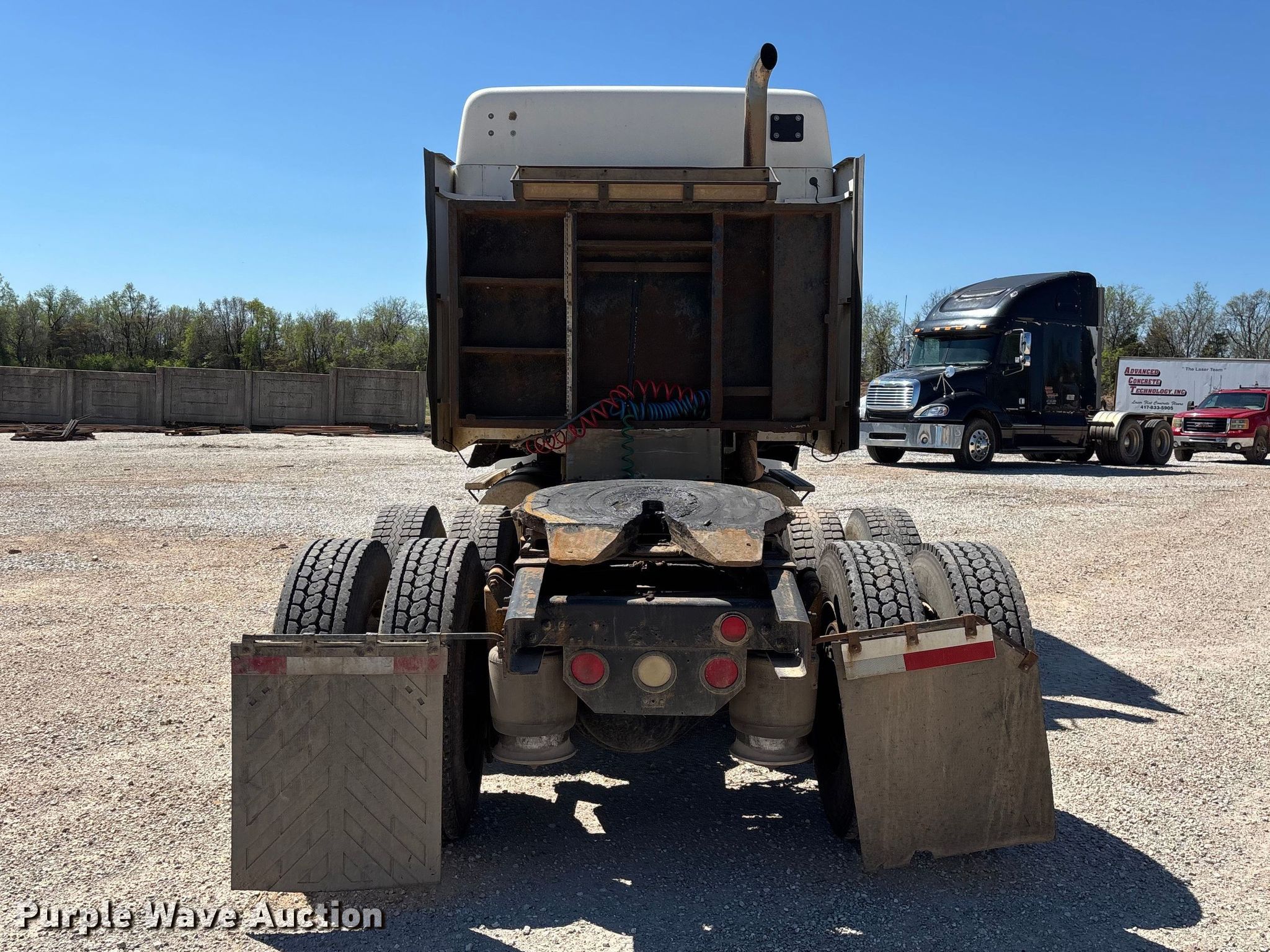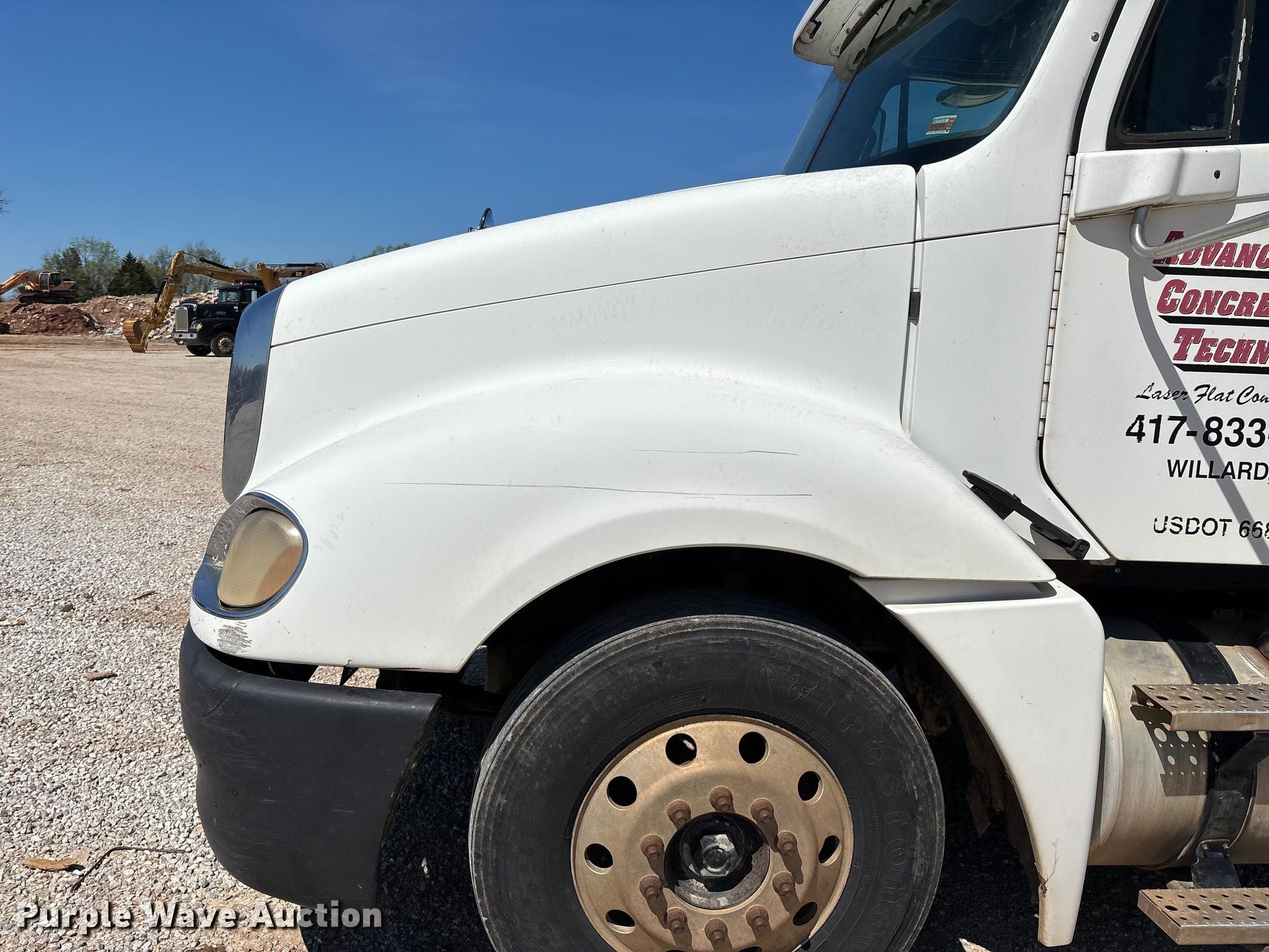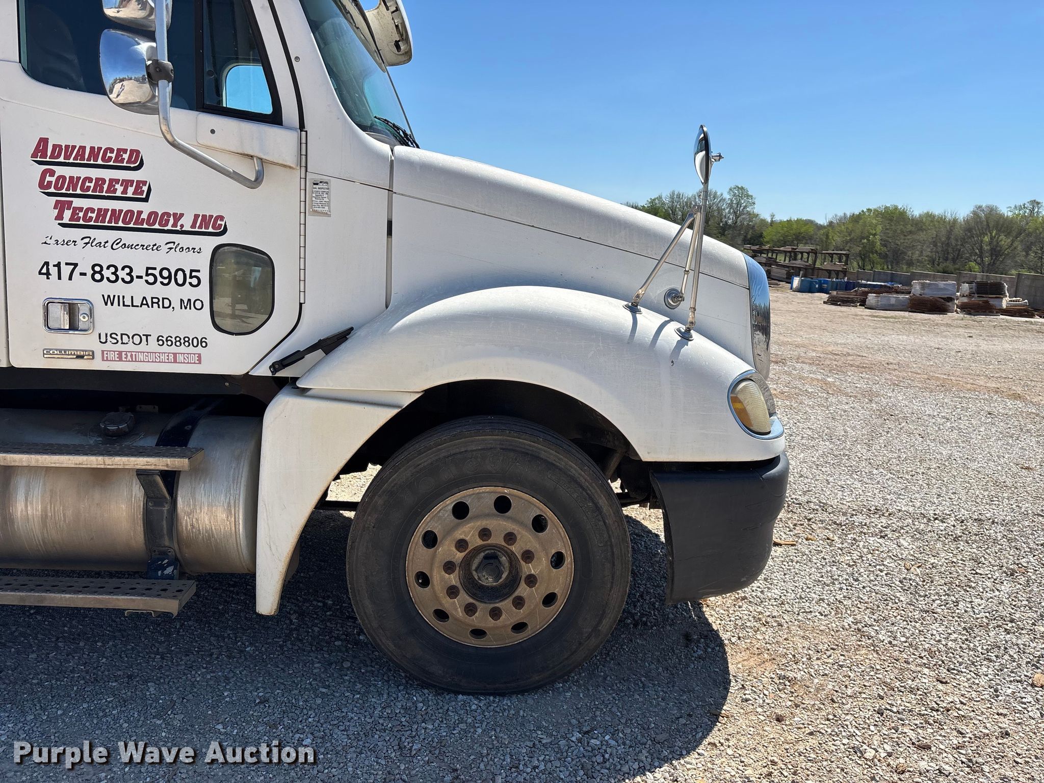 2003 Freightliner Columbia semi truck. Miles: 694,744 on odometer, VIN: 1FUJA6CG43PK37902. Engine Detroit Diesel Series 60, Displacement: 12.7L, Cylinders: 6, Fuel type: Diesel, HP: 470, Engine brake. Transmission Meritor, Manual, Speed: 10. Chassis Axles: Tandem, Differential lock: Inter-axle, Suspension: Air, Brakes: Air, GVWR: 52,000 lbs. Interior AC, Heat, Heated mirrors, Cruise control, Air ride cab, Sleeper Sleeper length: 72", Beds: Single, Rear climate control. Features Deck plate: Steel, Fifth wheel type: Air operated, Fuel tank: Dual. Tires Size: 295/75R22.5. Notes Contents not included, Possible power steering fluid leak, Dash warning indicator: ABS, Windshield chipped or cracked. Missouri title. Title distribution may be delayed up to 14 days from verification of funds. Advanced Concrete Technologies, Inc. Springfield, MO 65803
