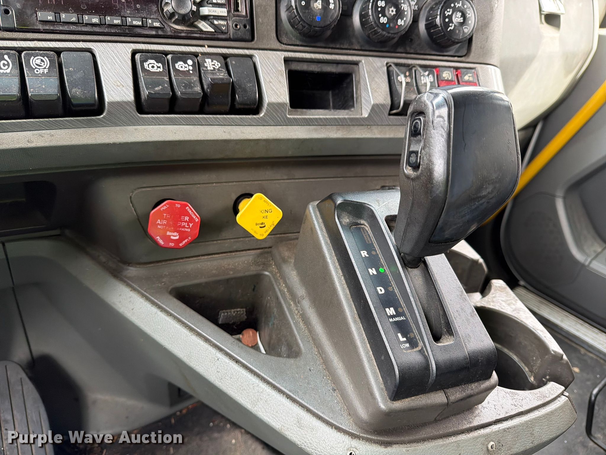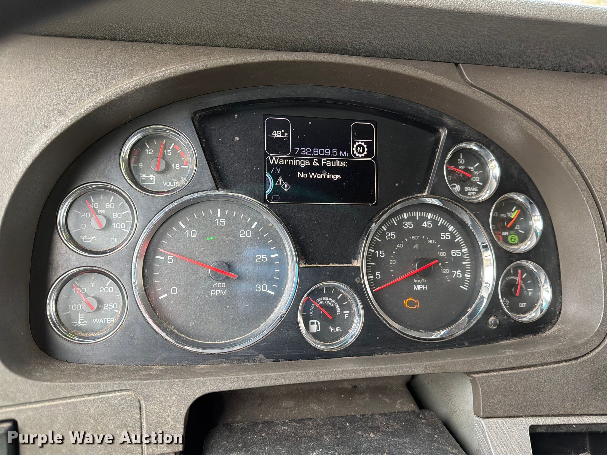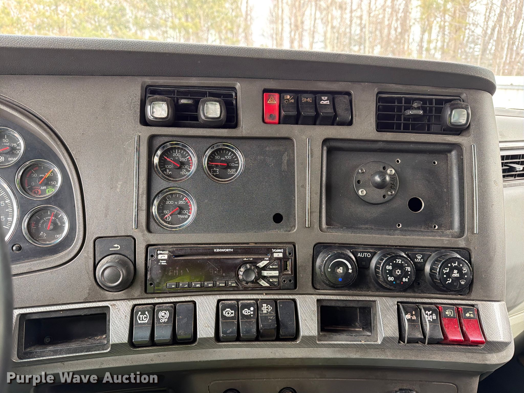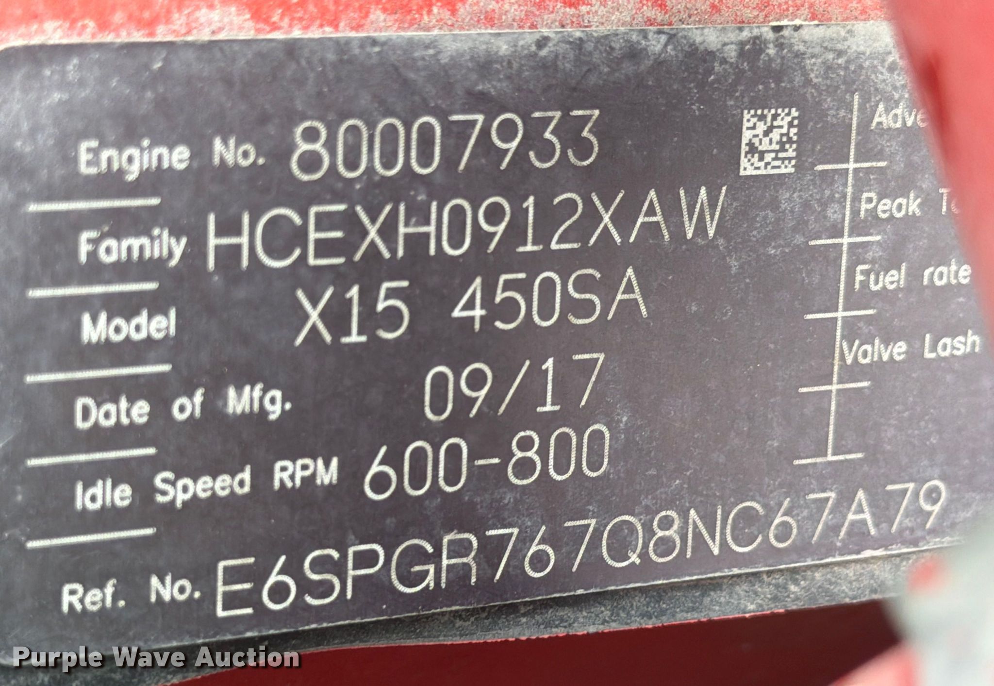 2018 Kenworth T680 semi truck. Miles: 732,610 on odometer, Hours: 28,815 on meter, VIN: 1XKYD49X0JJ190297, Unit #: 97110285. Engine Cummins X15 450SA, Displacement: 15.0L, Cylinders: 6, Fuel type: Diesel, HP: 450, Engine brake. Transmission Eaton Fuller, Automatic. Chassis Axles: Tandem, Gear ratio: 2.64, Differential lock: Inter-axle, Suspension: Air Dump valves, Brakes: Air, GVWR: 52,350 lbs FAWR: 12,350 lbs, IAWR: 20,000 lbs, RAWR: 20,000 lbs. Interior AC, Heat, Heated mirrors, Power windows, Power locks, Cruise control, Air ride cab, Sleeper Sleeper length: 64", Beds: Double bunk, Rear climate control. Features Deck plate: Aluminum, Fifth wheel type: Air operated, Sliding, Fuel tank: Dual. Tires Size: 295/75R22.5. Notes Dash warning indicator: Check engine, Windshield chipped or cracked. Repossessed item, stored at a secured facility. Please review REQUIRED REMOVAL INSTRUCTIONS. Titles will be distributed after confirmation of payment and removal. Indiana title. Title distribution may be delayed up to 30 days from verification of funds. Lender Owned. 6300 Chambers Road. Charles City, VA 23030