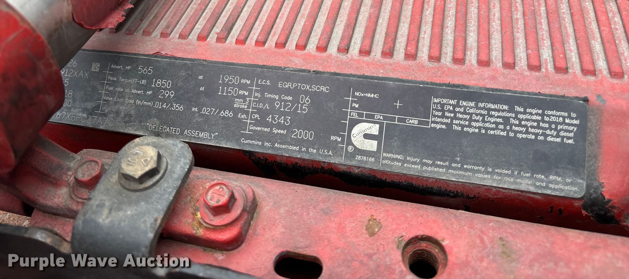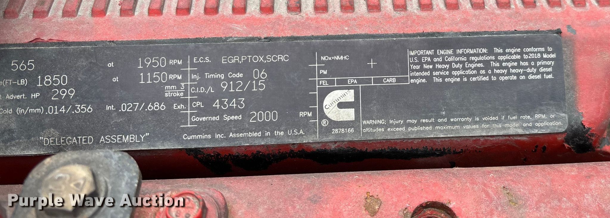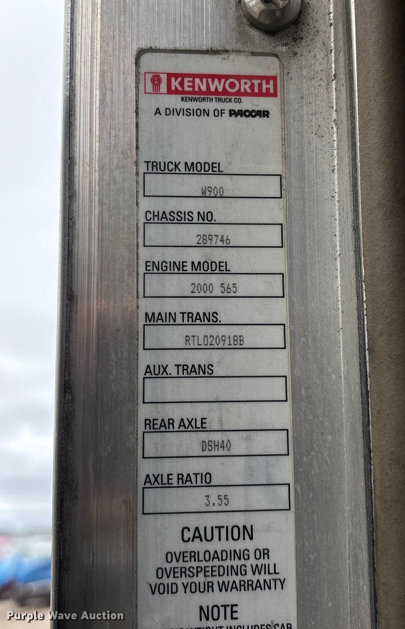 2019 Kenworth W900 semi truck. Miles: 711,743 on odometer, Hours: 26,397 on meter, VIN: 1XKWD49X4KJ289746, Unit #: 76630775. Engine Cummins X15 565, Displacement: 15.0L, Cylinders: 6, Fuel type: Diesel, HP: 565, Engine brake. Transmission Eaton Fuller, Manual, Speed: 18. Chassis Axles: Tandem, Differential lock: Full, Suspension: Air Dump valves, Brakes: Air, GVWR: 53,200 lbs. Interior AC, Heat, Heated mirrors, Power windows, Power locks, Cruise control, Air ride cab, Sleeper Sleeper length: 60", Beds: Double bunk, Refrigerator, Rear climate control. Features Fifth wheel type: Air operated, Sliding, Fuel tank: Dual. Tires Size: 285/75R24.5. Notes Possible electrical issues, Oil leak, Jump start required during on-site data collection. Repossessed item, stored at a secured facility. Please review REQUIRED REMOVAL INSTRUCTIONS. Titles will be distributed after confirmation of payment and removal. Illinois title. Title distribution may be delayed up to 30 days from verification of funds. Lender Owned. 5000 North State Road. Davison, MI 48423
