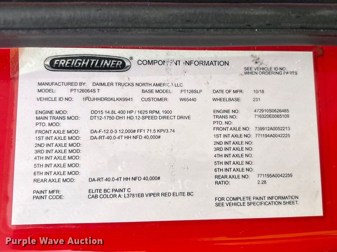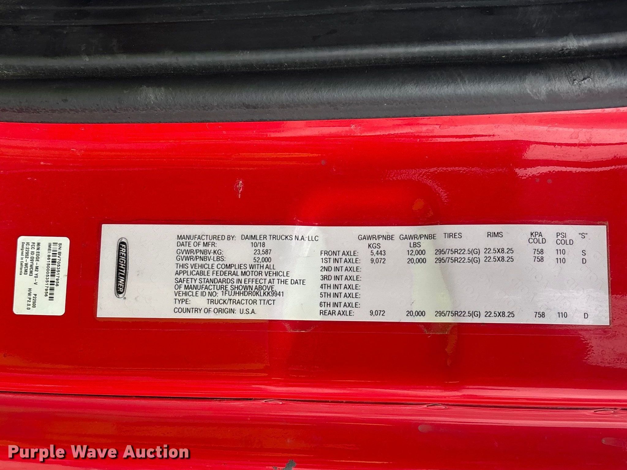 - VIN: 1FUJHHDR0KLKK9941