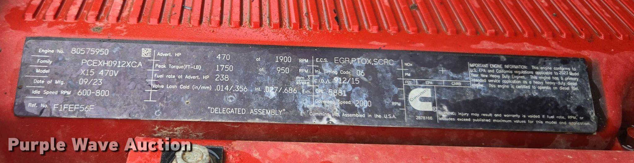 2024 International HX520 semi truck. Miles: 126,692 on odometer, VIN: 3HSPAAPT5RN787539, Unit #: 75549875. Engine Cummins X15 470V, Displacement: 15.0L, Cylinders: 6, Fuel type: Diesel, HP: 470, Engine brake. Transmission Automated manual. Chassis Axles: Tandem, Differential lock: Full, Suspension: Air Dump valves, Brakes: Air, GVWR: 59,200 lbs FAWR: 13,200 lbs, IAWR: 23,000 lbs, RAWR: 23,000 lbs. Interior AC, Heat, Heated mirrors, Power windows, Power locks, Cruise control, Air ride cab. Features Deck plate: Aluminum, Fifth wheel type: Fixed, Fuel tank: Dual. Tires Size: 11R24.5. Notes Windshield chipped or cracked, Jump start required during on-site data collection, Collision damage. Buyer responsible for all aspects of loadout and removal. Insurance salvage, stored at a secured facility. Please review REQUIRED REMOVAL INSTRUCTIONS. Titles will be distributed after confirmation of payment and removal. Mississippi salvage title. Title distribution may be delayed up to 30 days from verification of funds. Insurance Salvage. 205 South Rankin Industrial Drive. Florence, MS 39073