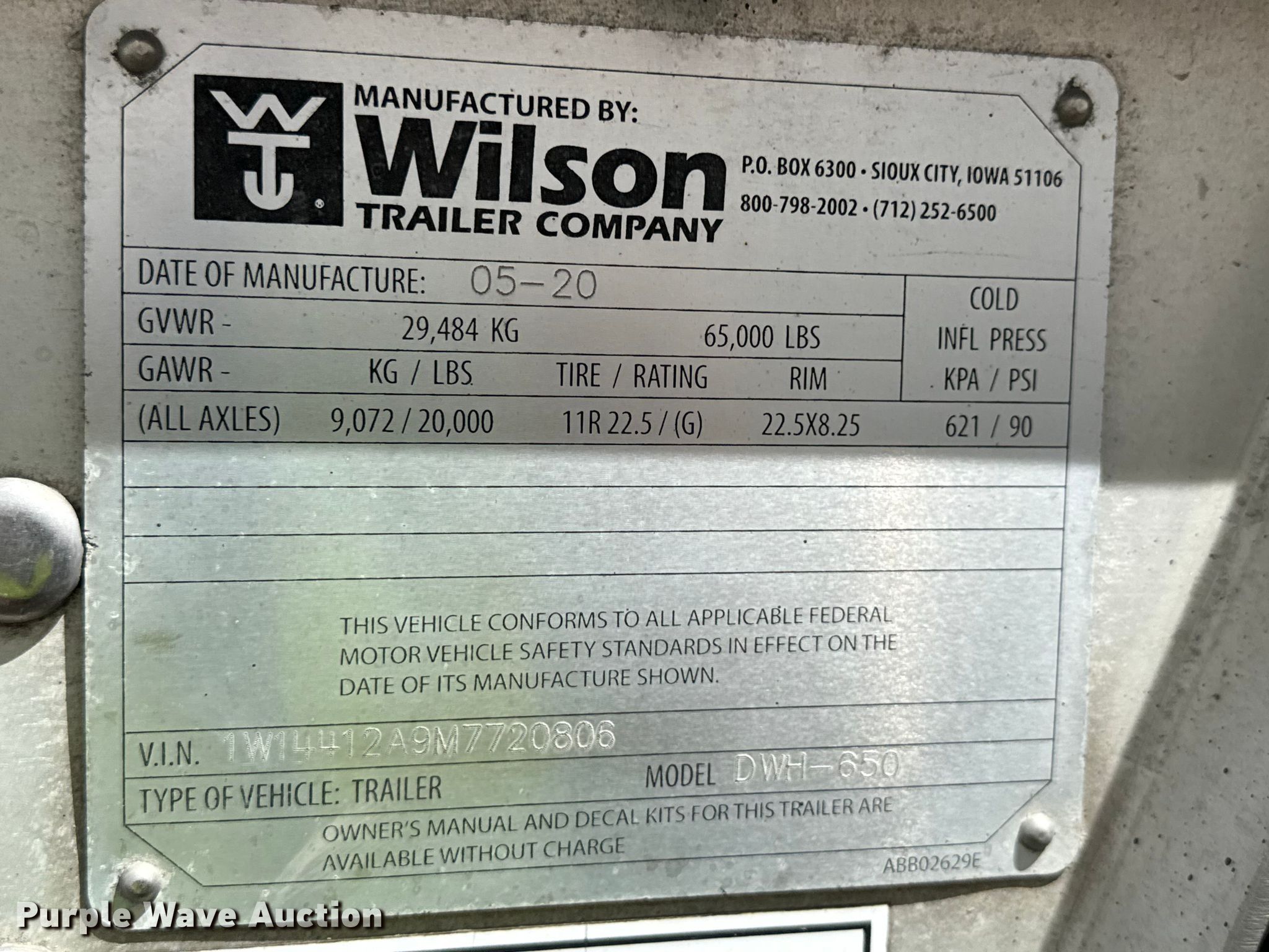 Purple Wave is selling a used Grain or Commodity Trailer in Kentucky. This item is a 2021 Wilson DWH-650 grain trailer with the following: VIN: 1W14412A9M7720806, Unit #: 46269106