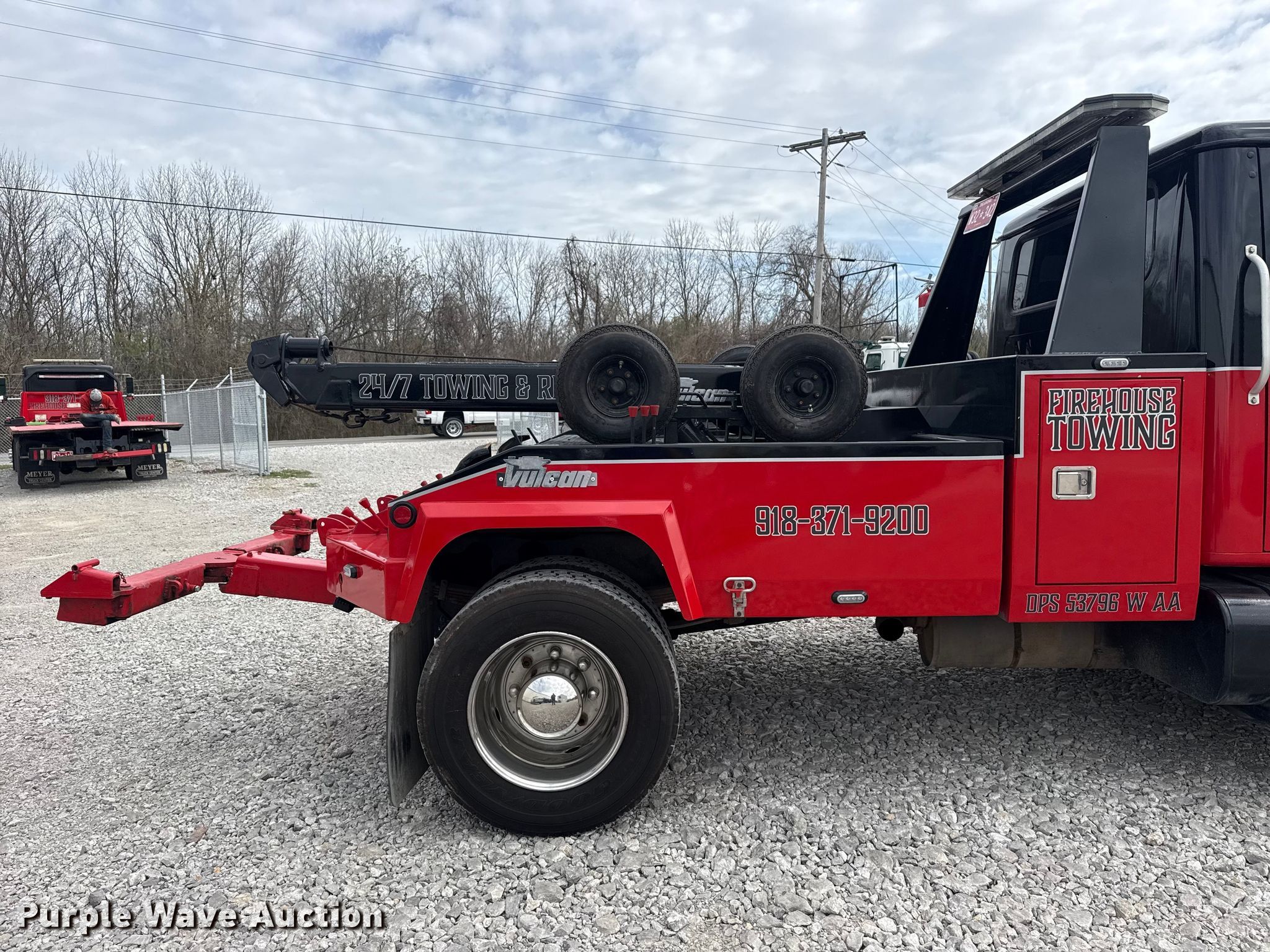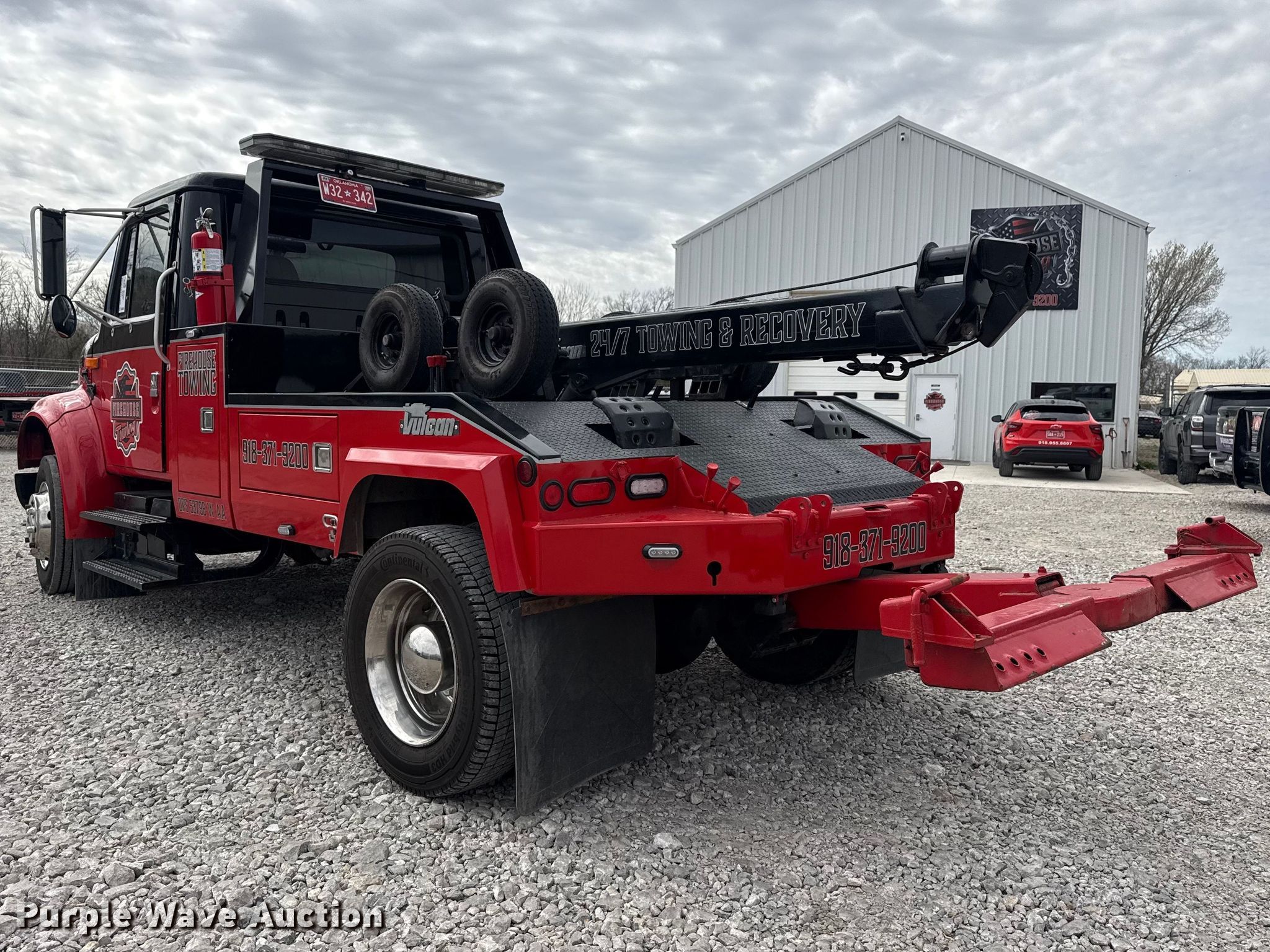 1997 International 4700 tow truck. Miles: 217,037 on odometer, Miles or hours may vary, unit still in use, VIN: 1HTSCAAM3VH475239. Engine International T466E, Displacement: 7.64L, Cylinders: 6, Fuel type: Diesel. Transmission Manual, Speed: 7. Chassis Axles: Single, Suspension: Spring, Brakes: Hydraulic, PTO. Interior AC, Heat, Power windows, Cruise control. Features Bed Wrecker bed, Vulcan, Length: 104', Width: 86", Wrecker boom: Hydraulic extendable, Winch, Underlift. Tires Size: 245/70R19. Oklahoma title. Title distribution may be delayed up to 30 days from verification of funds. FireHouse Towing LLC. Collinsville, OK 74021