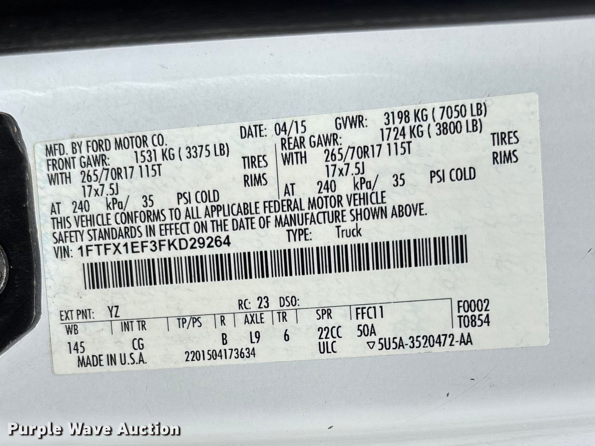 - VIN: 1FTFX1EF3FKD29264