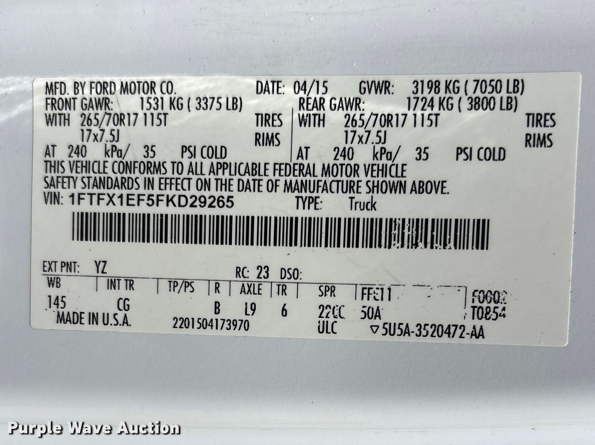 - VIN: 1FTFX1EF5FKD29265