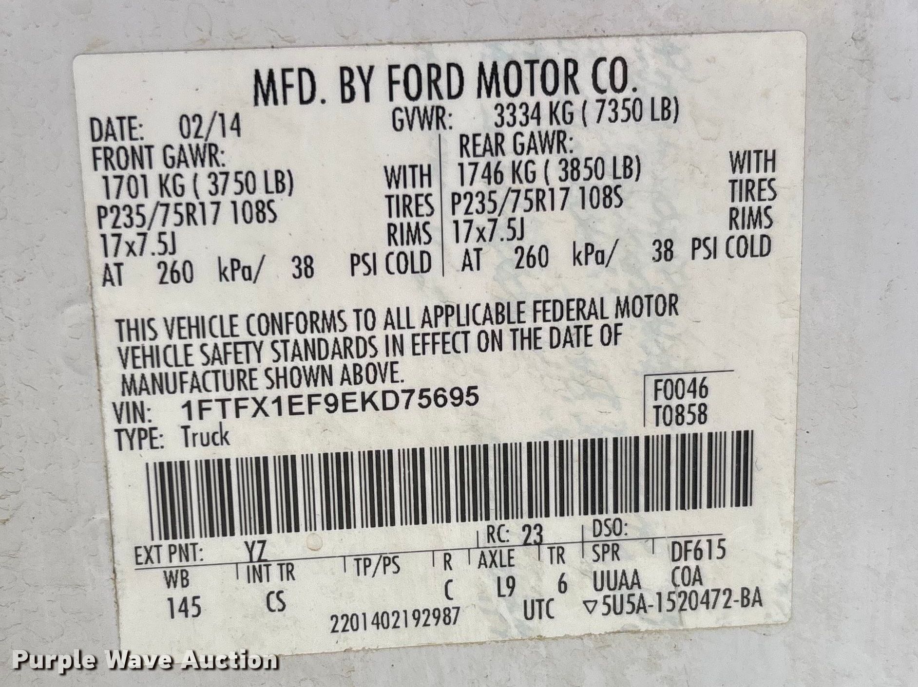 - VIN: 1FTFX1EF9EKD75695