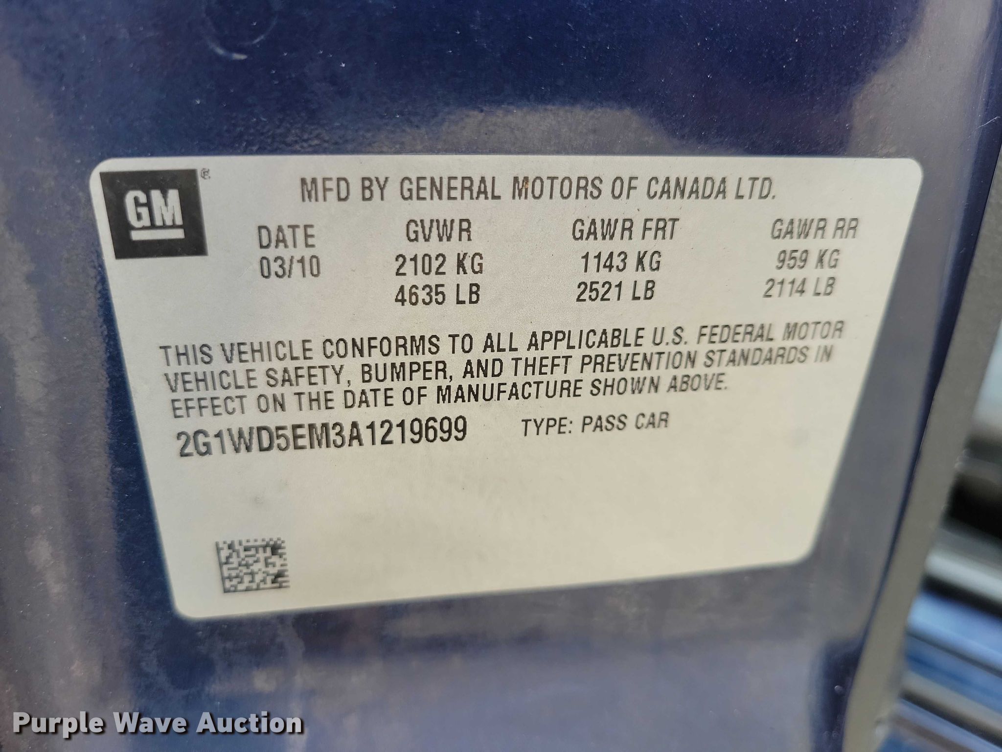 - VIN: 2G1WD5EM3A1219699