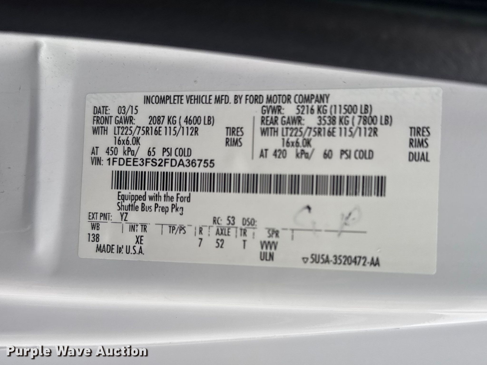 Take a look at this used 2015 Ford E350 shuttle bus being sold on May 20th, 2026 in the Wednesday May 20 Vehicles and Equipment Auction made by Ford. Take a look at all of the item information below or take a look at similar auctions for Transit Vehicles.