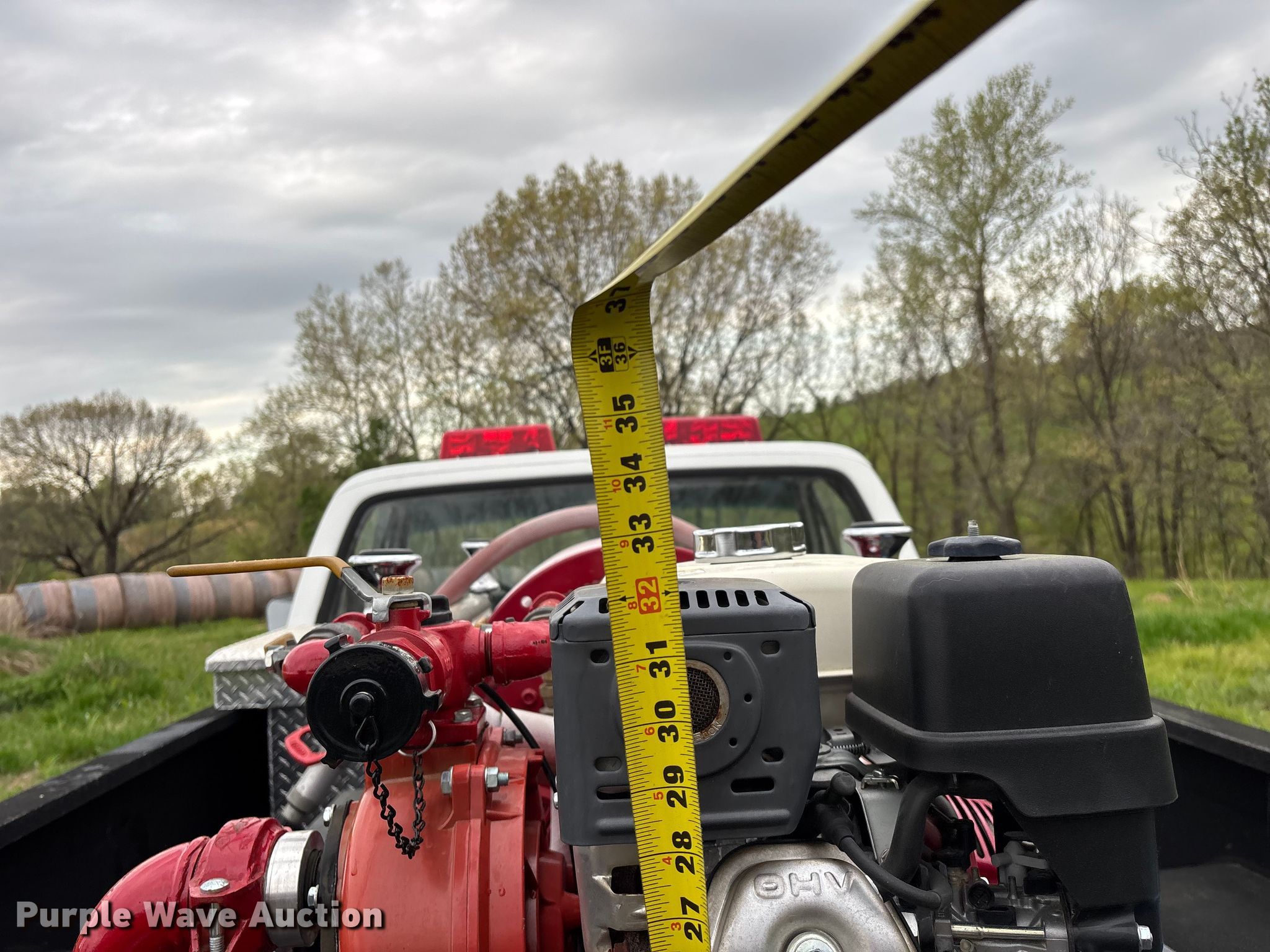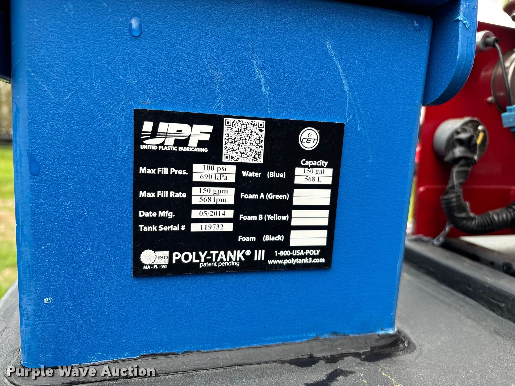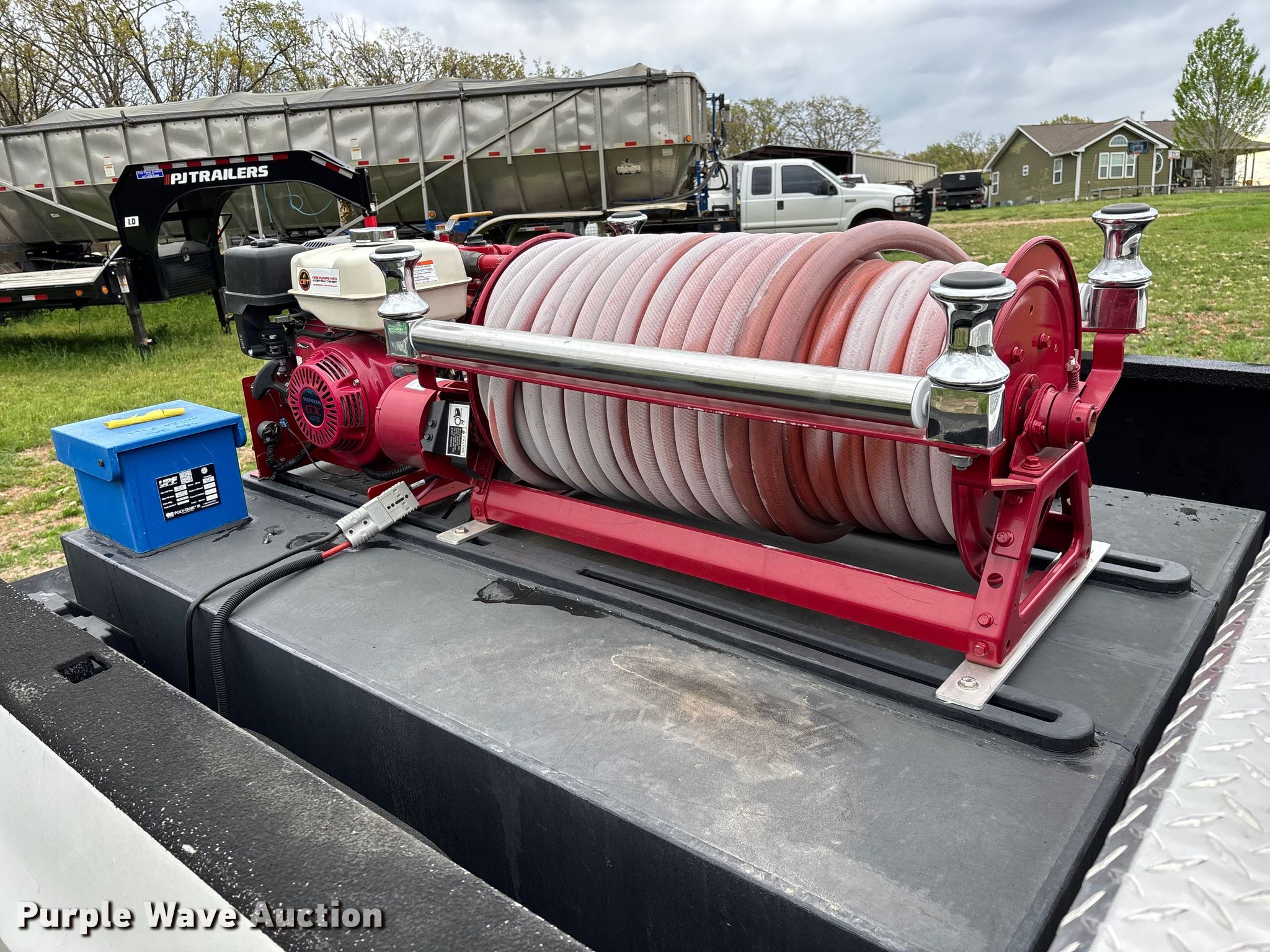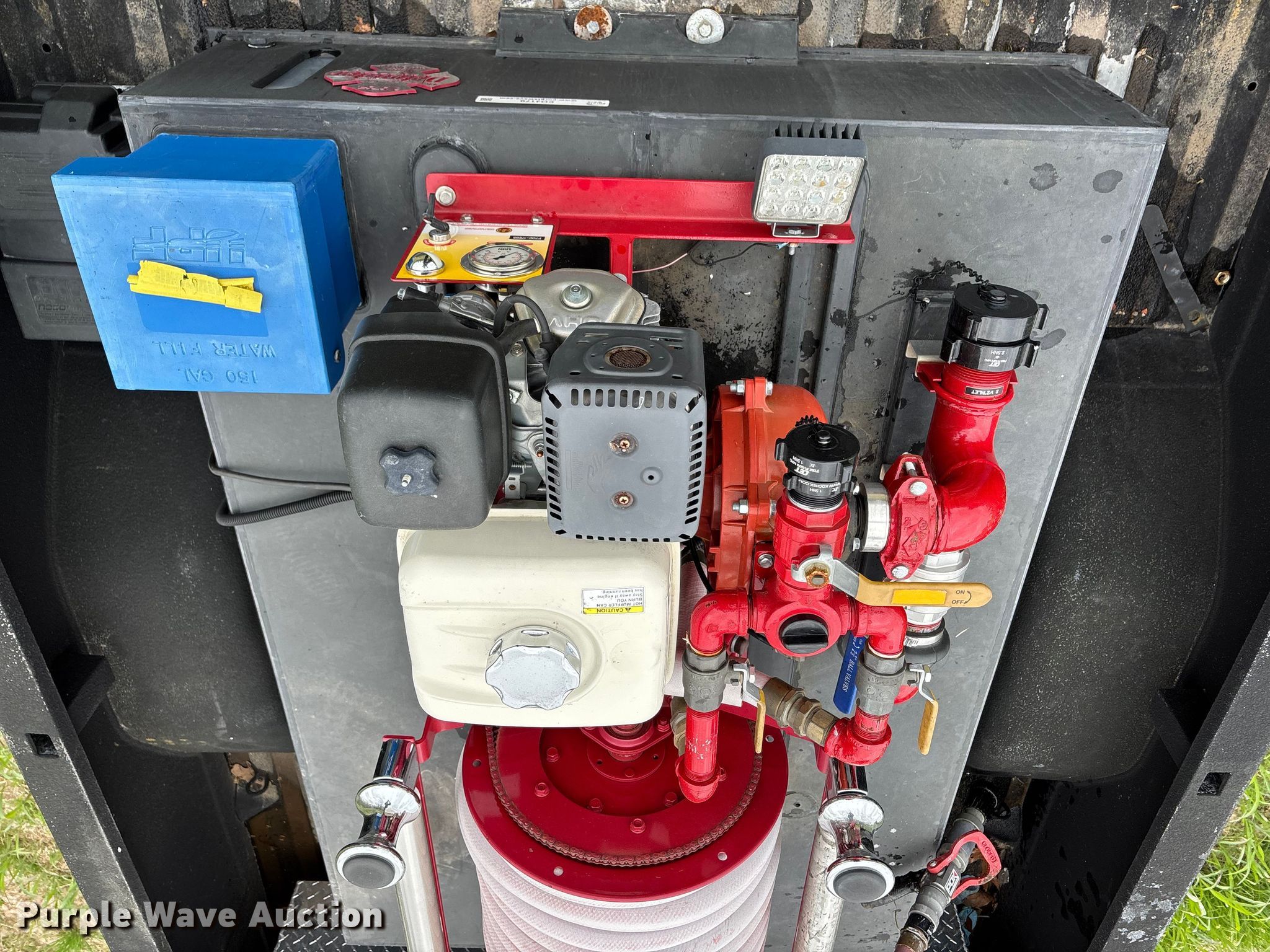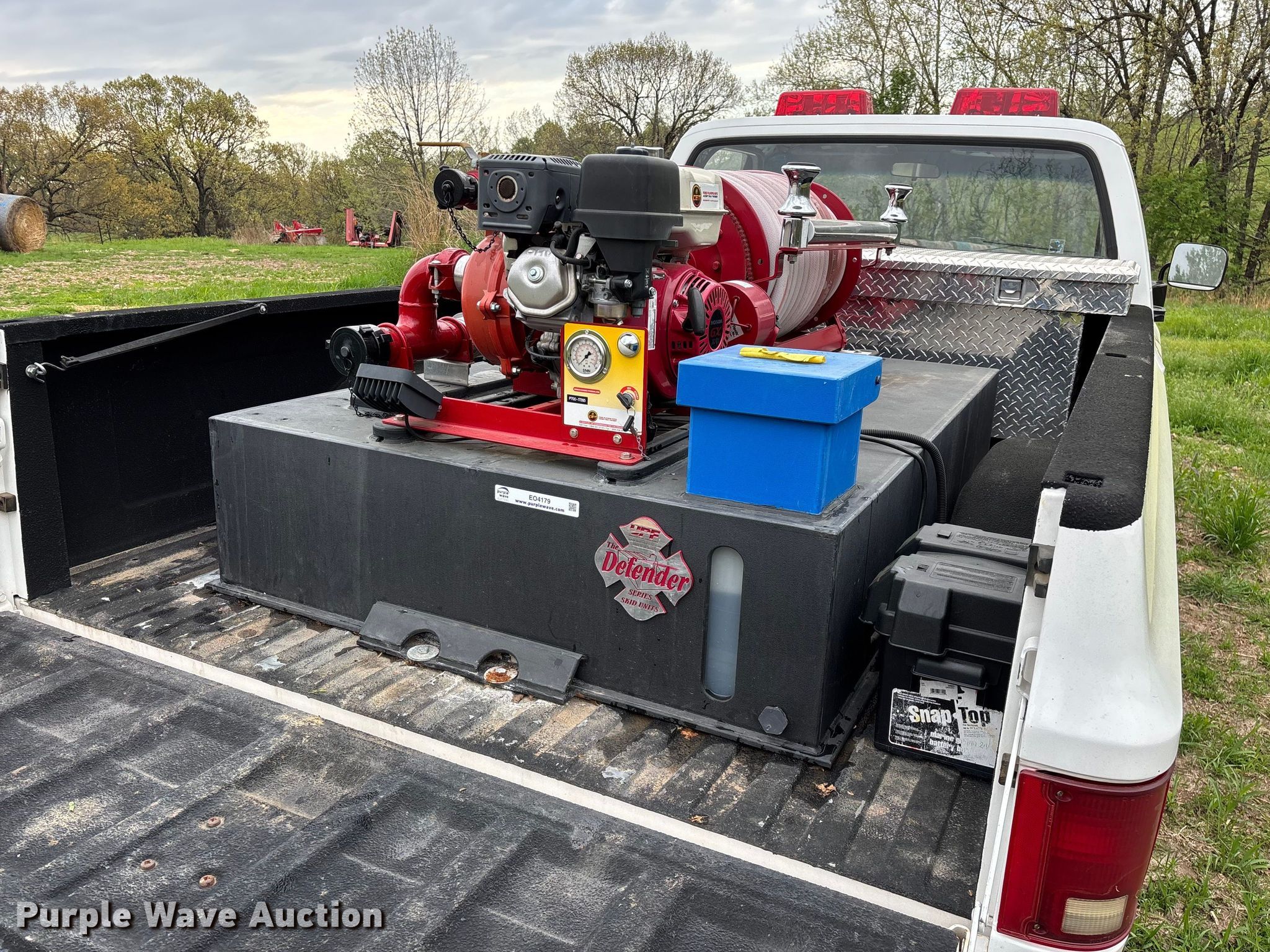 Purple Wave is selling a used Truck Part and Attach. in Missouri. This item is a 2014 CET Fire Pumps Mfg brush fire skid unit with the following: United Plastics Fabricating The Defender tank, Capacity: 150 gallon, Honda GX270 pump motor, Displacement: 270 cc, Cylinders: Single, Fuel type: Gas, Hannay Reels hose reel, Overall dimensions: 6' x 4' x 33", Will be removed from pickup truck prior to sale, Pickup truck not included